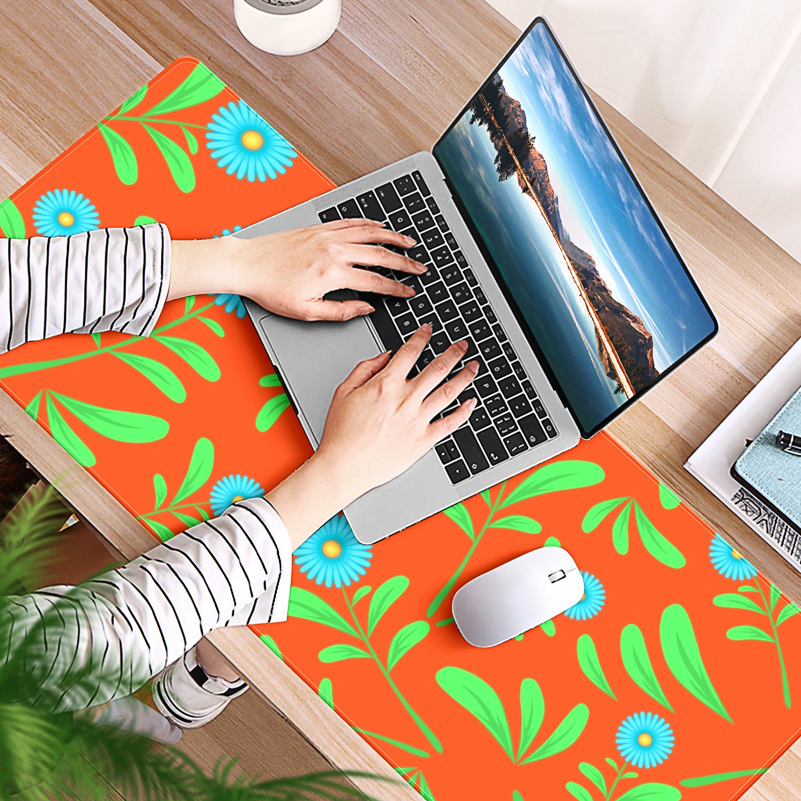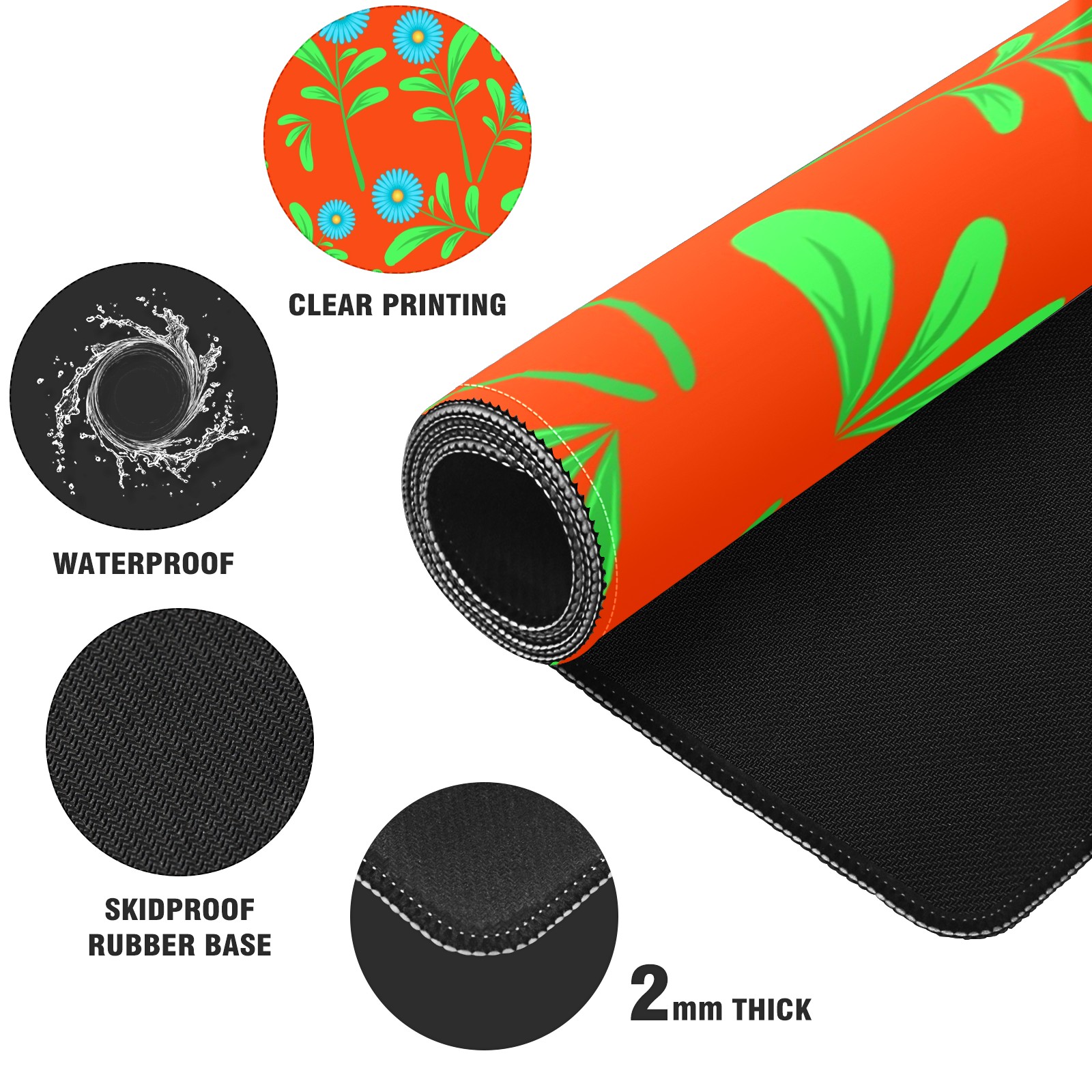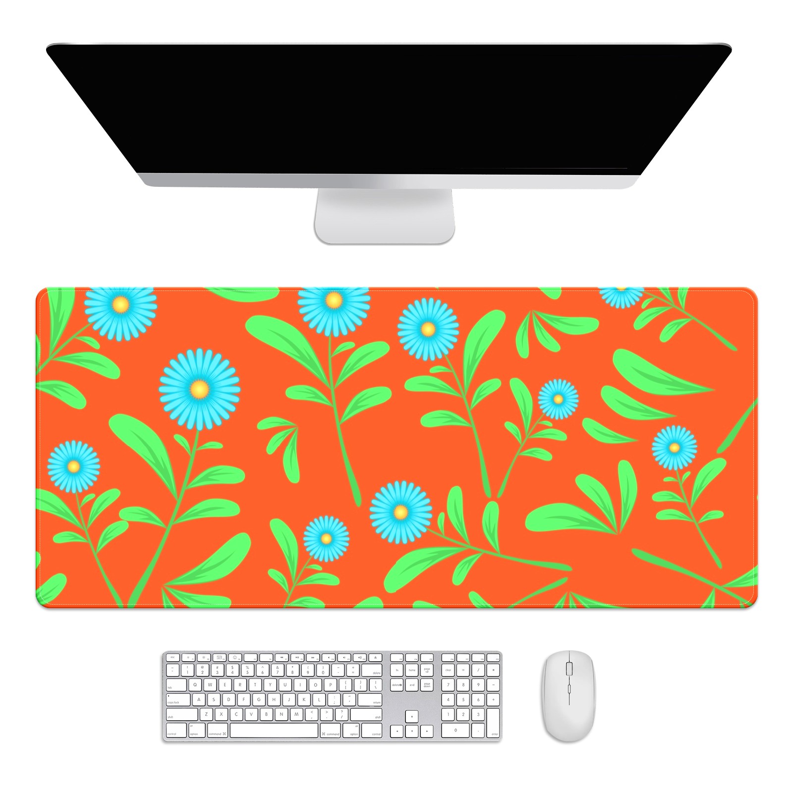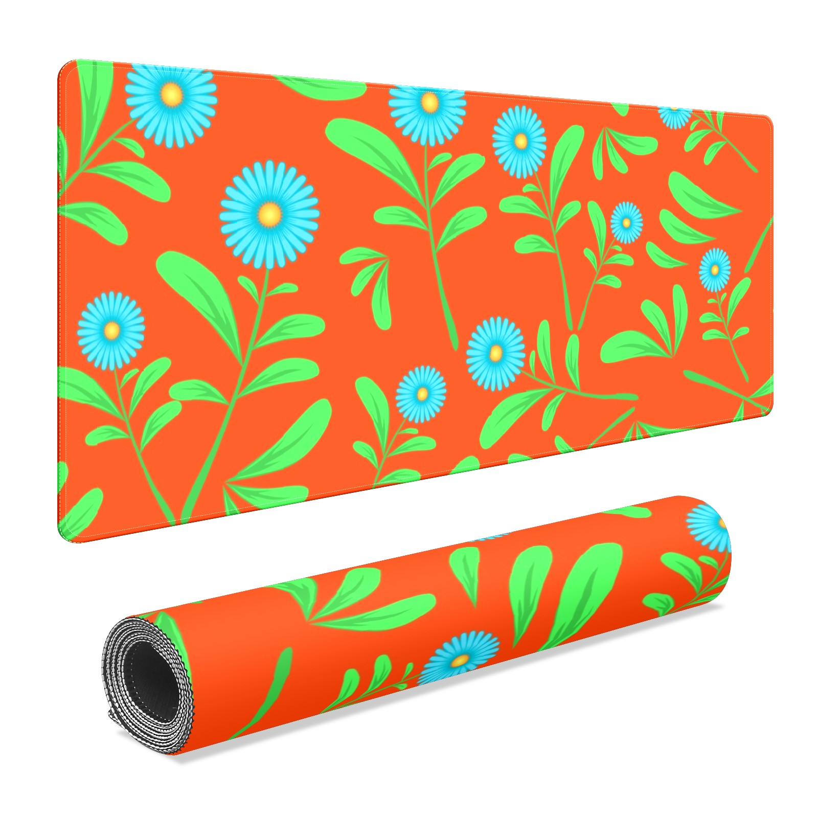 Large Mouse Pad for Desktop, Cute Desk Mat Pad Protector for Work & Gaming, Aesthetic Pretty Anti-Slip Laptop Blotter Cover for Office School Home Supplies, Flowers Leaves Orange Seamless , 35.4inx15.7in