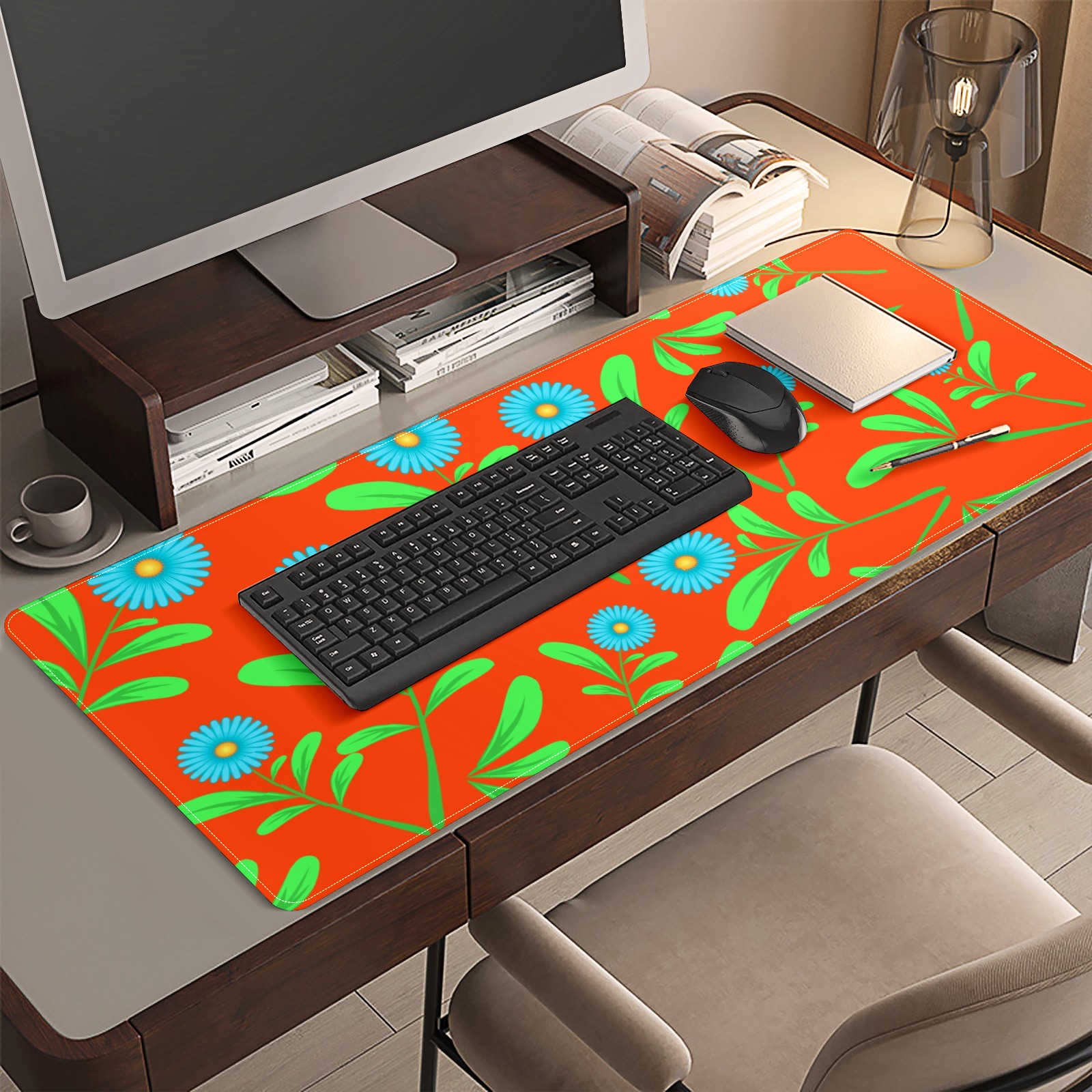 <p>This 35.4” × 15.7” extended desk mat offers ample space for your keyboard, mouse and essentials, working as a smooth work/writing pad while protecting your desktop from scratches.</p><p>With stylish artistic patterns, it adds personality to your home office, study or gaming setup. The high-density woven surface ensures precise, smooth mouse tracking for work and gaming.</p><p>Featuring an anti-slip natural rubber base for firm grip and stability, the mat is soft, elastic and odorless. Reinforced stitched edges prevent fraying and curling for long-lasting durability.</p>