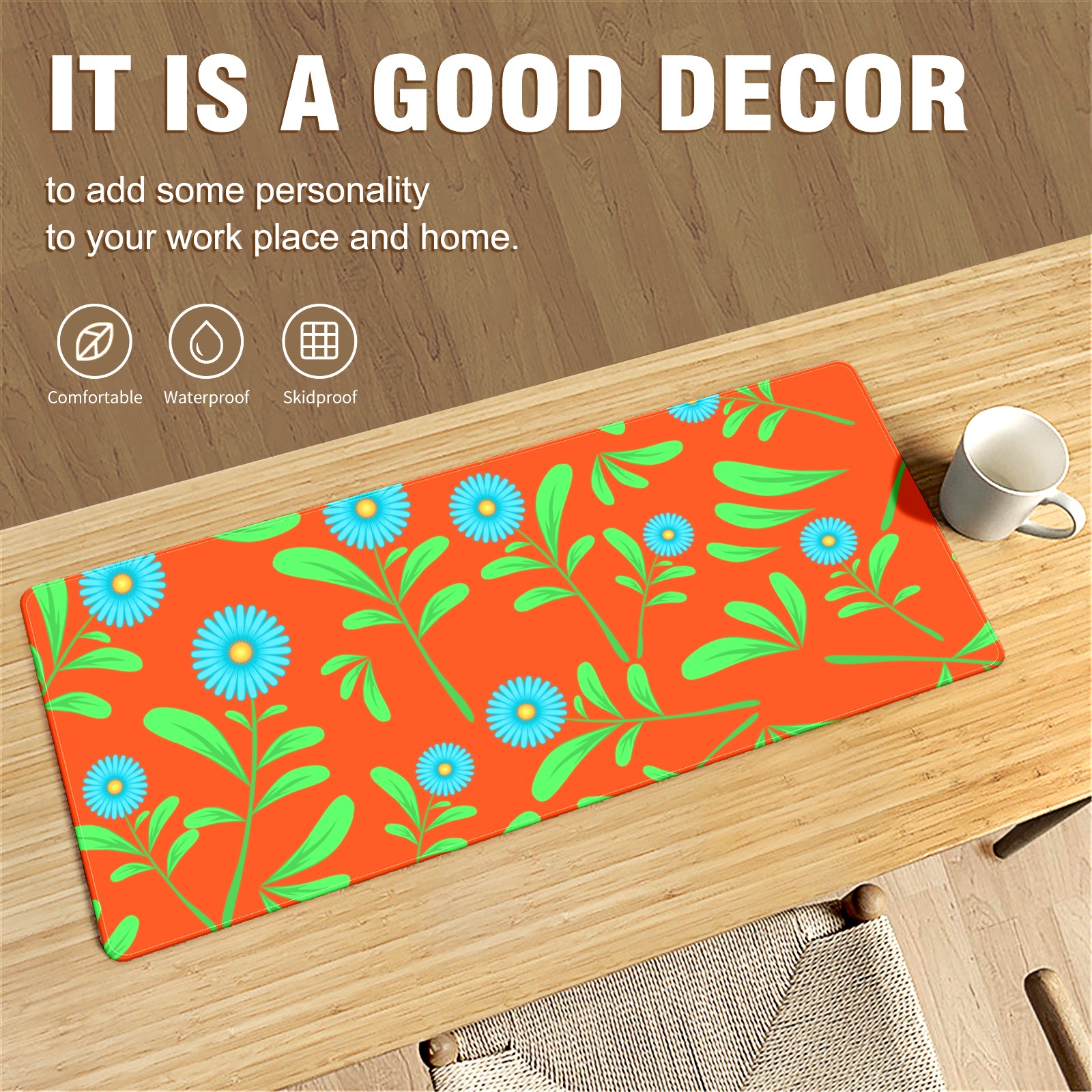 • <p>This 35.4” × 15.7” extended desk mat offers ample space for your keyboard, mouse and essentials, working as a smooth work/writing pad while protecting your desktop from scratches.</p><p>With stylish artistic patterns, it adds personality to your home office, study or gaming setup. The high-density woven surface ensures precise, smooth mouse tracking for work and gaming.</p><p>Featuring an anti-slip natural rubber base for firm grip and stability, the mat is soft, elastic and odorless. Reinforced stitched edges prevent fraying and curling for long-lasting durability.</p>