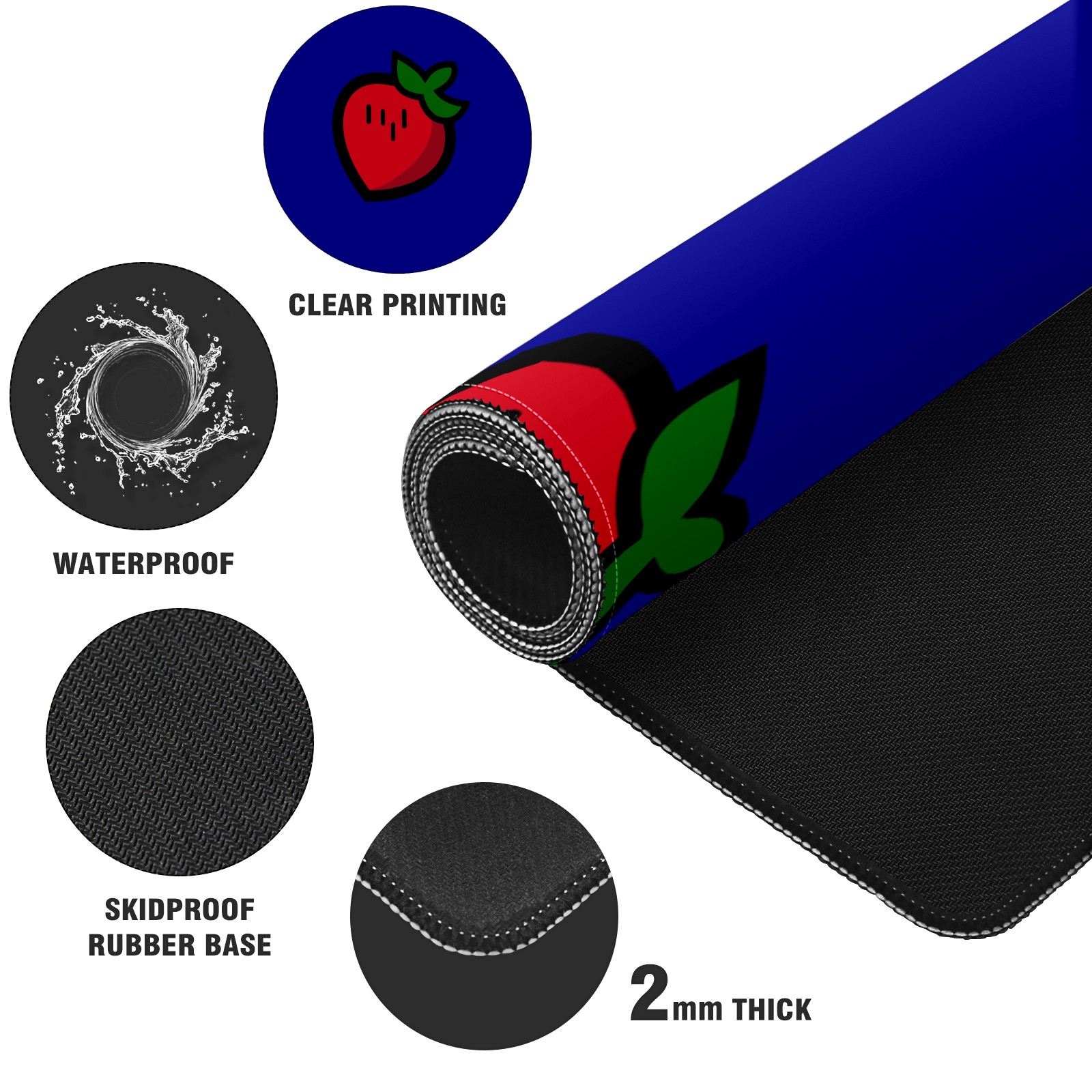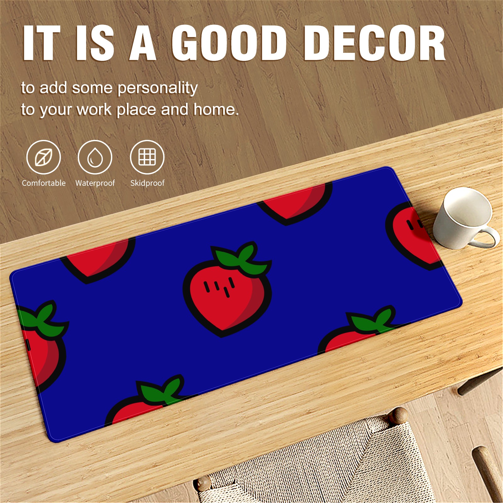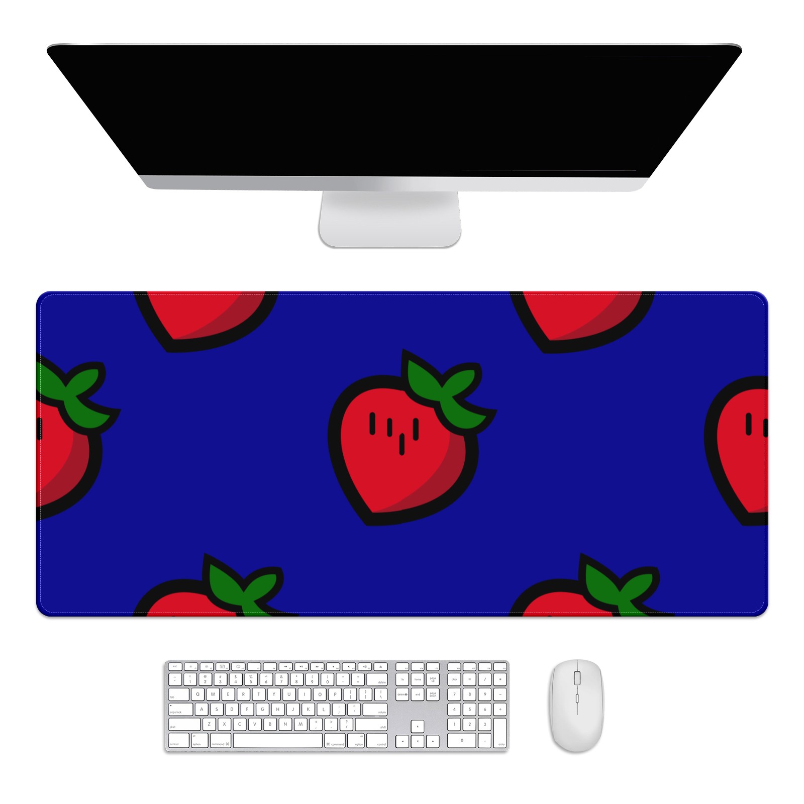 Large Mouse Pad for Desktop, Cute Desk Mat Pad Protector for Work & Gaming, Aesthetic Pretty Anti-Slip Laptop Blotter Cover for Office School Home Supplies, Strawberry Red Blue Seamless , 35.4inx15.7in