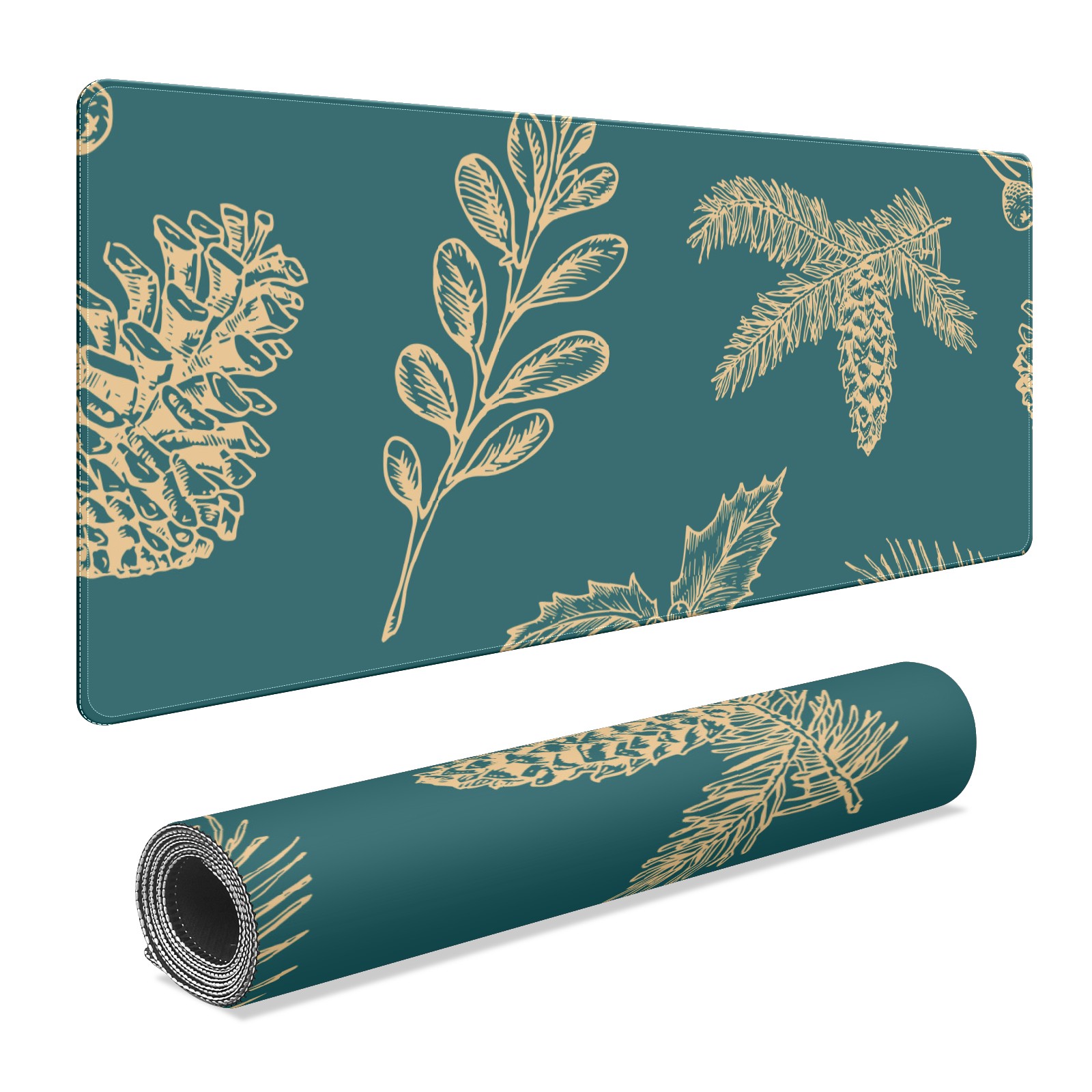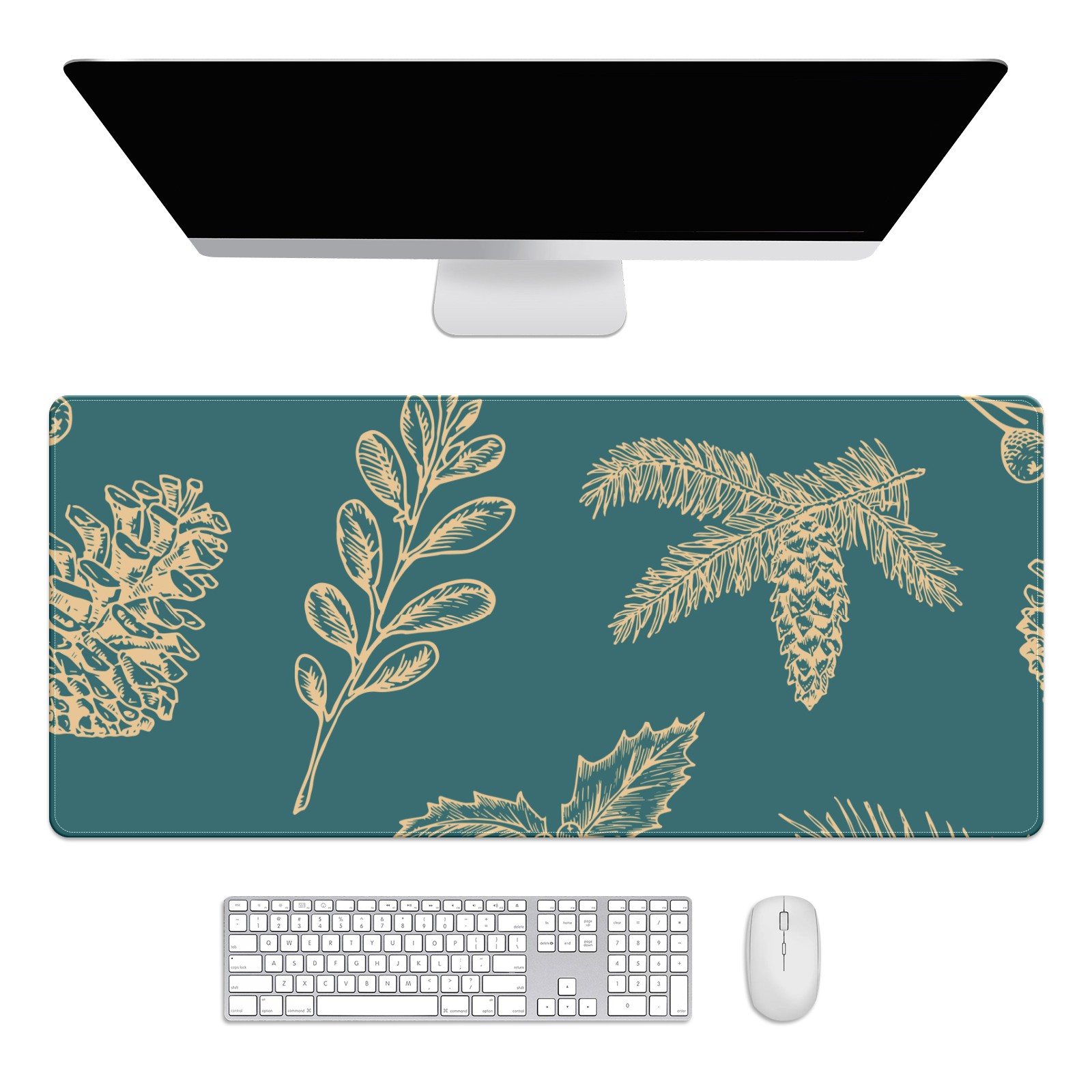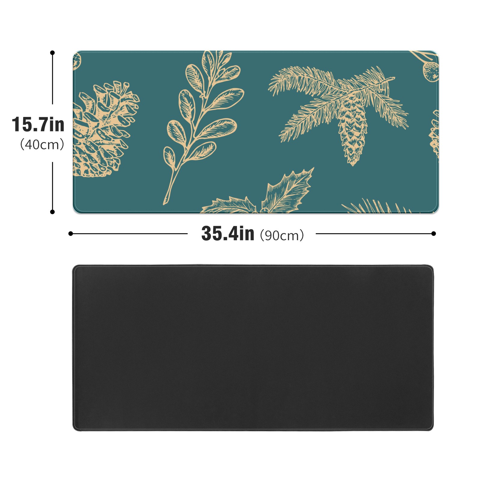 Large Mouse Pad for Desktop, Cute Desk Mat Pad Protector for Work & Gaming, Aesthetic Pretty Anti-Slip Laptop Blotter Cover for Office School Home Supplies, Leaves Berry Dark Green Seamless , 35.4inx15.7in