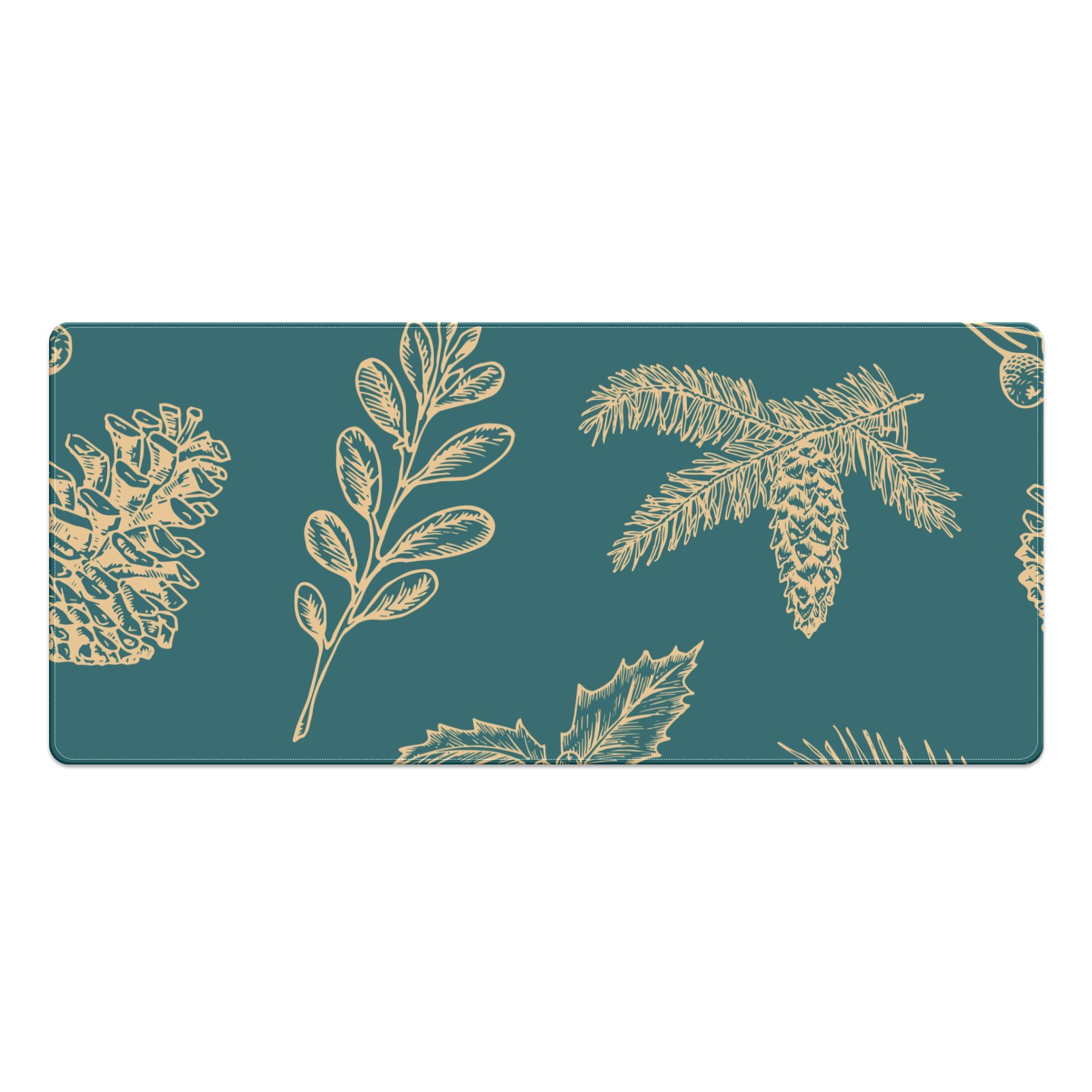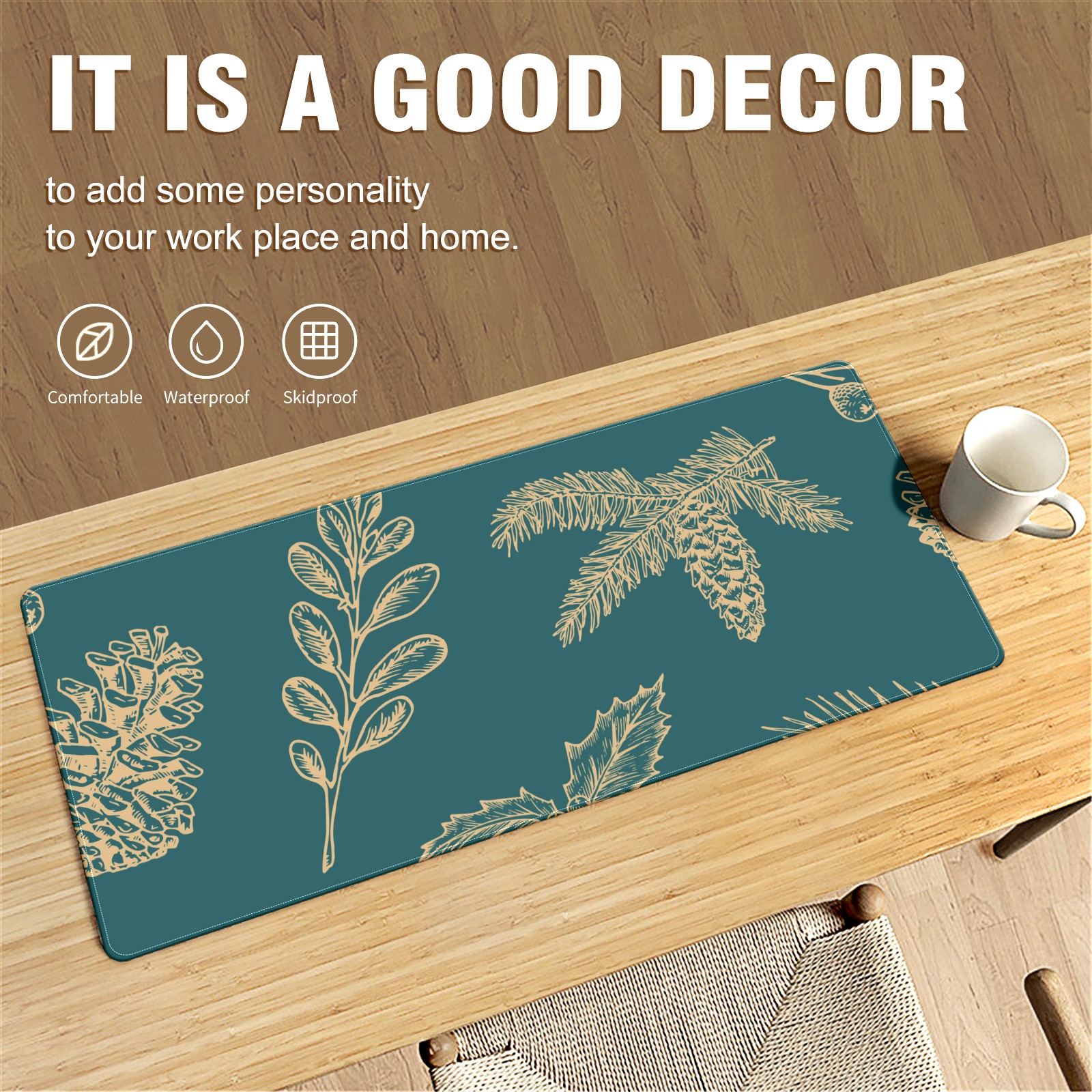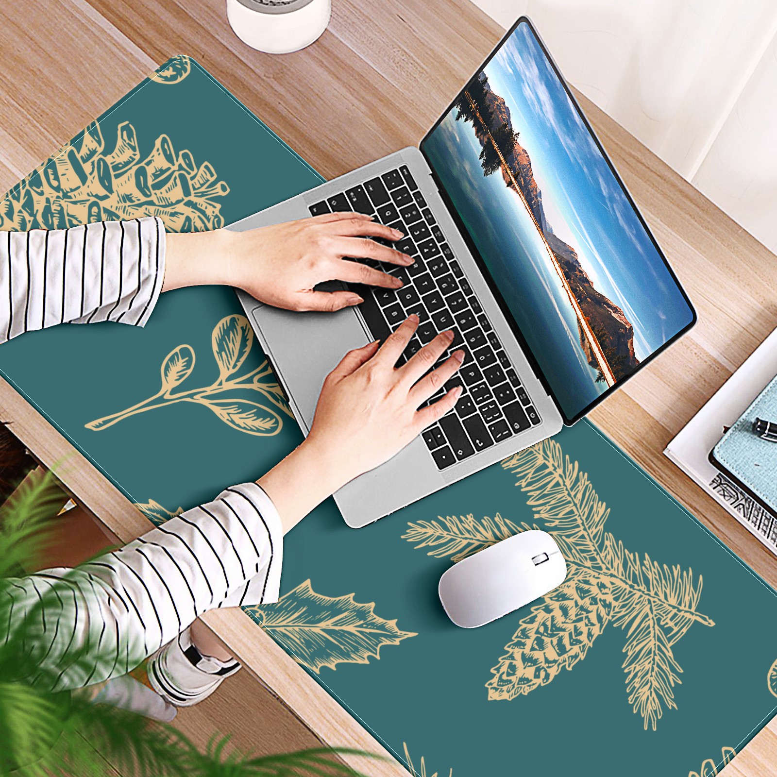 Large Mouse Pad for Desktop, Cute Desk Mat Pad Protector for Work & Gaming, Aesthetic Pretty Anti-Slip Laptop Blotter Cover for Office School Home Supplies, Leaves Berry Dark Green Seamless , 35.4inx15.7in