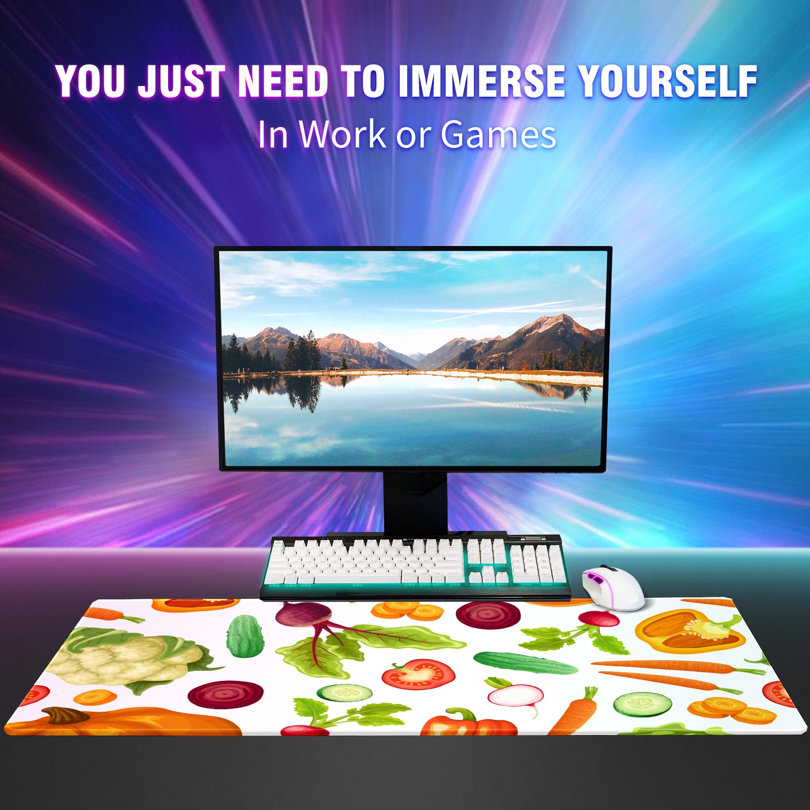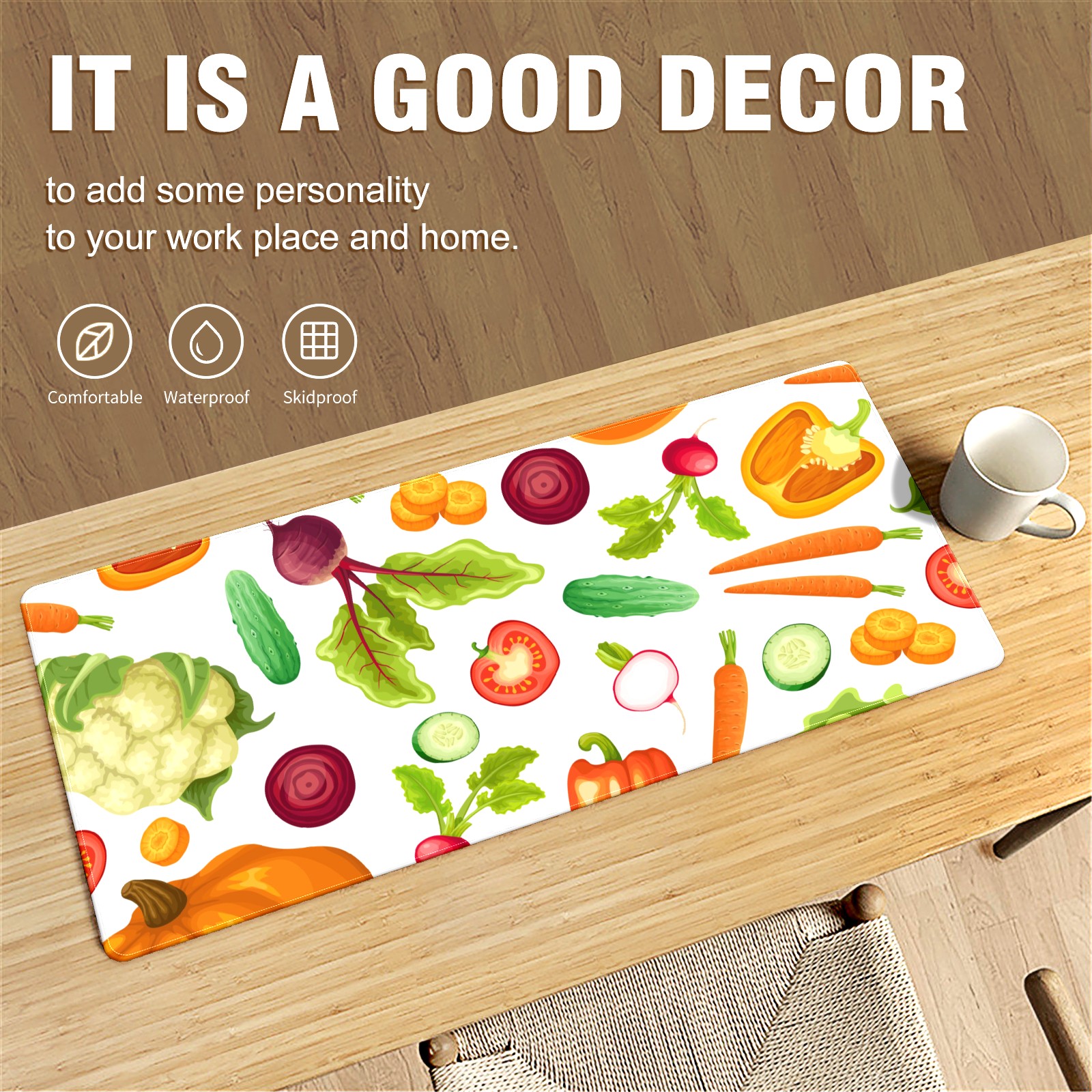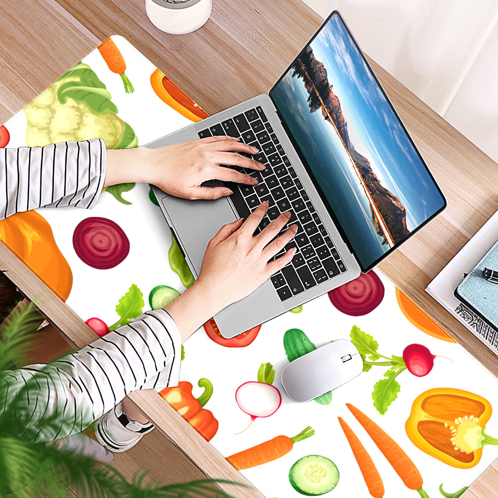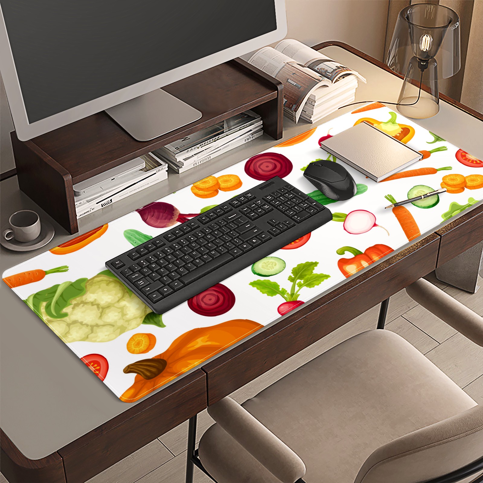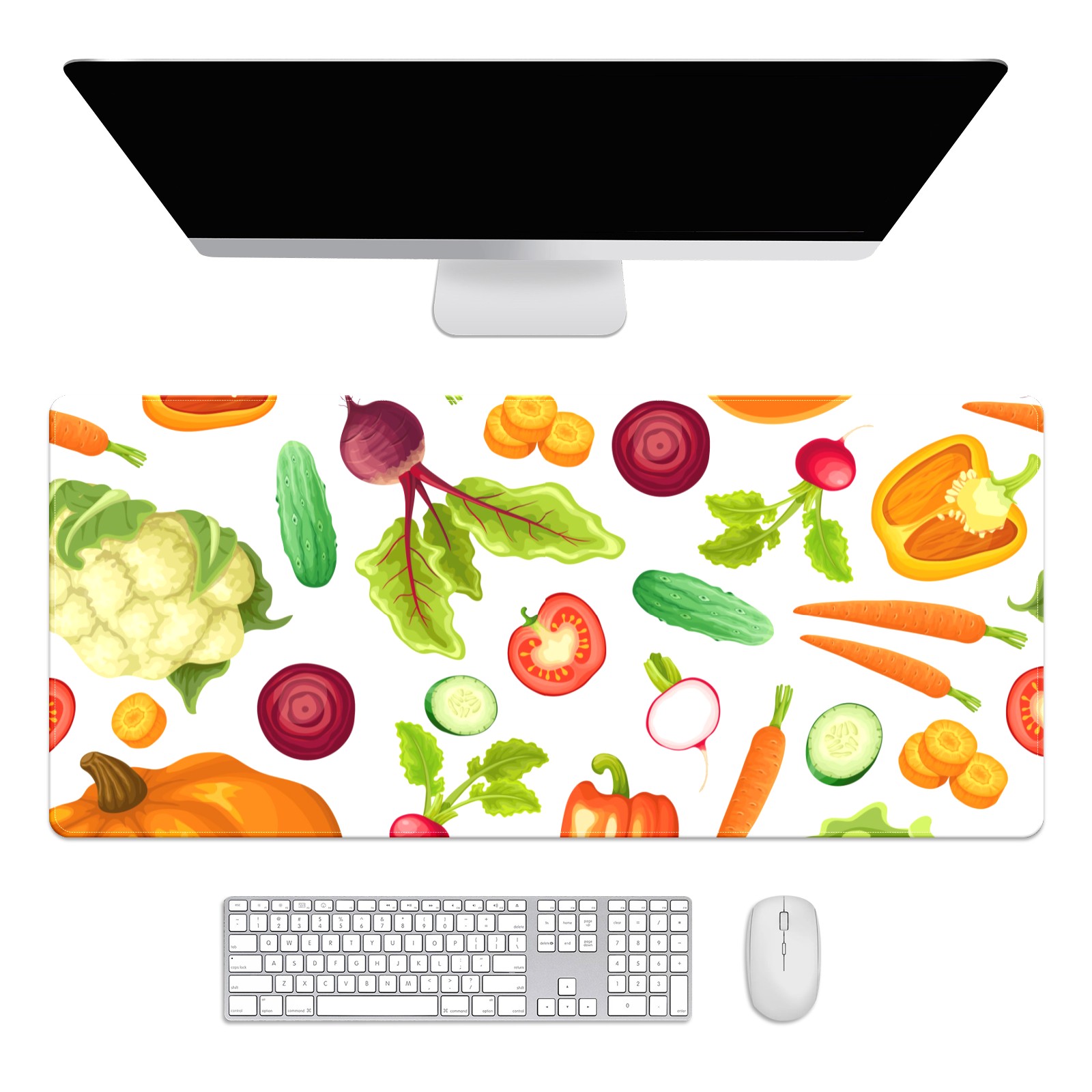 Large Mouse Pad for Desktop, Cute Desk Mat Pad Protector for Work & Gaming, Aesthetic Pretty Anti-Slip Laptop Blotter Cover for Office School Home Supplies, Cartoon Fresh Vegetables Seamless , 35.4inx15.7in