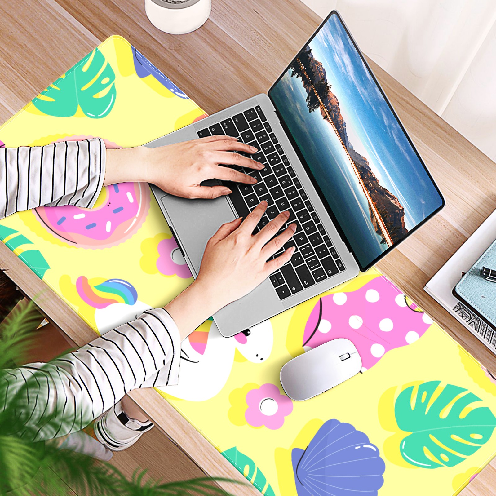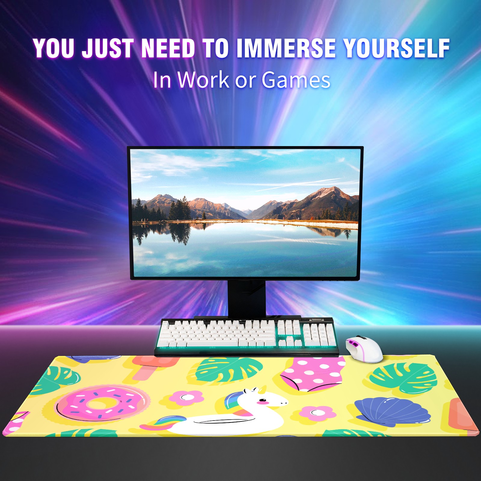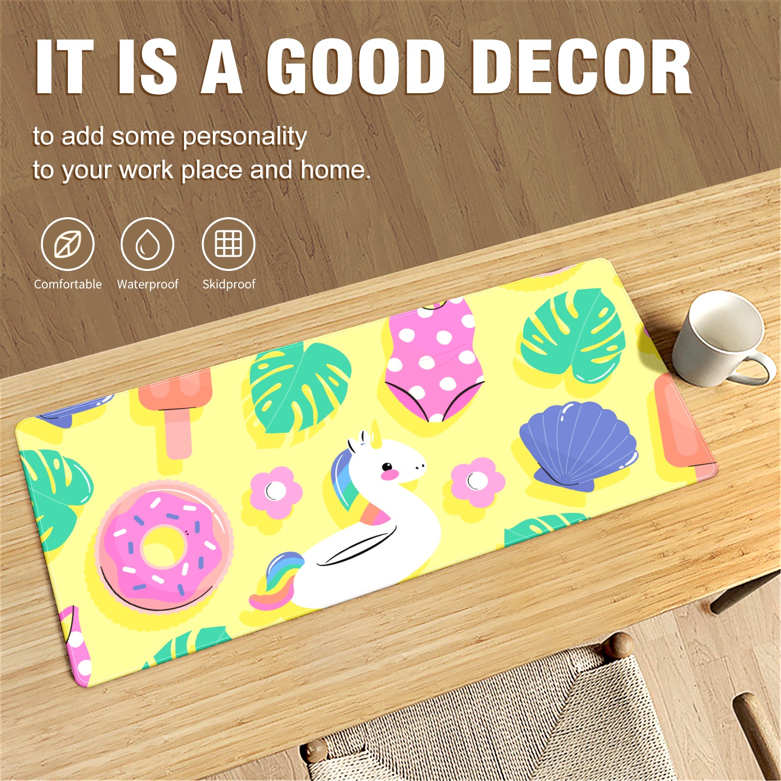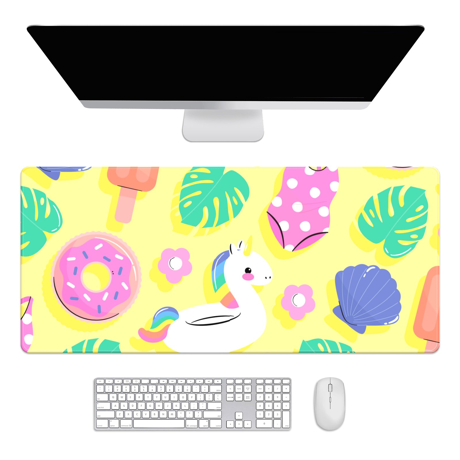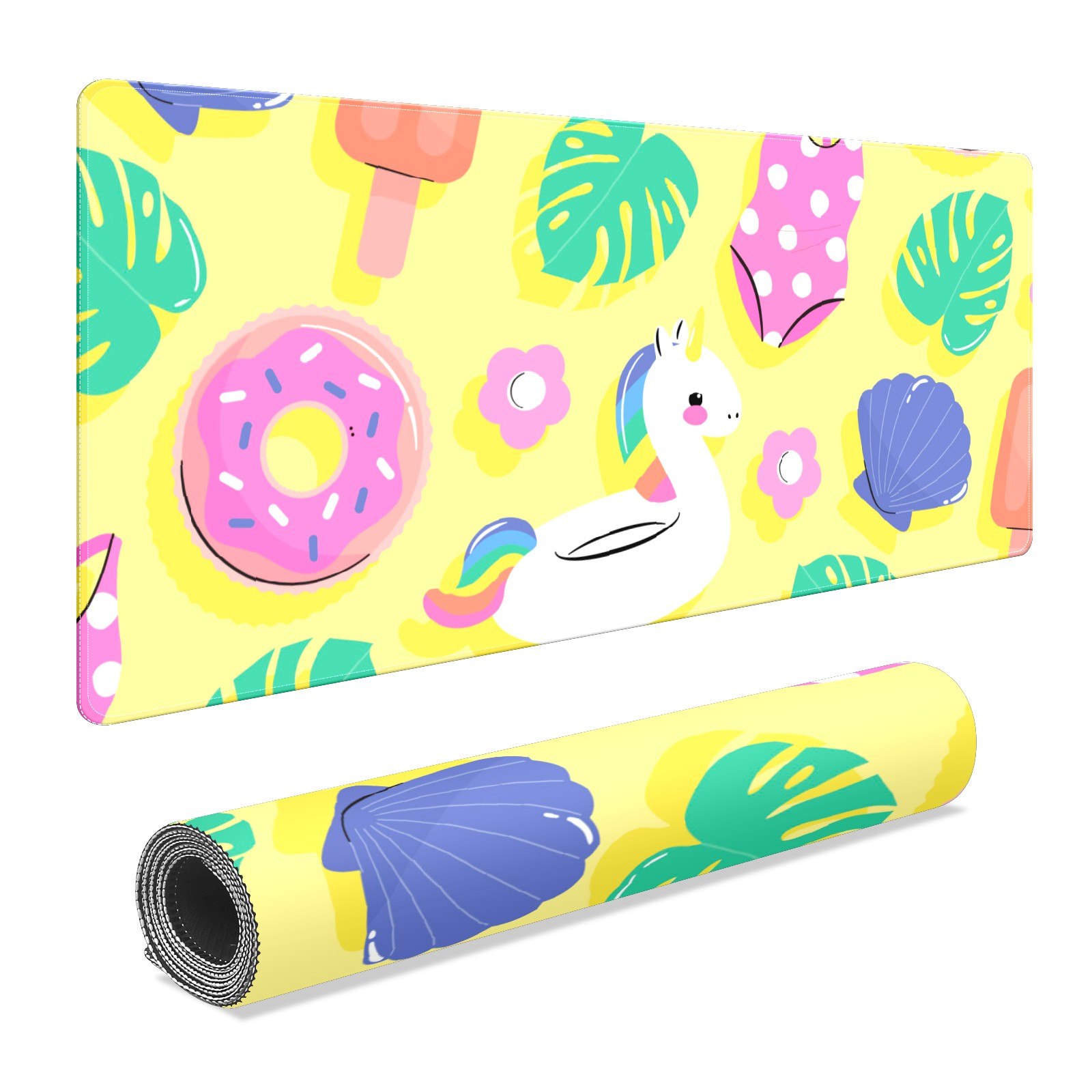Large Mouse Pad for Desktop, Cute Desk Mat Pad Protector for Work & Gaming, Aesthetic Pretty Anti-Slip Laptop Blotter Cover for Office School Home Supplies, Summer Palm Lifebuoy Popsicle , 35.4inx15.7in