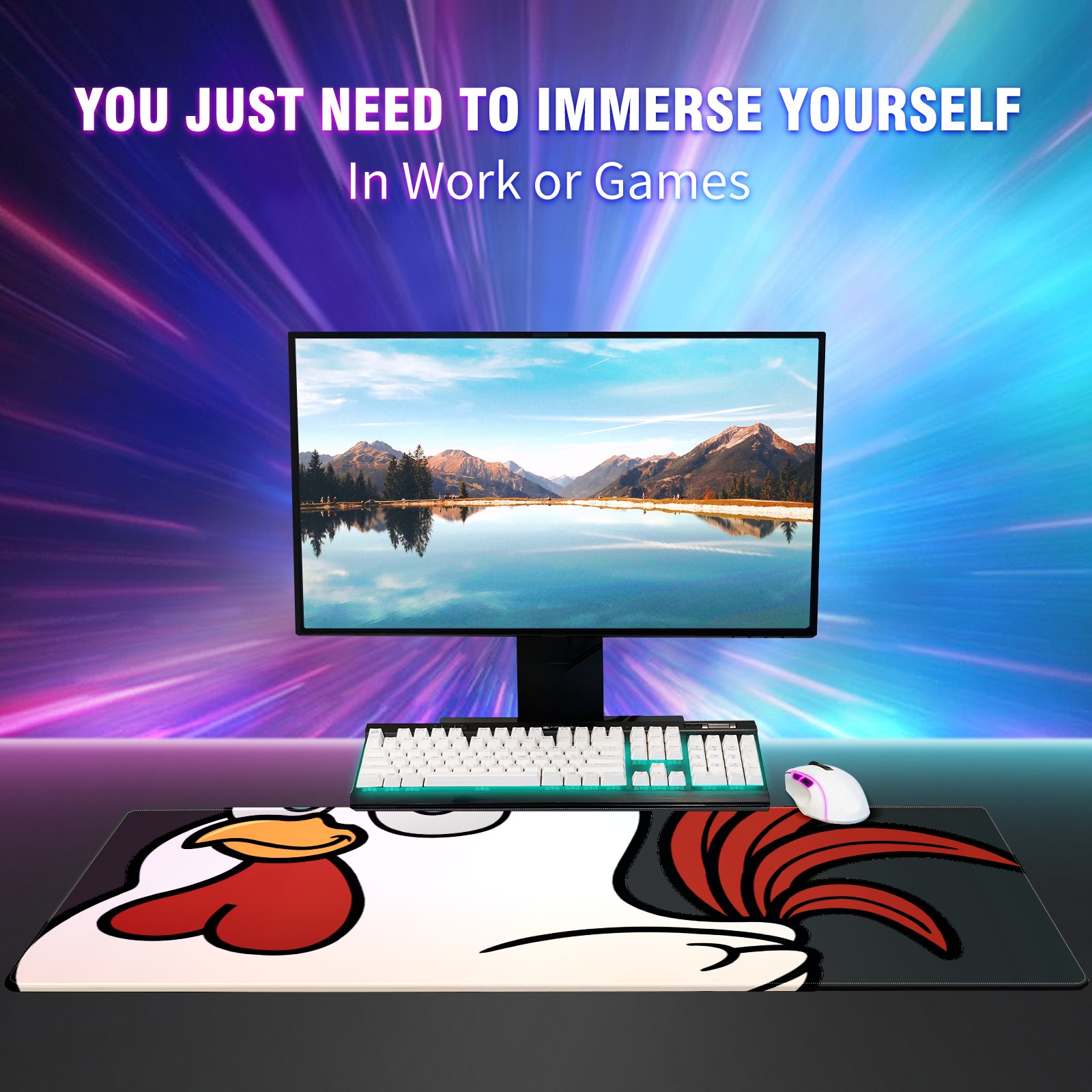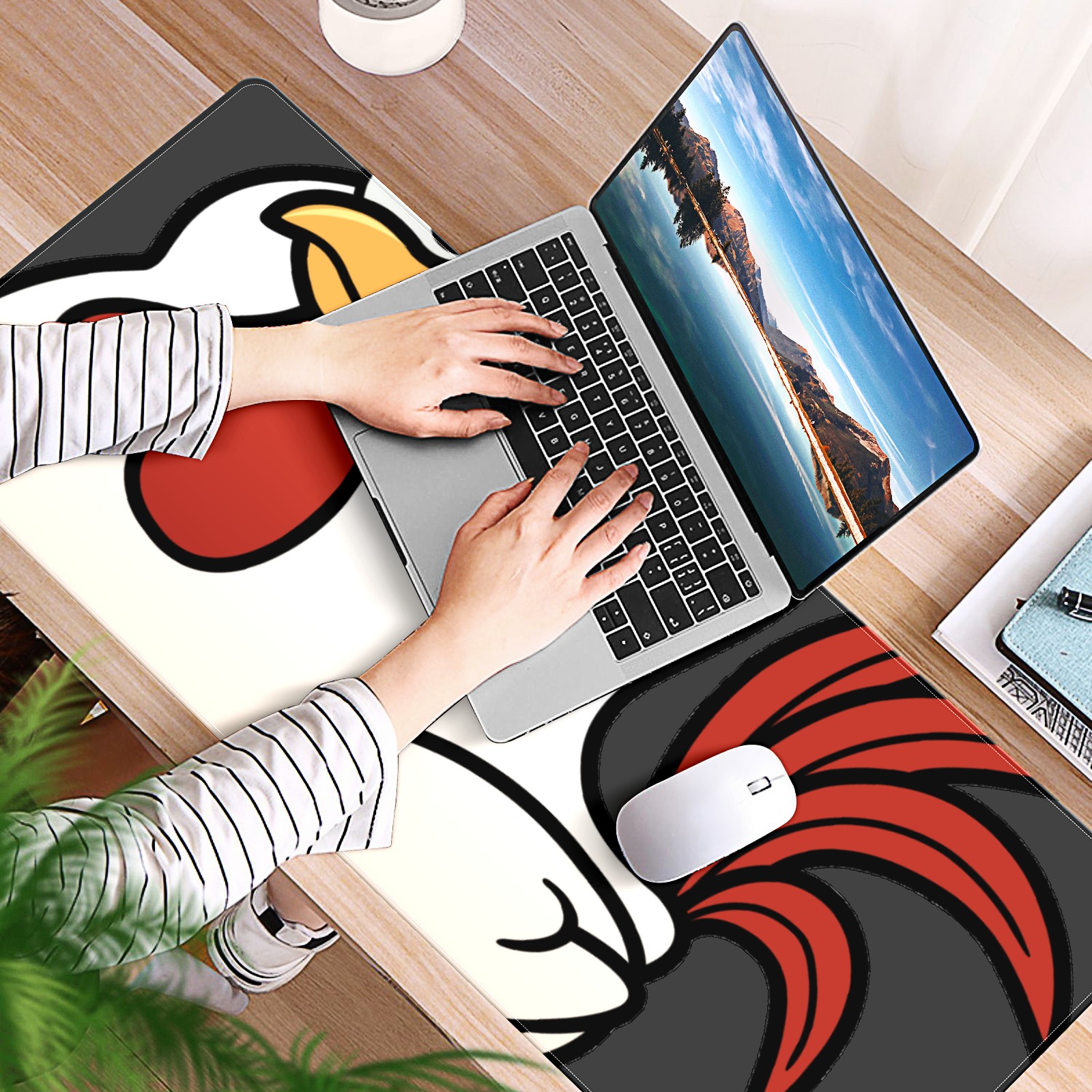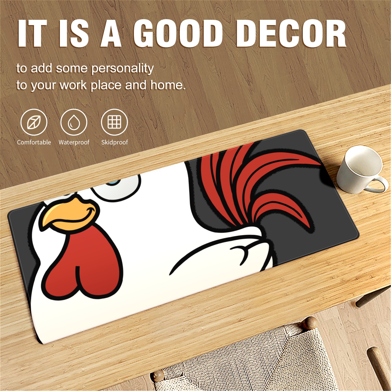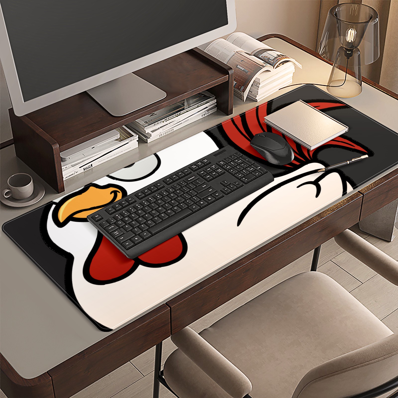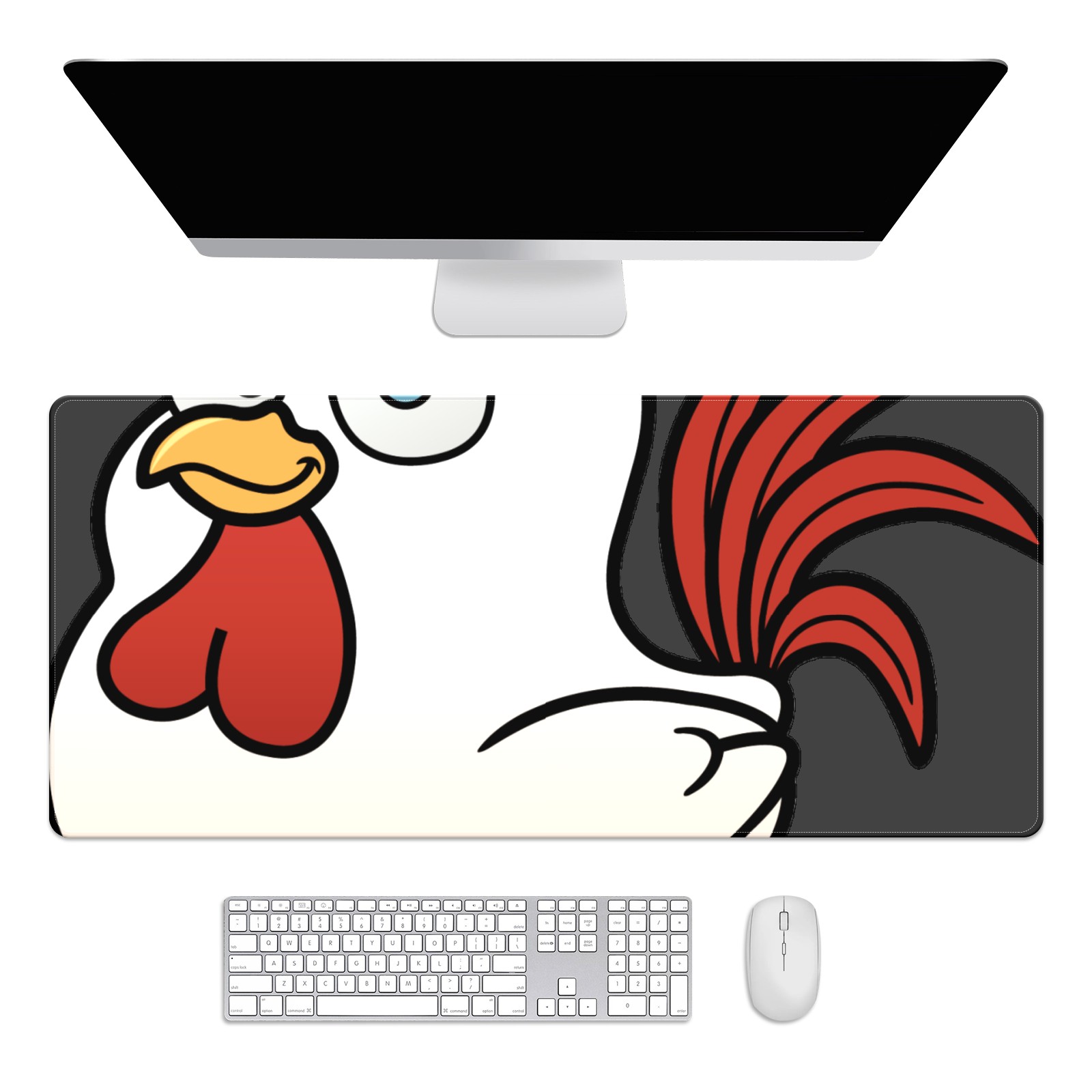 Large Mouse Pad for Desktop, Cute Desk Mat Pad Protector for Work & Gaming, Aesthetic Pretty Anti-Slip Laptop Blotter Cover for Office School Home Supplies, Chicken Rooster , 35.4inx15.7in