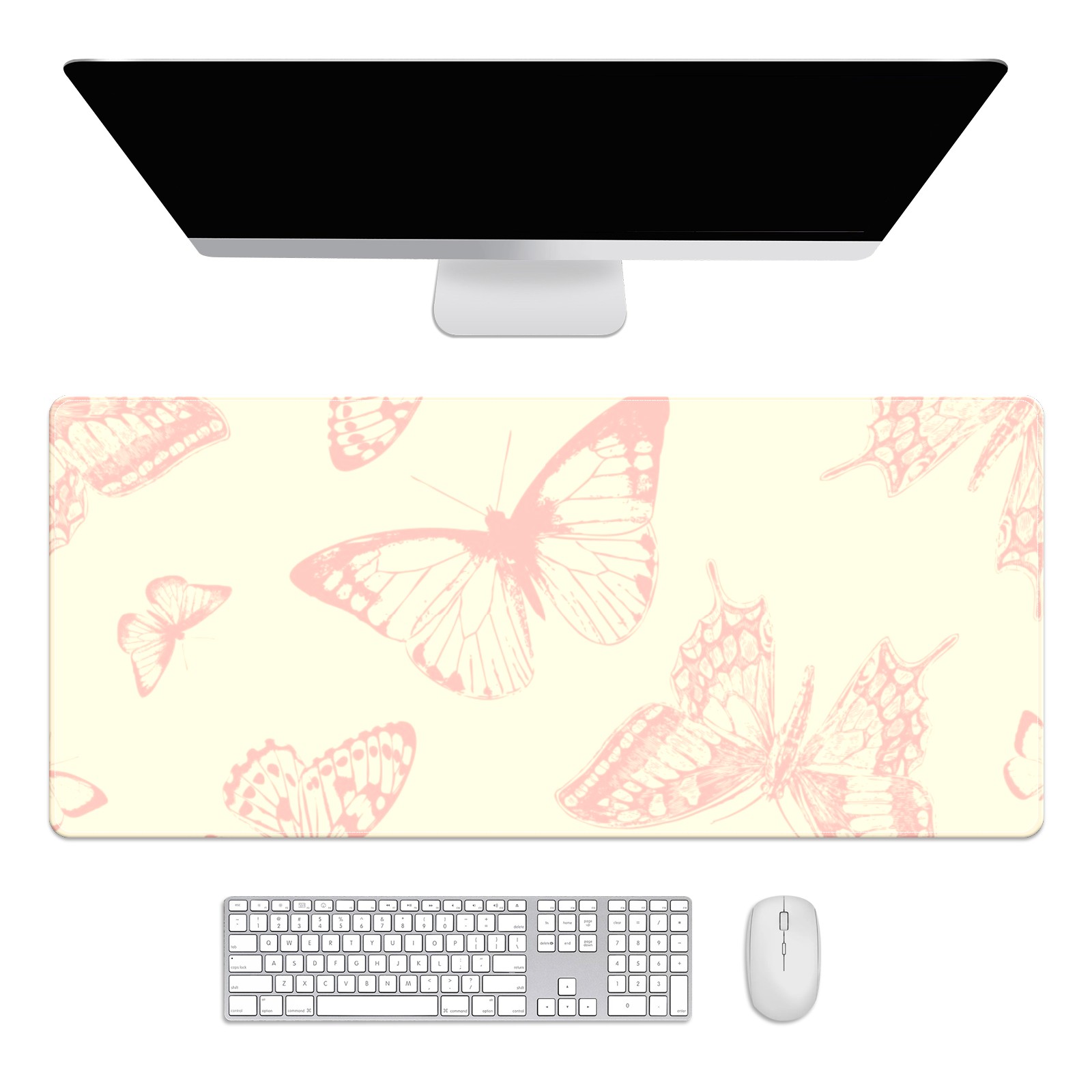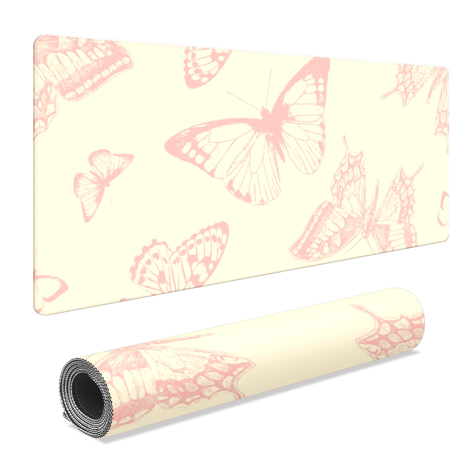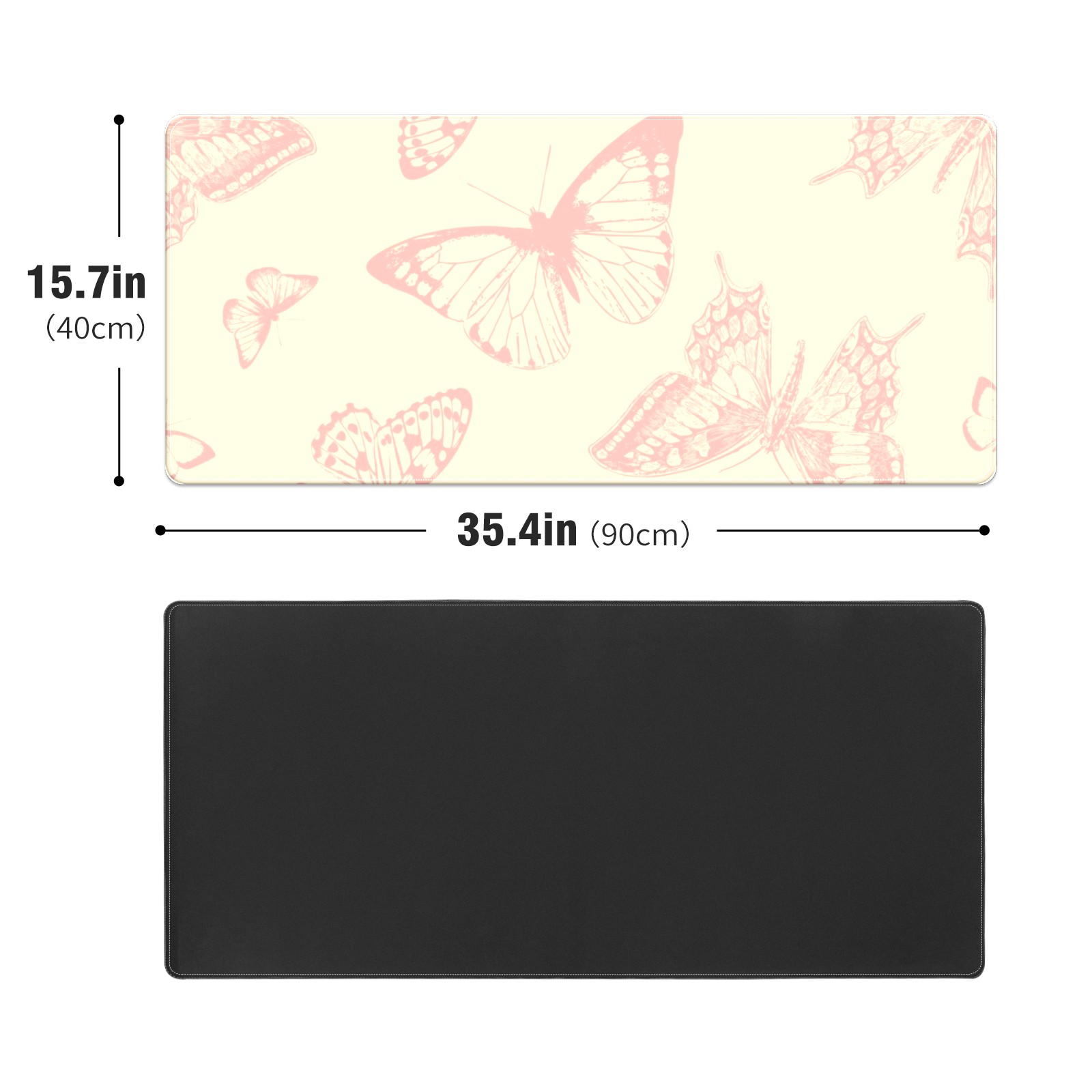 Large Mouse Pad for Desktop, Cute Desk Mat Pad Protector for Work & Gaming, Aesthetic Pretty Anti-Slip Laptop Blotter Cover for Office School Home Supplies, Butterflies Vintage Seamless , 35.4inx15.7in