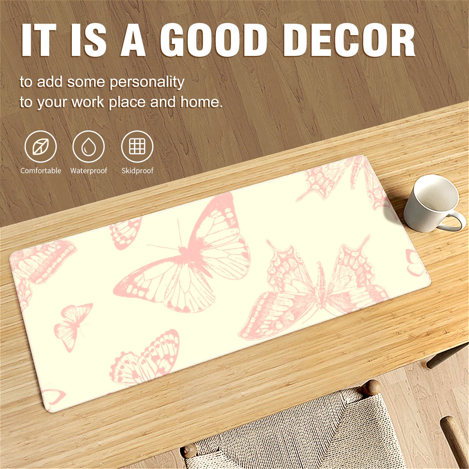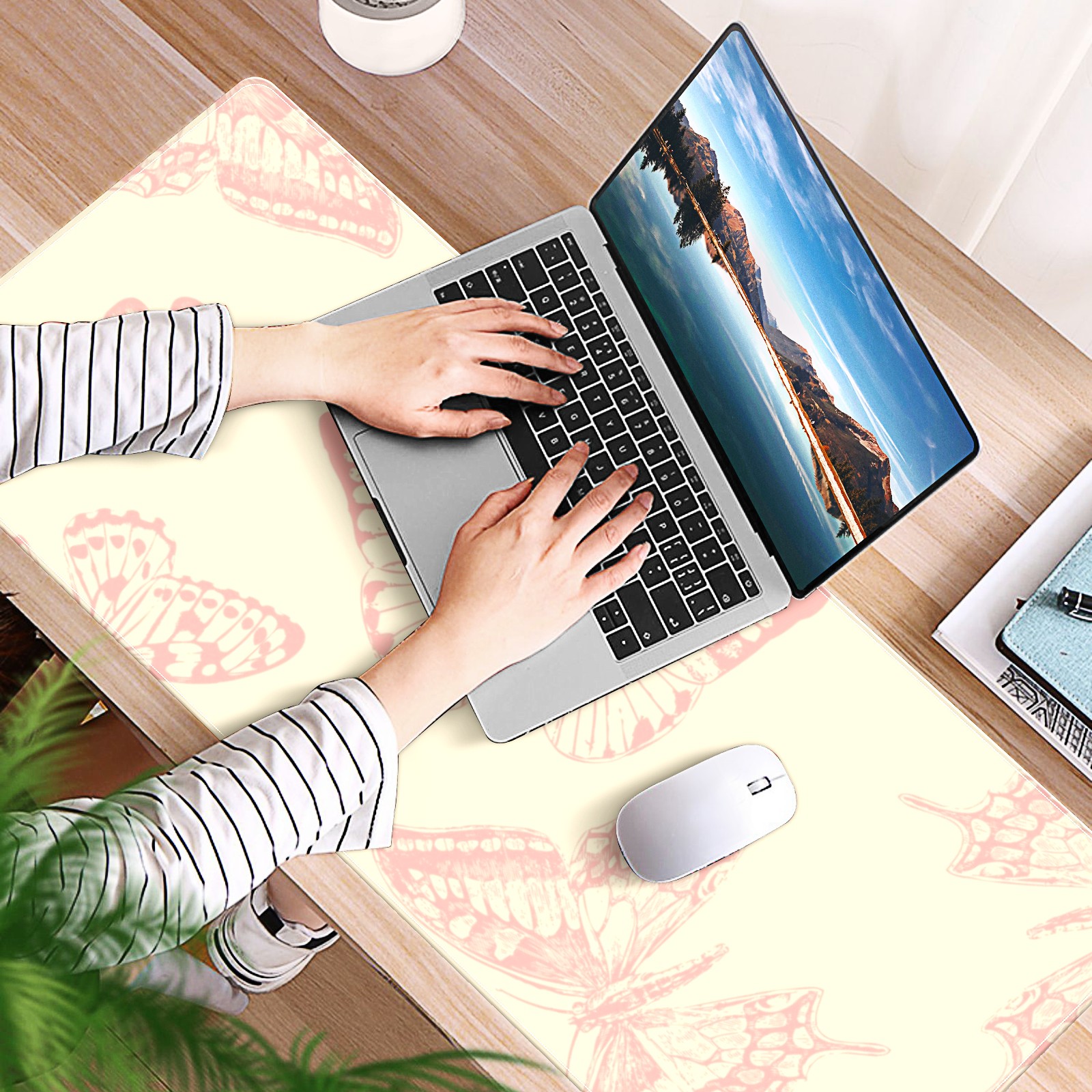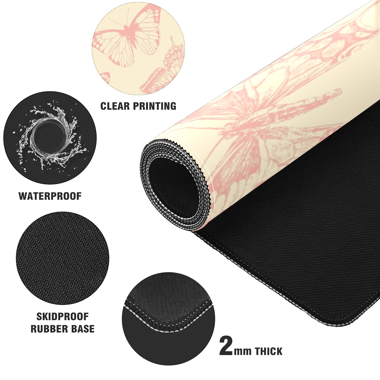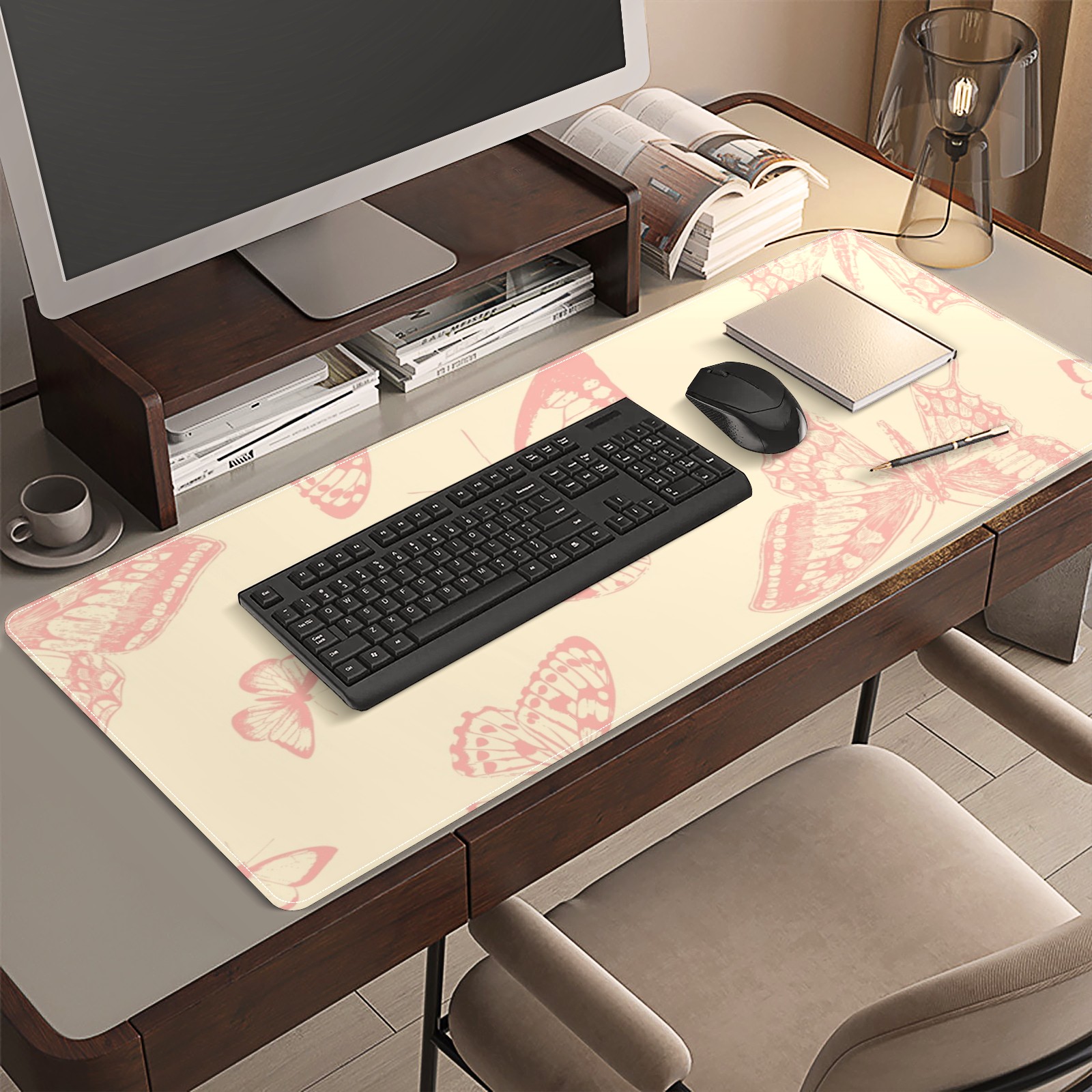 Large Mouse Pad for Desktop, Cute Desk Mat Pad Protector for Work & Gaming, Aesthetic Pretty Anti-Slip Laptop Blotter Cover for Office School Home Supplies, Butterflies Vintage Seamless , 35.4inx15.7in