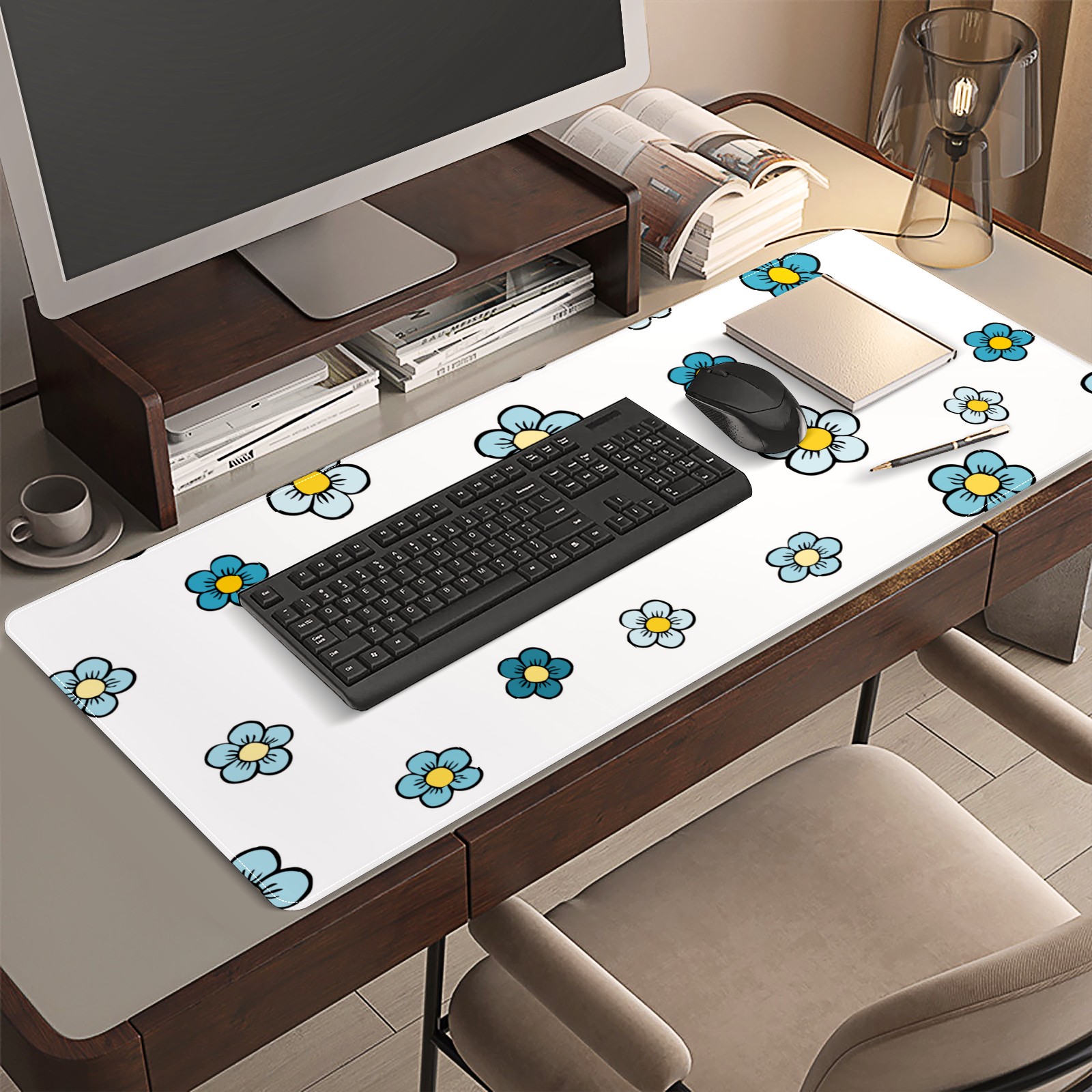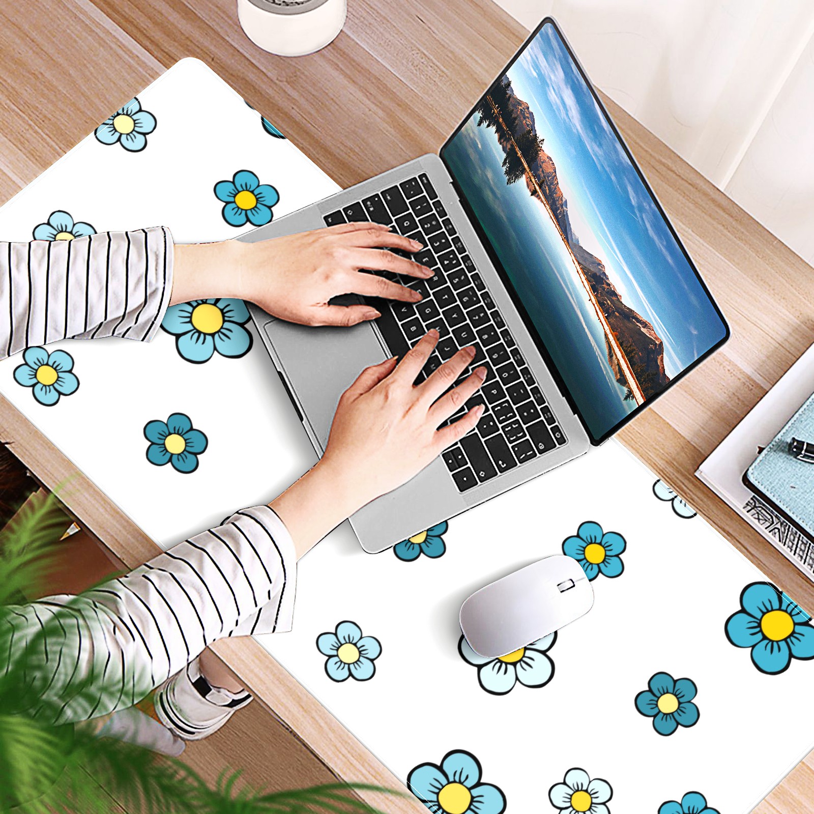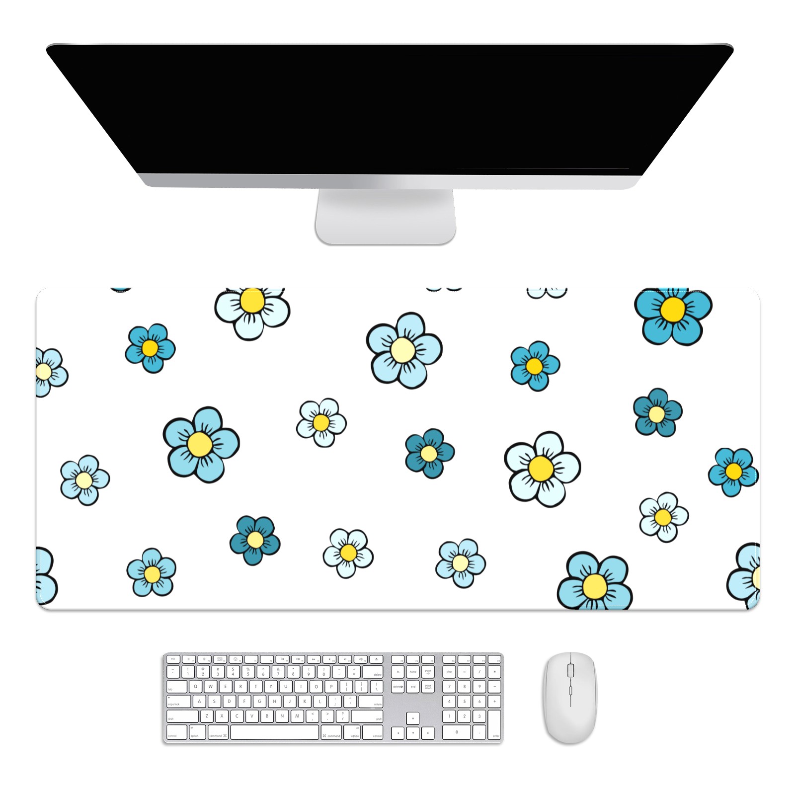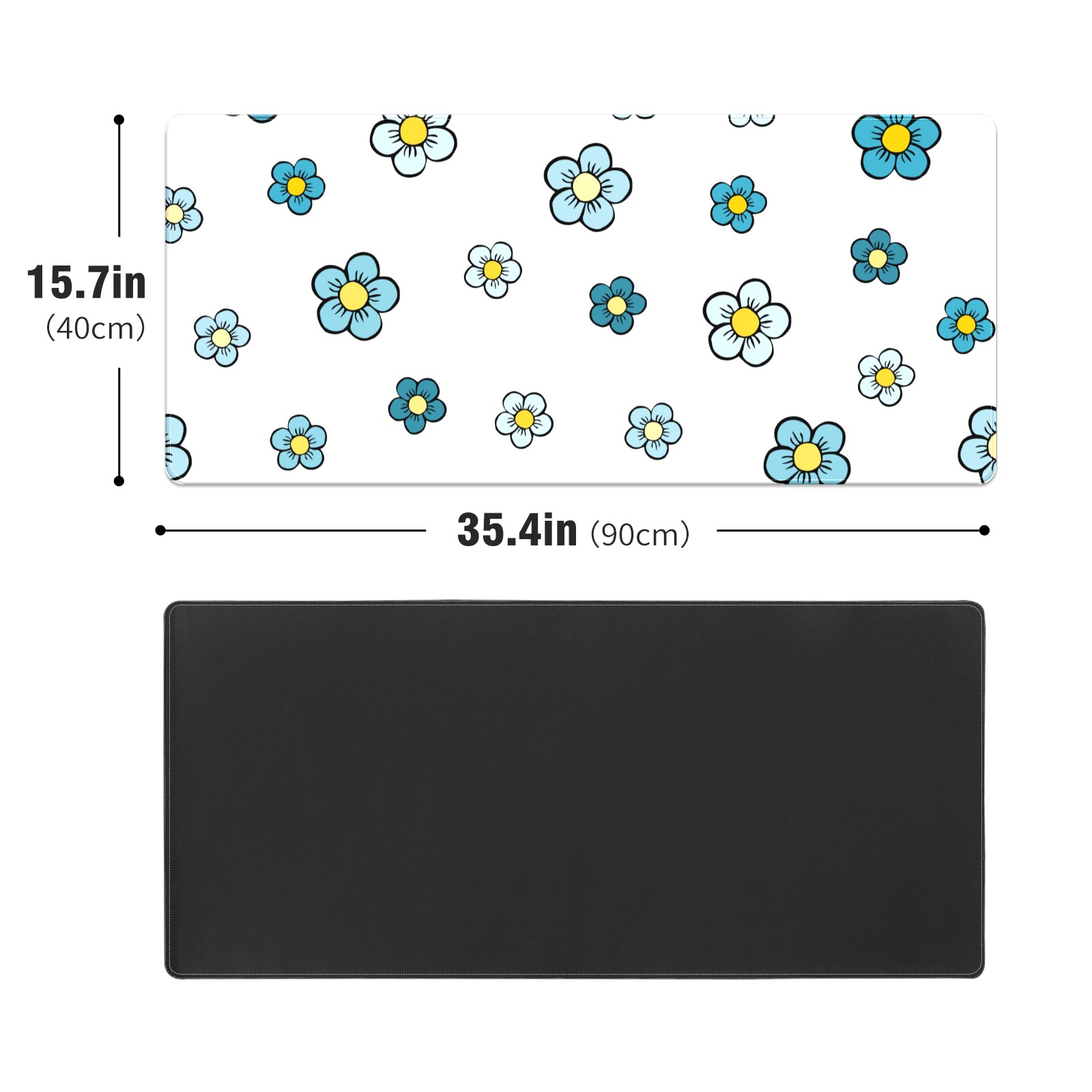 Large Mouse Pad for Desktop, Cute Desk Mat Pad Protector for Work & Gaming, Aesthetic Pretty Anti-Slip Laptop Blotter Cover for Office School Home Supplies, Flowers Blue Seamless , 35.4inx15.7in