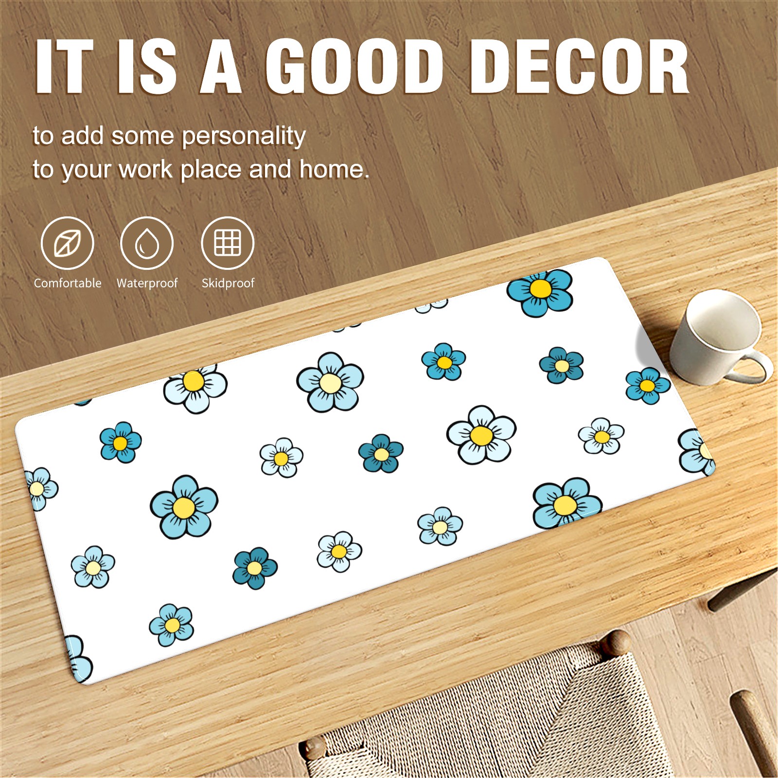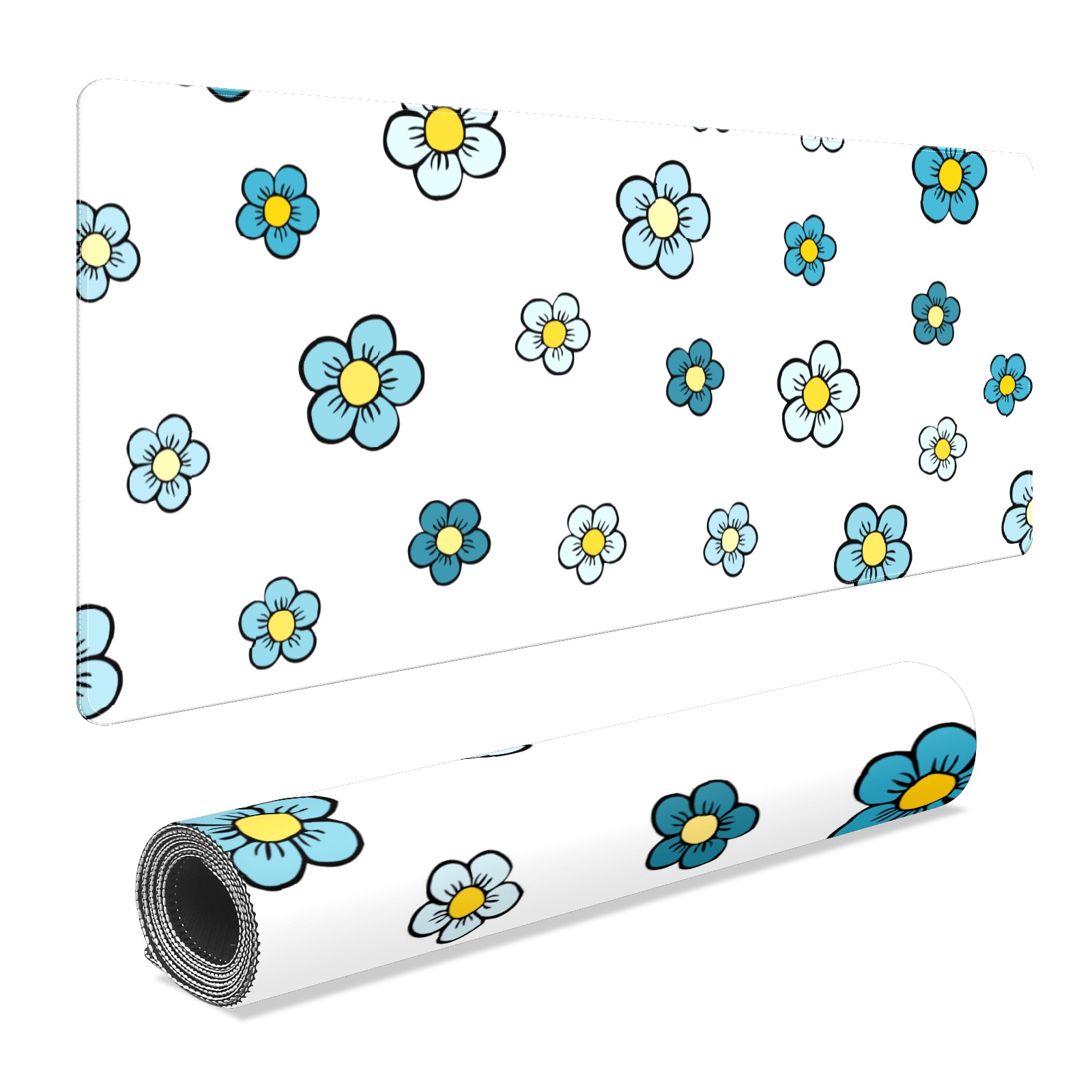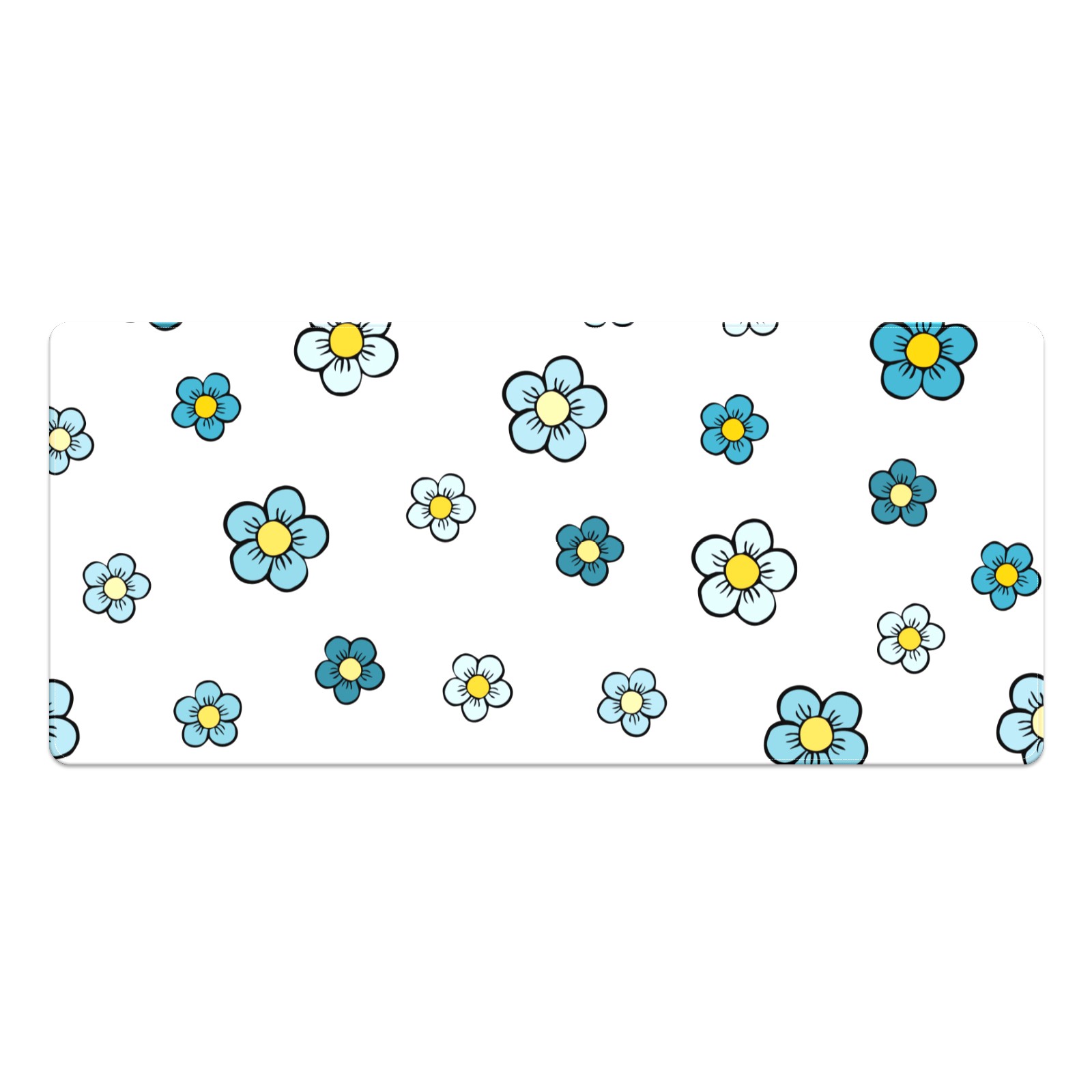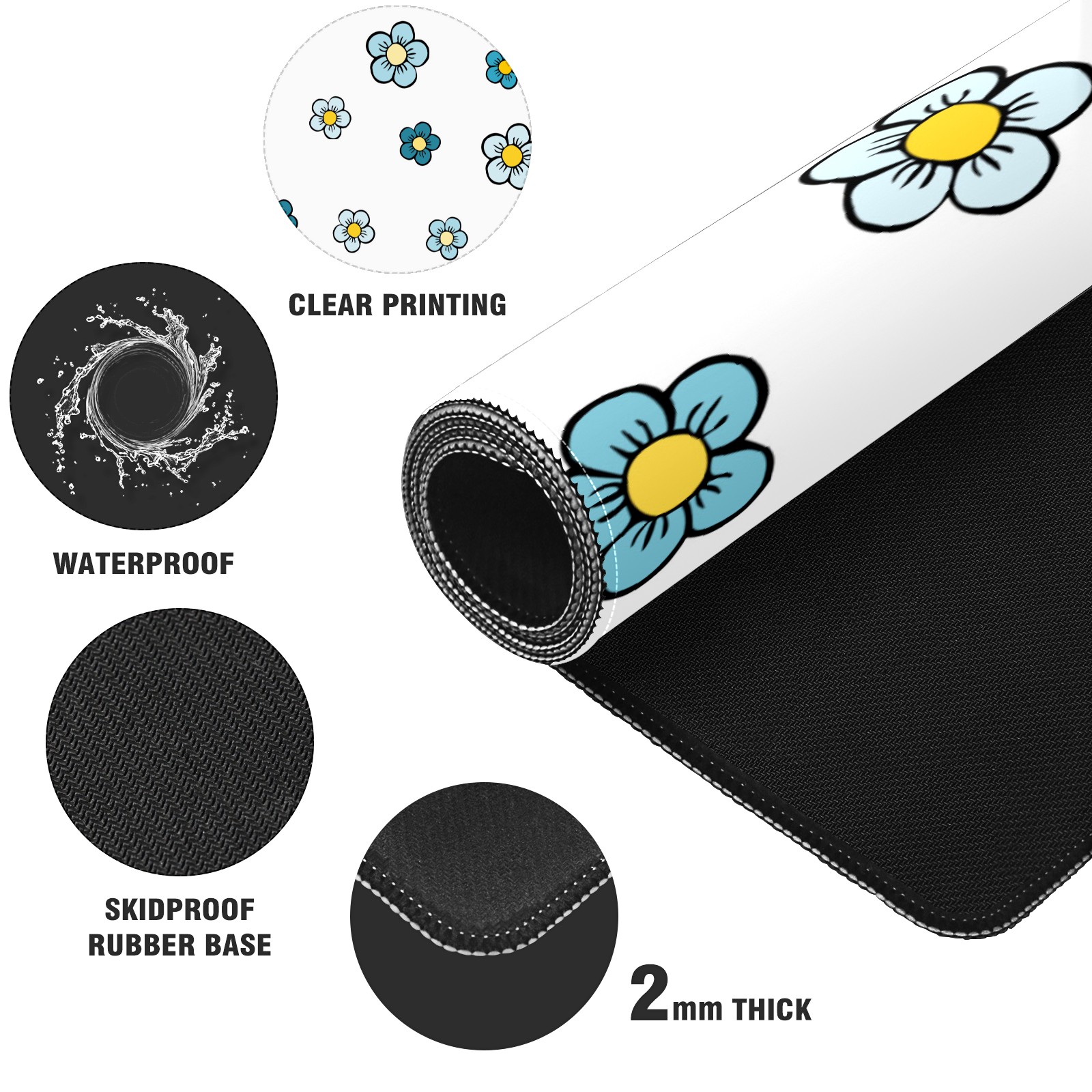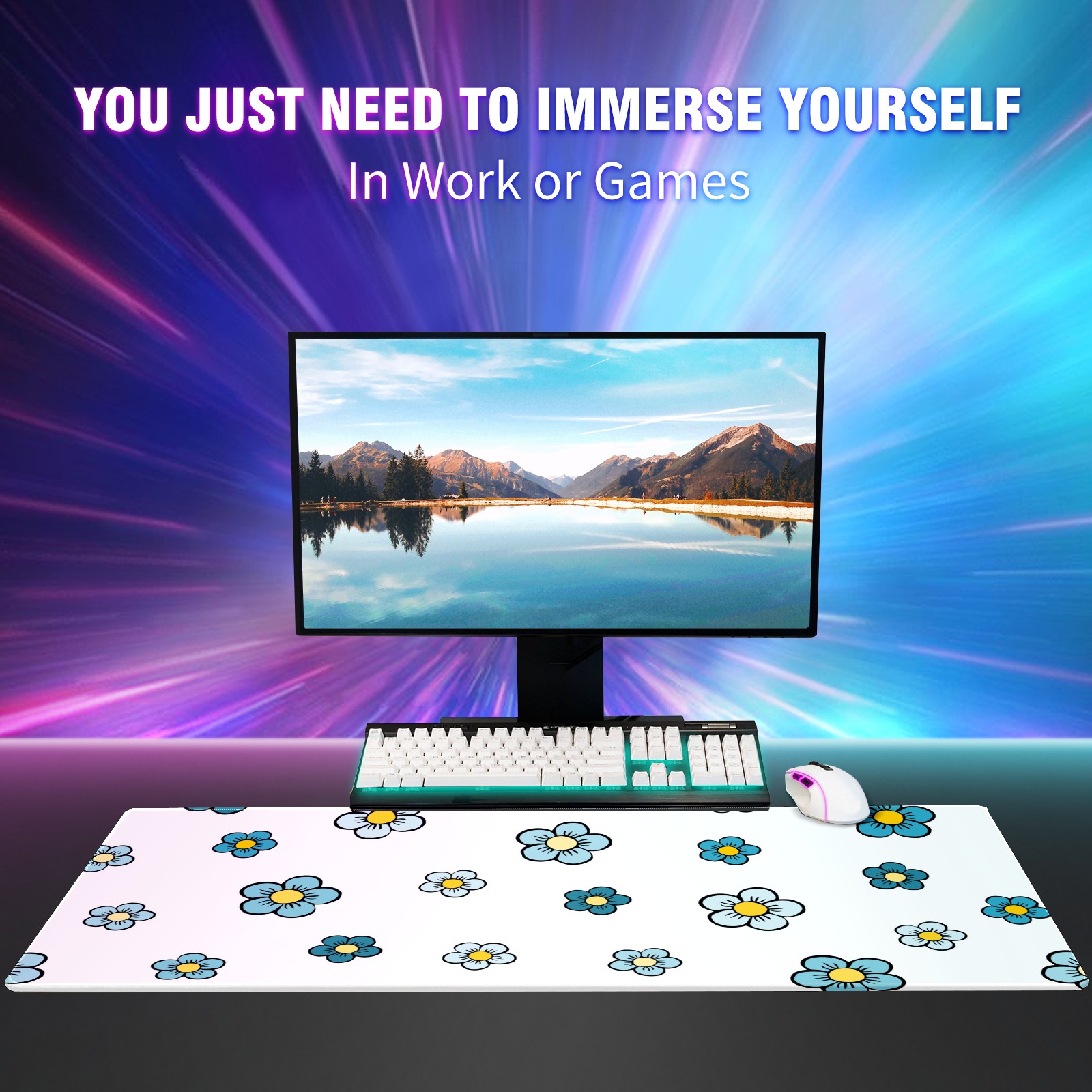 Large Mouse Pad for Desktop, Cute Desk Mat Pad Protector for Work & Gaming, Aesthetic Pretty Anti-Slip Laptop Blotter Cover for Office School Home Supplies, Flowers Blue Seamless , 35.4inx15.7in