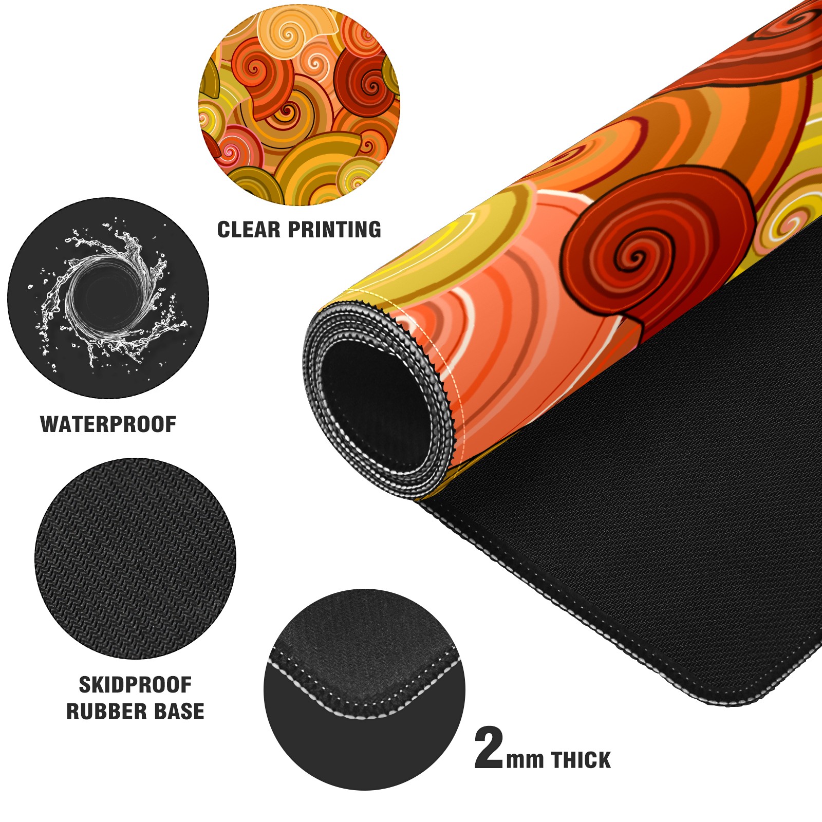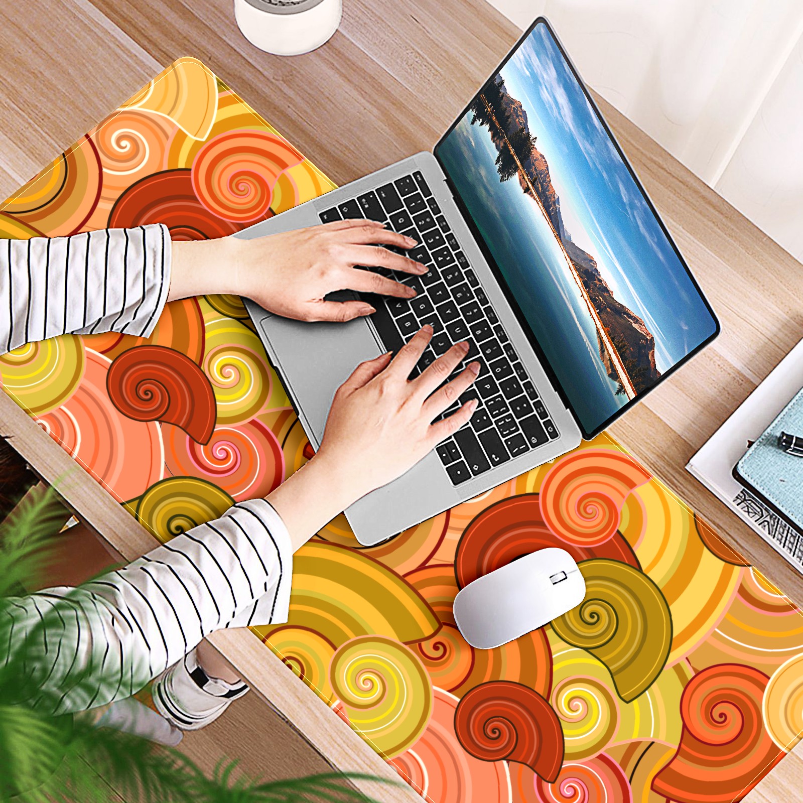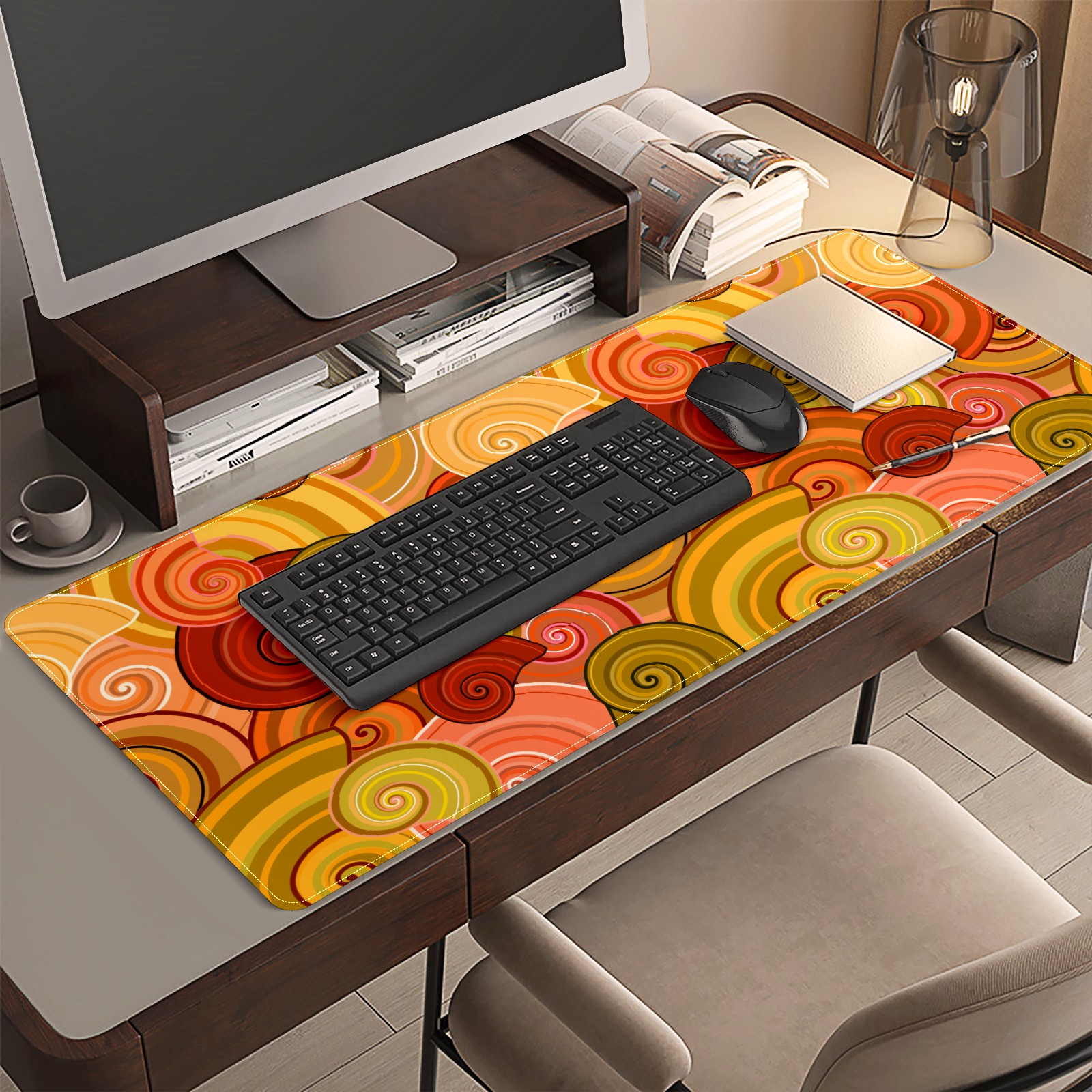 Large Mouse Pad for Desktop, Cute Desk Mat Pad Protector for Work & Gaming, Aesthetic Pretty Anti-Slip Laptop Blotter Cover for Office School Home Supplies, Snails Shell Colorful , 35.4inx15.7in