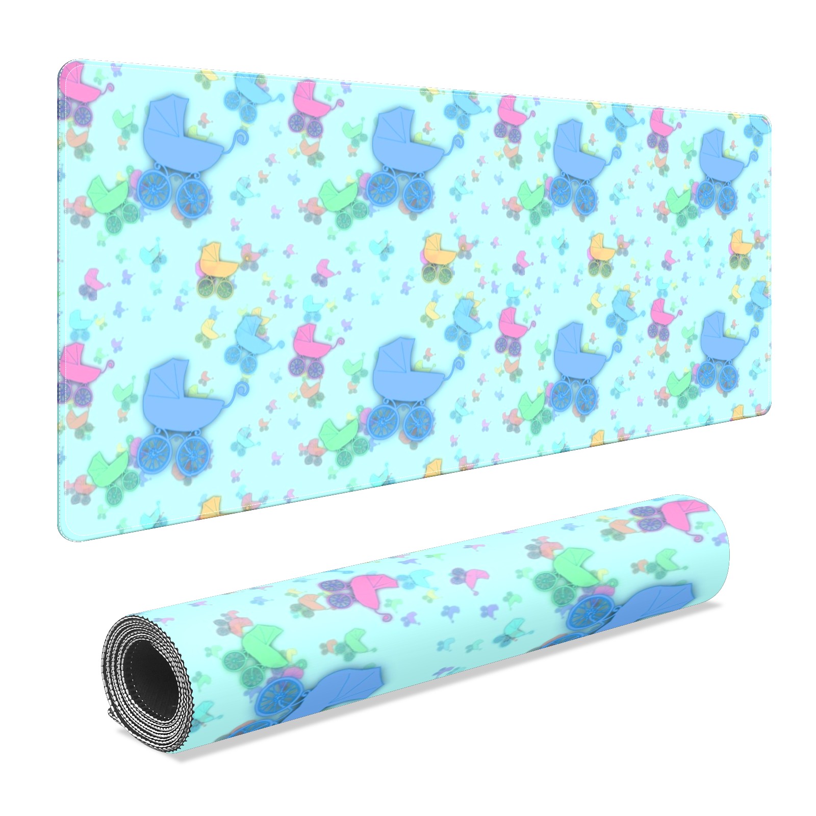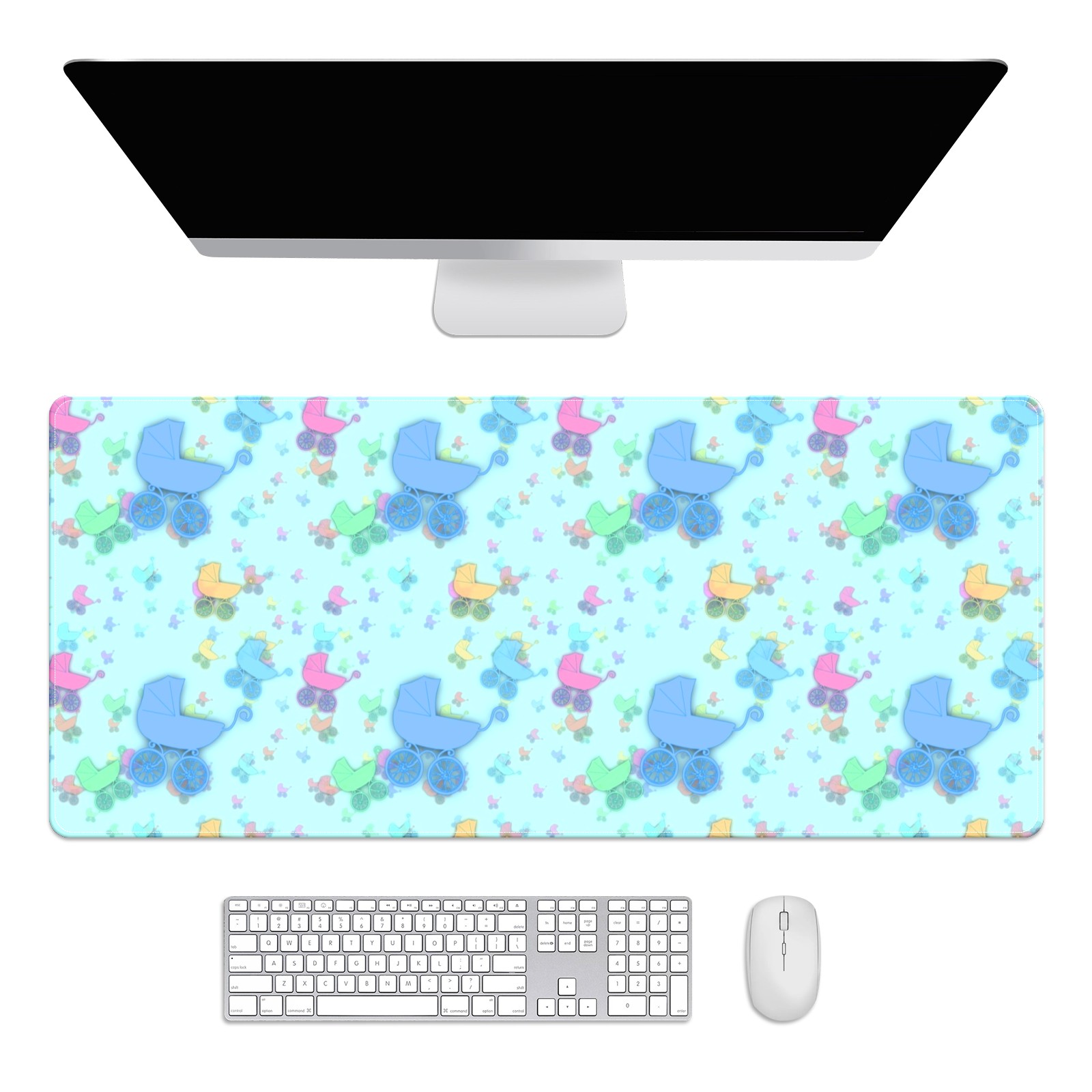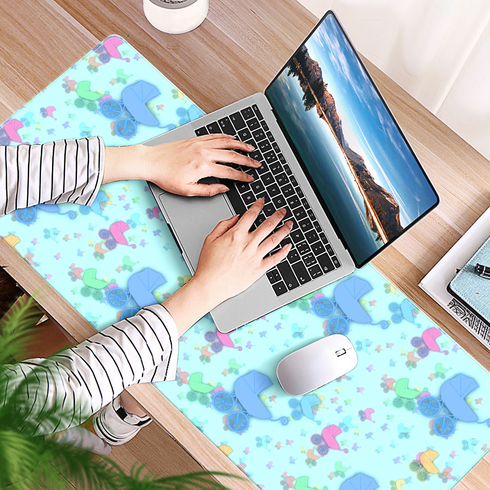 Large Mouse Pad for Desktop, Cute Desk Mat Pad Protector for Work & Gaming, Aesthetic Pretty Anti-Slip Laptop Blotter Cover for Office School Home Supplies, Stroller Seamless Blue , 35.4inx15.7in