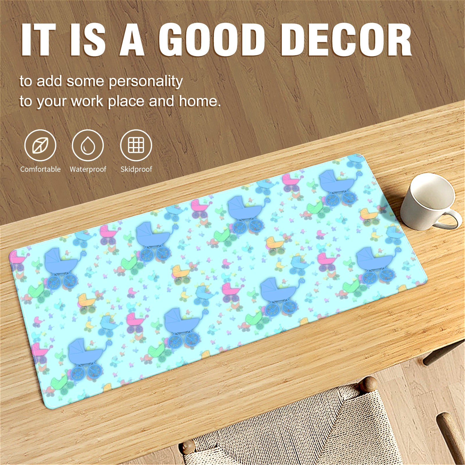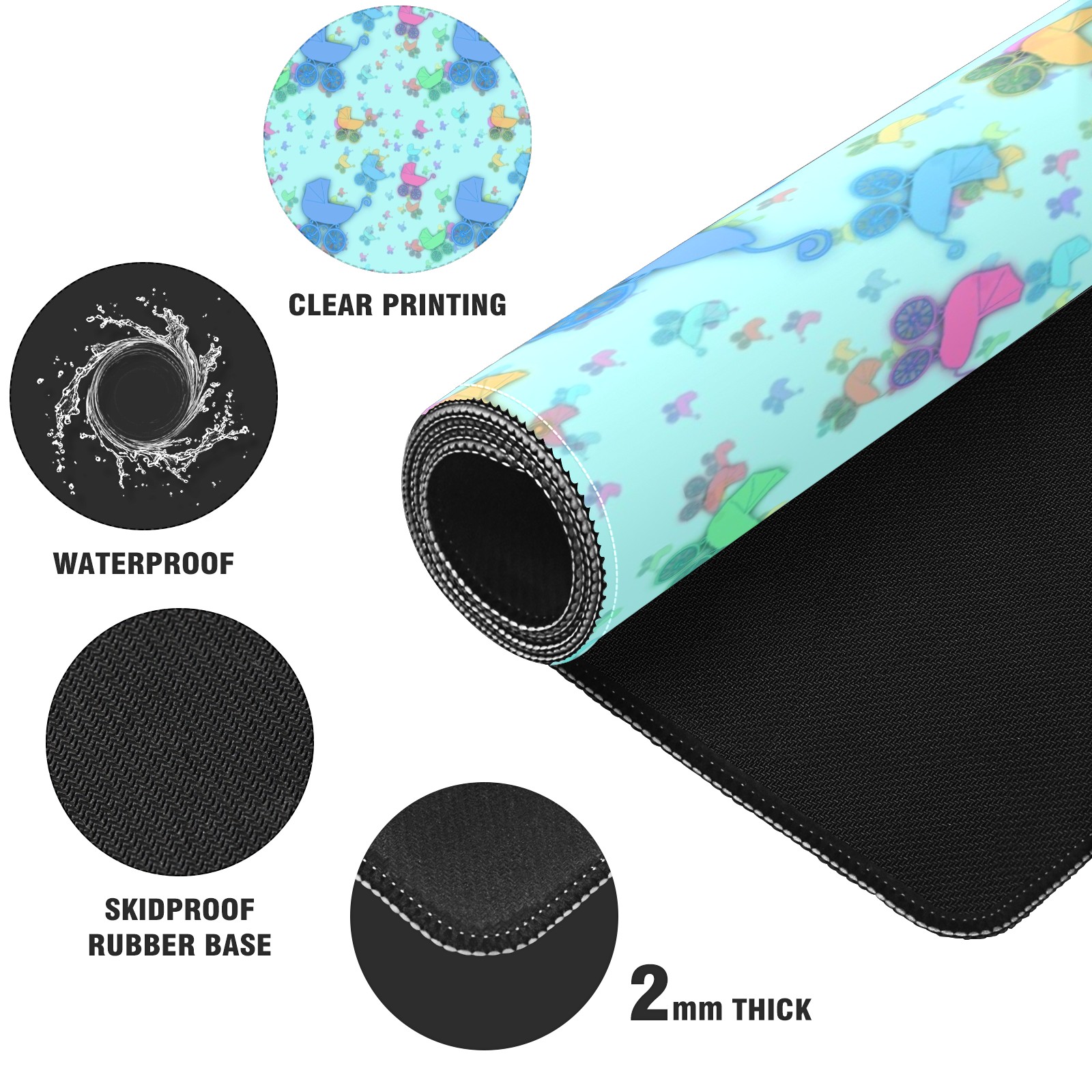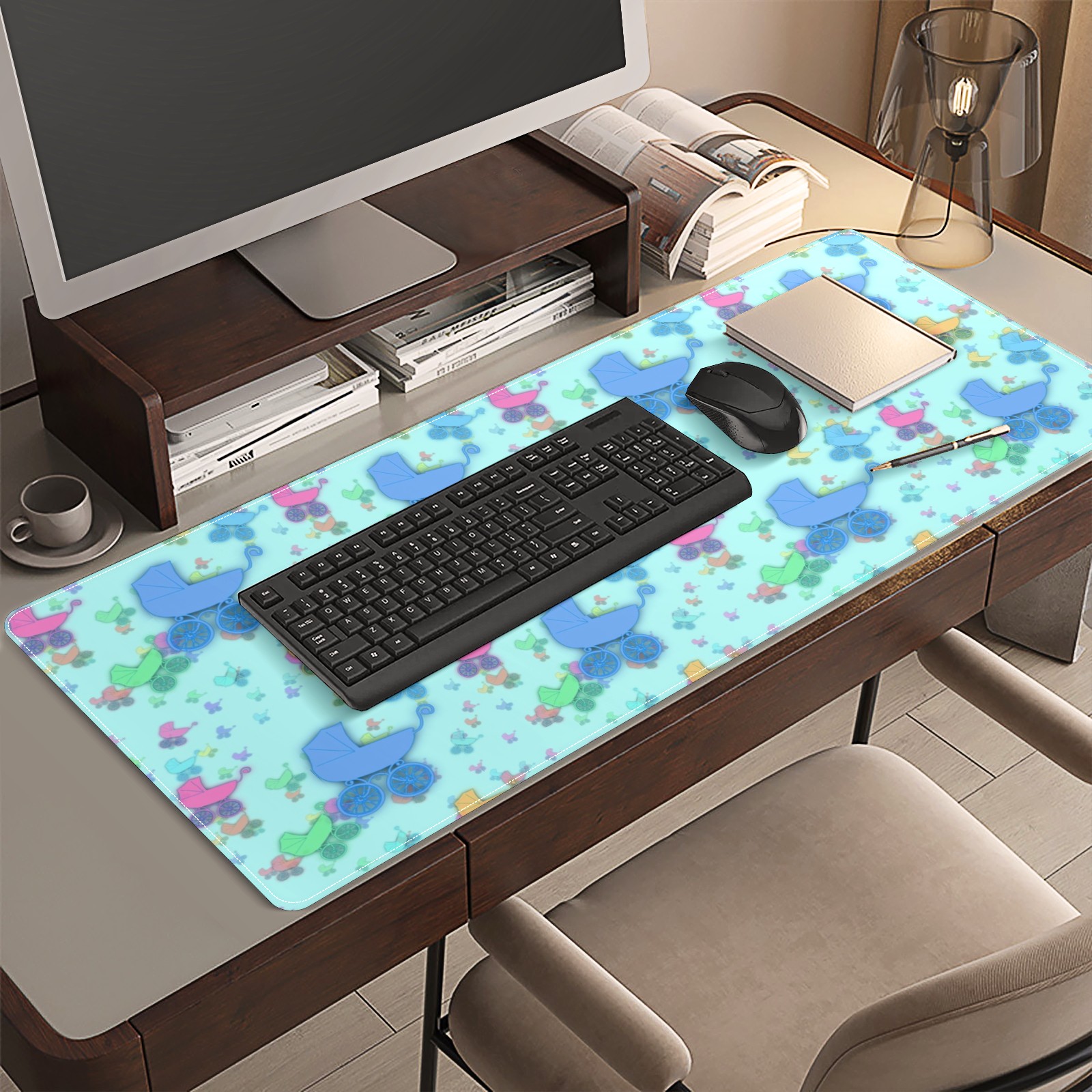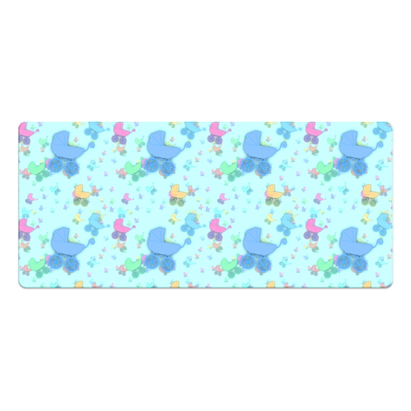 Large Mouse Pad for Desktop, Cute Desk Mat Pad Protector for Work & Gaming, Aesthetic Pretty Anti-Slip Laptop Blotter Cover for Office School Home Supplies, Stroller Seamless Blue , 35.4inx15.7in