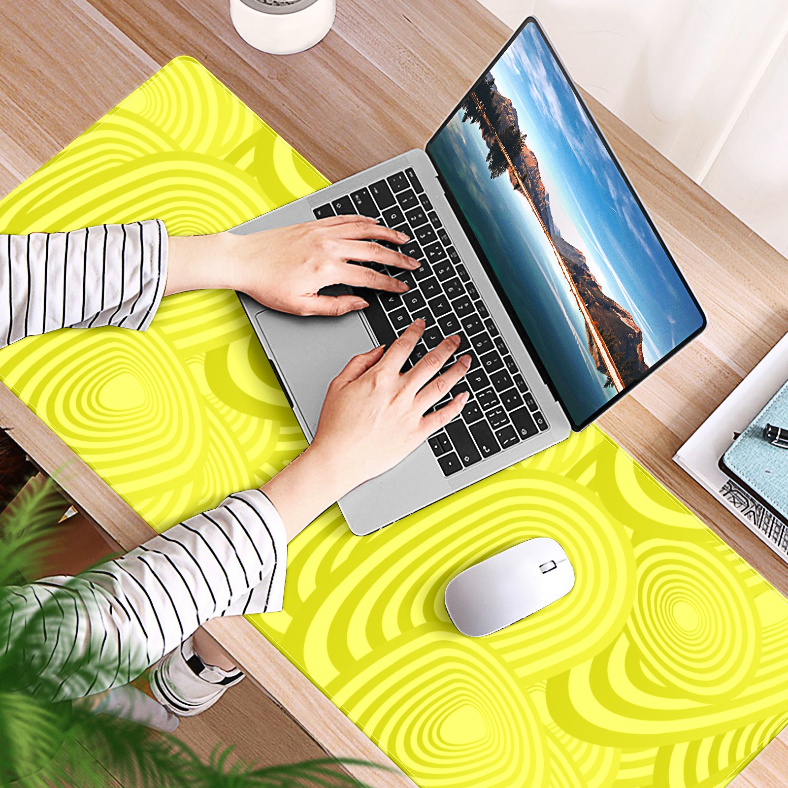 Large Mouse Pad for Desktop, Cute Desk Mat Pad Protector for Work & Gaming, Aesthetic Pretty Anti-Slip Laptop Blotter Cover for Office School Home Supplies, Oval Seamless Yellow , 35.4inx15.7in