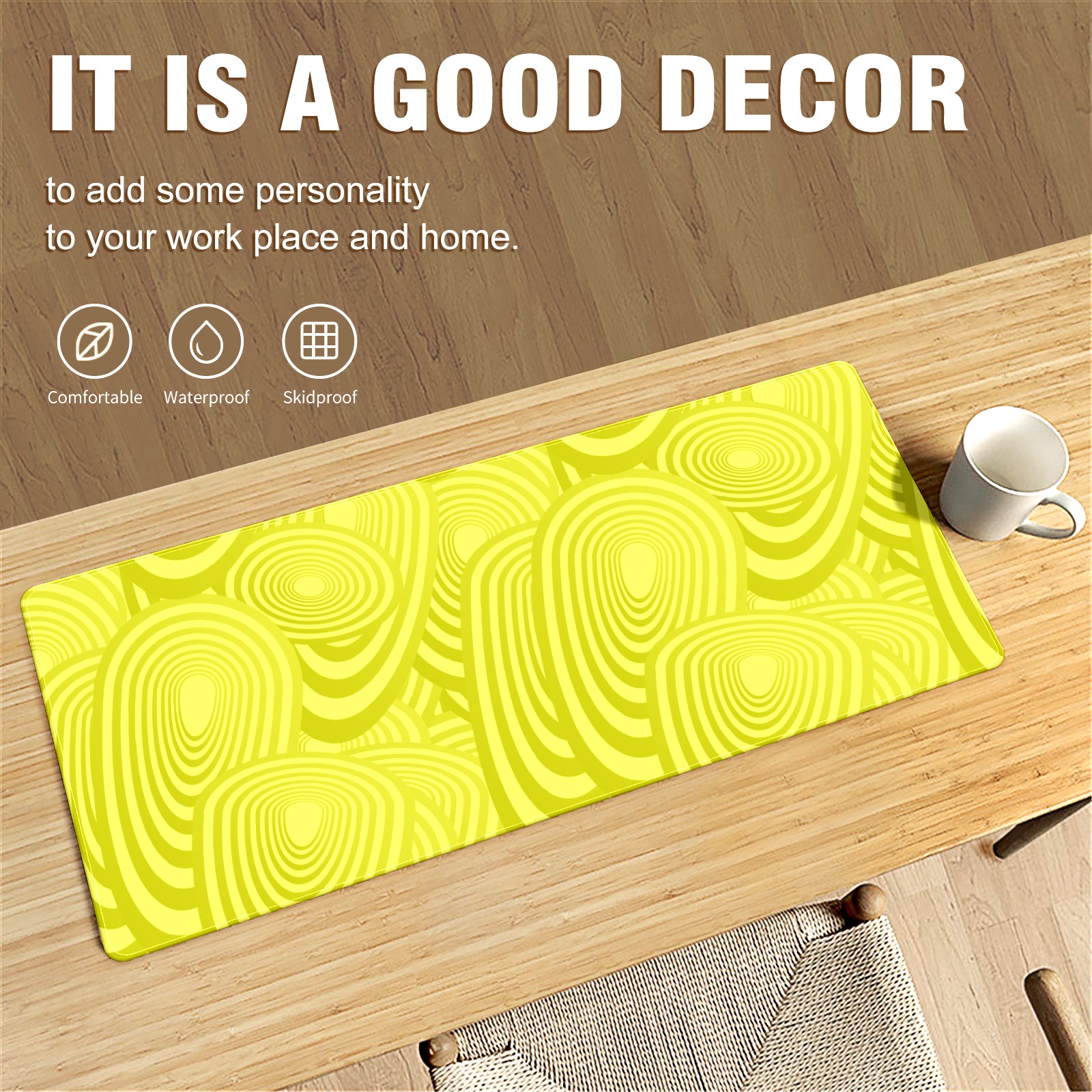 • <p>This 35.4” × 15.7” extended desk mat offers ample space for your keyboard, mouse and essentials, working as a smooth work/writing pad while protecting your desktop from scratches.</p><p>With stylish artistic patterns, it adds personality to your home office, study or gaming setup. The high-density woven surface ensures precise, smooth mouse tracking for work and gaming.</p><p>Featuring an anti-slip natural rubber base for firm grip and stability, the mat is soft, elastic and odorless. Reinforced stitched edges prevent fraying and curling for long-lasting durability.</p>