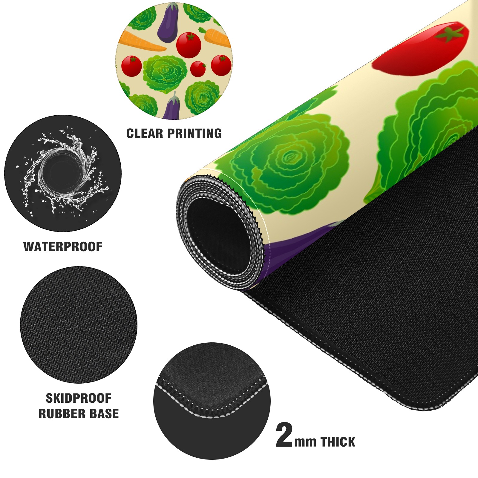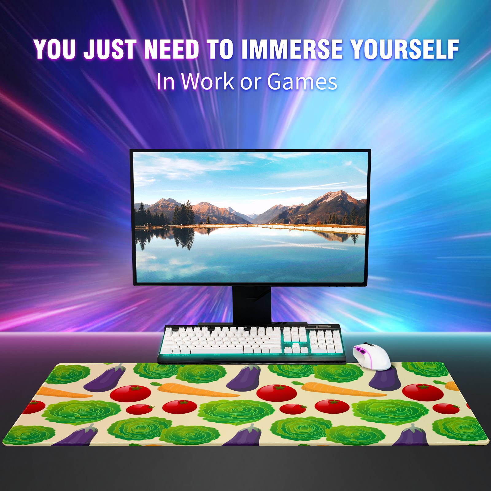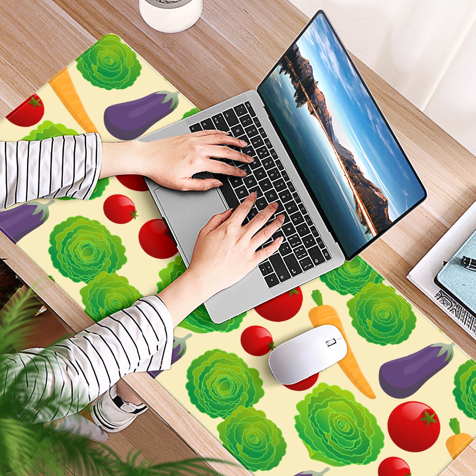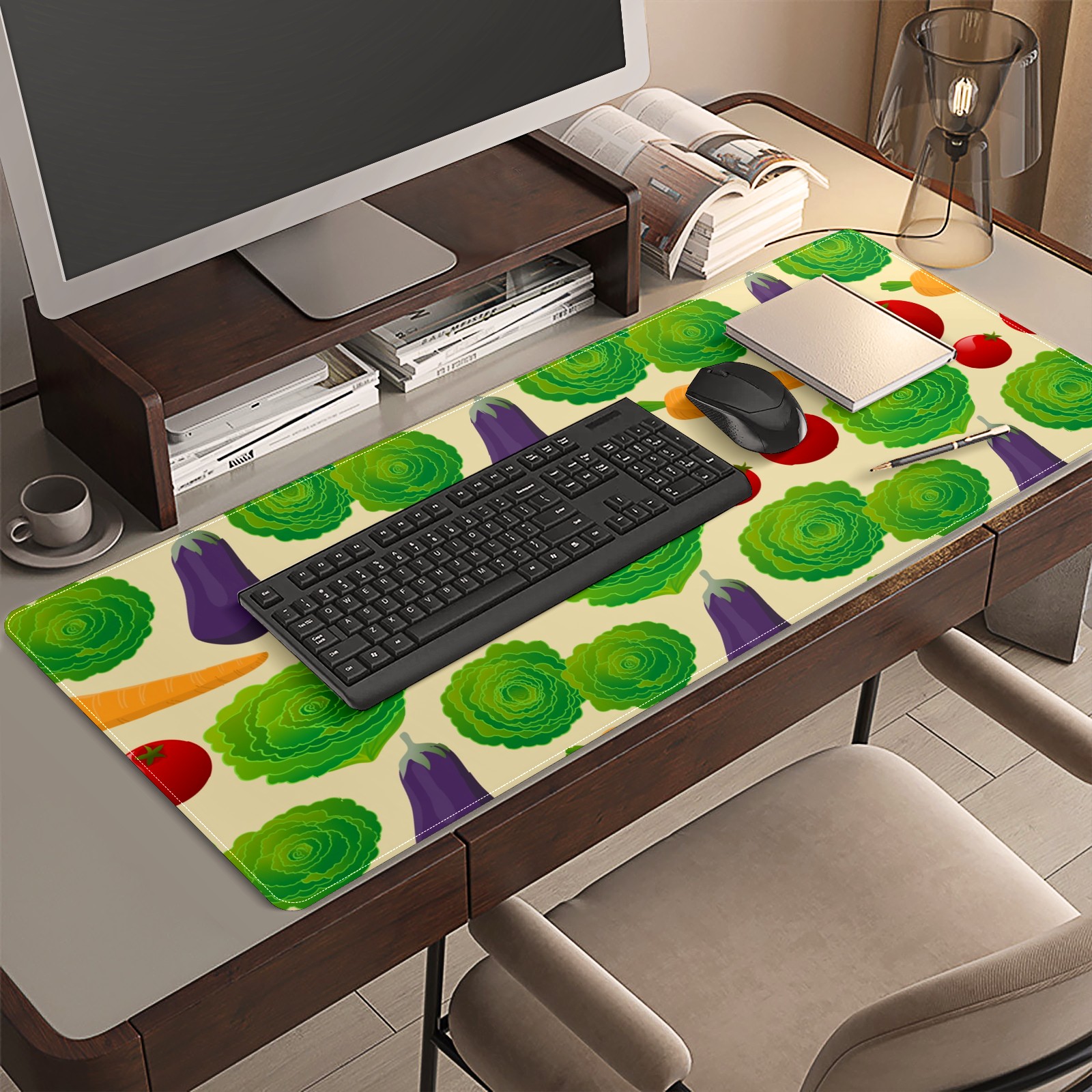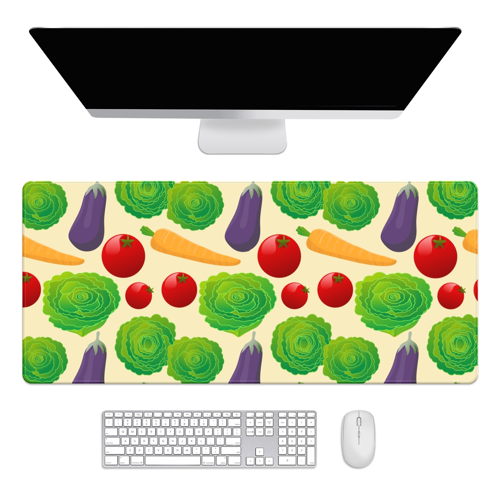 Large Mouse Pad for Desktop, Cute Desk Mat Pad Protector for Work & Gaming, Aesthetic Pretty Anti-Slip Laptop Blotter Cover for Office School Home Supplies, Vegetables Seamless Colorful , 35.4inx15.7in