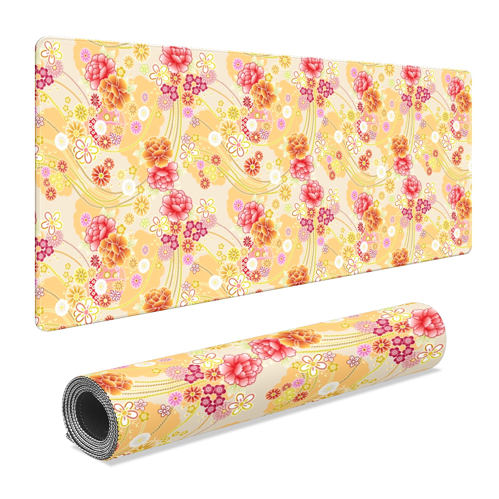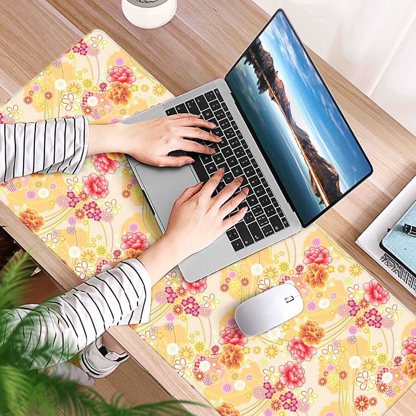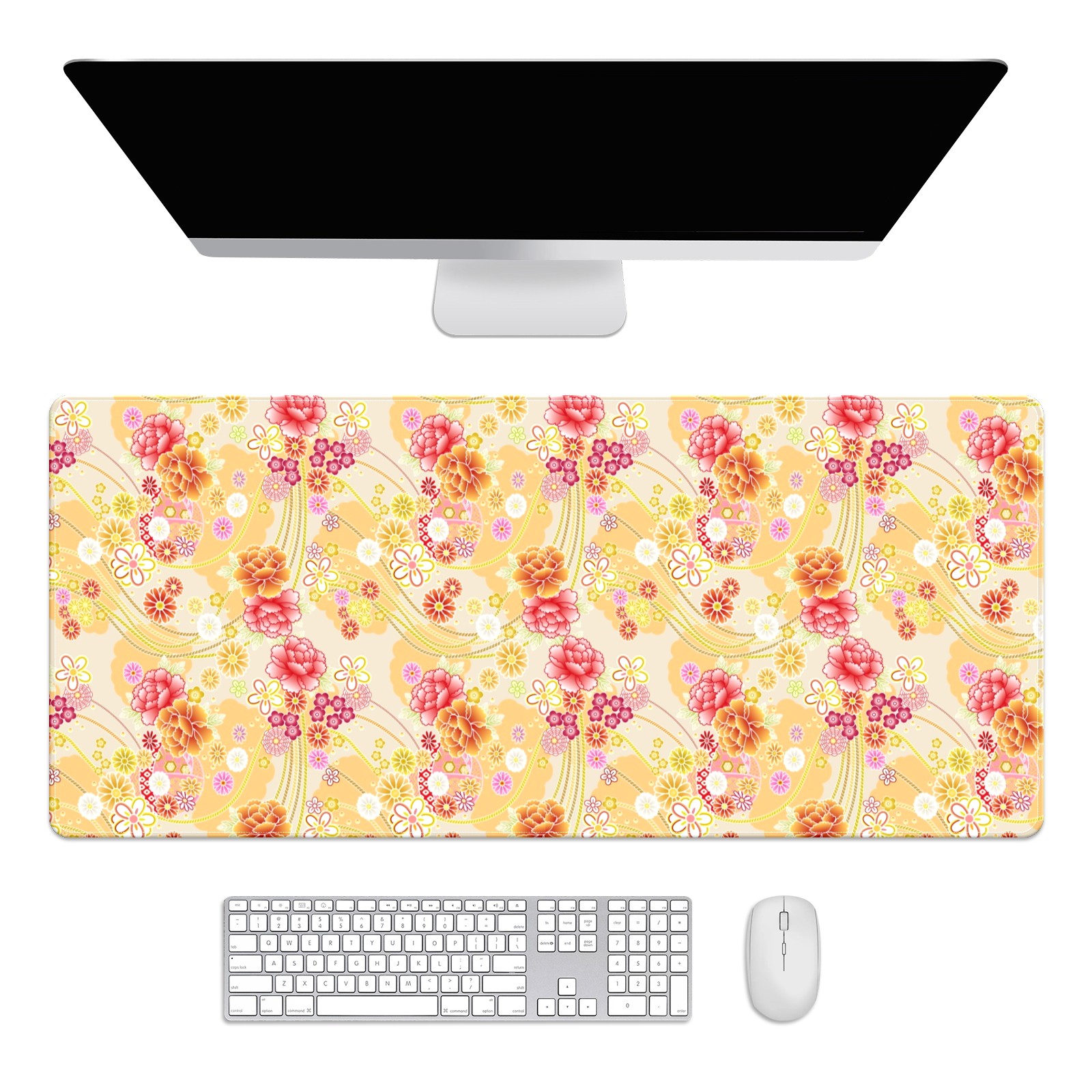 Large Mouse Pad for Desktop, Cute Desk Mat Pad Protector for Work & Gaming, Aesthetic Pretty Anti-Slip Laptop Blotter Cover for Office School Home Supplies, Flower Seamless Colorful , 35.4inx15.7in