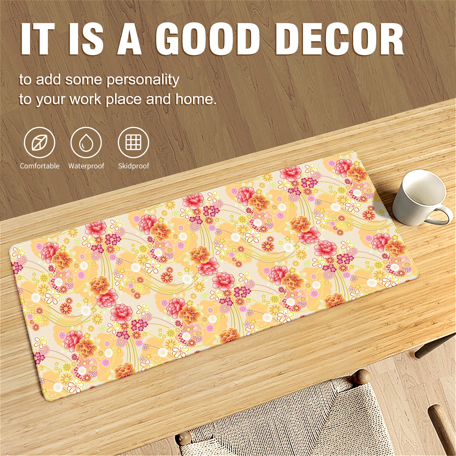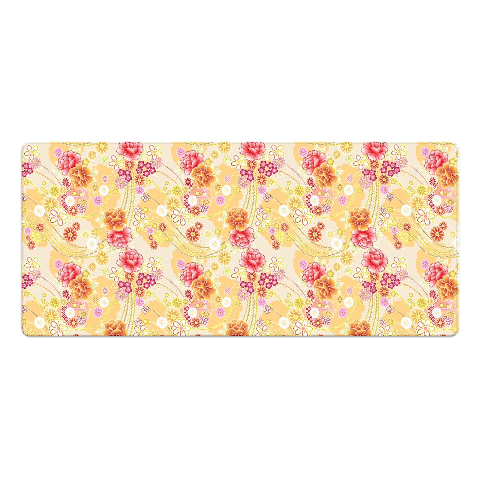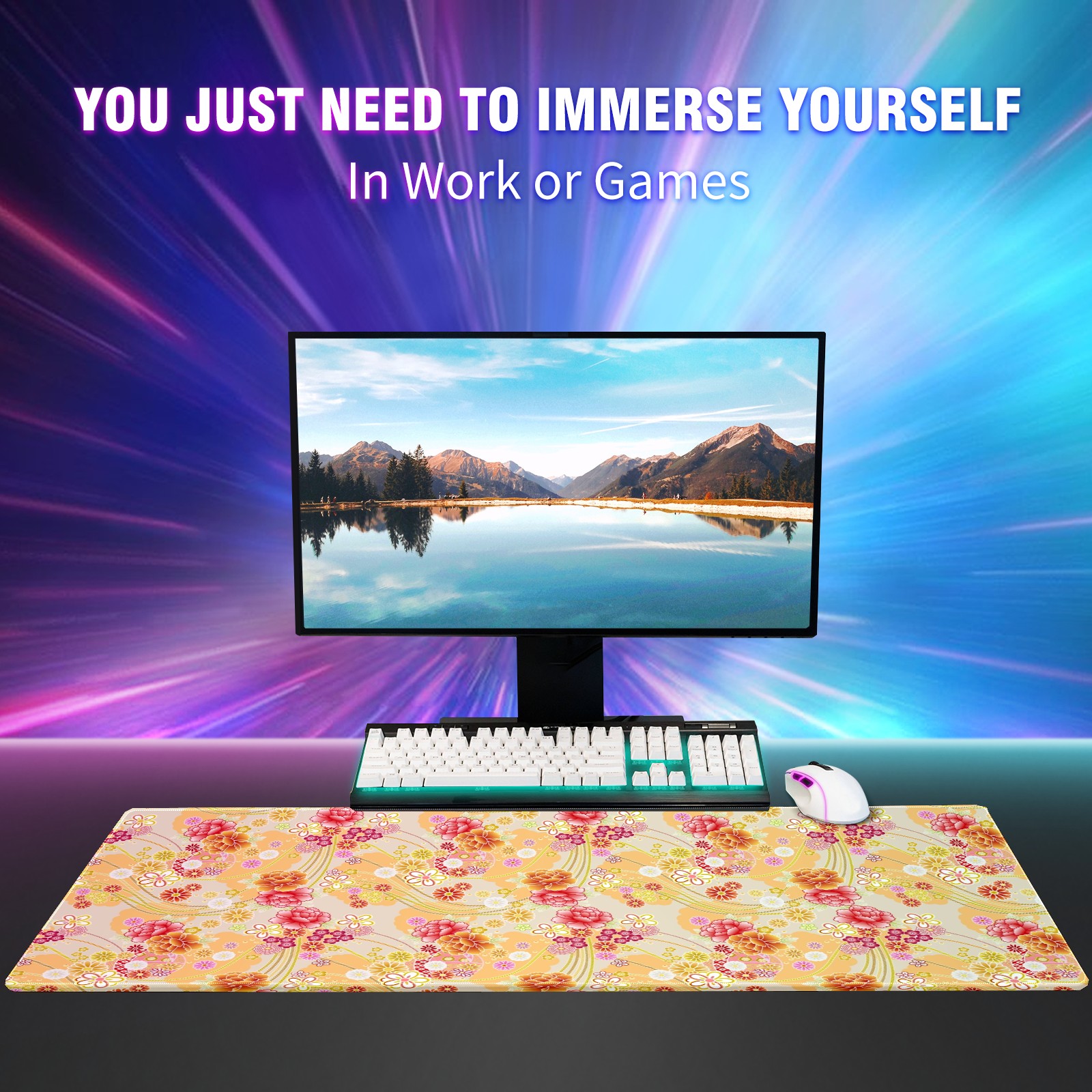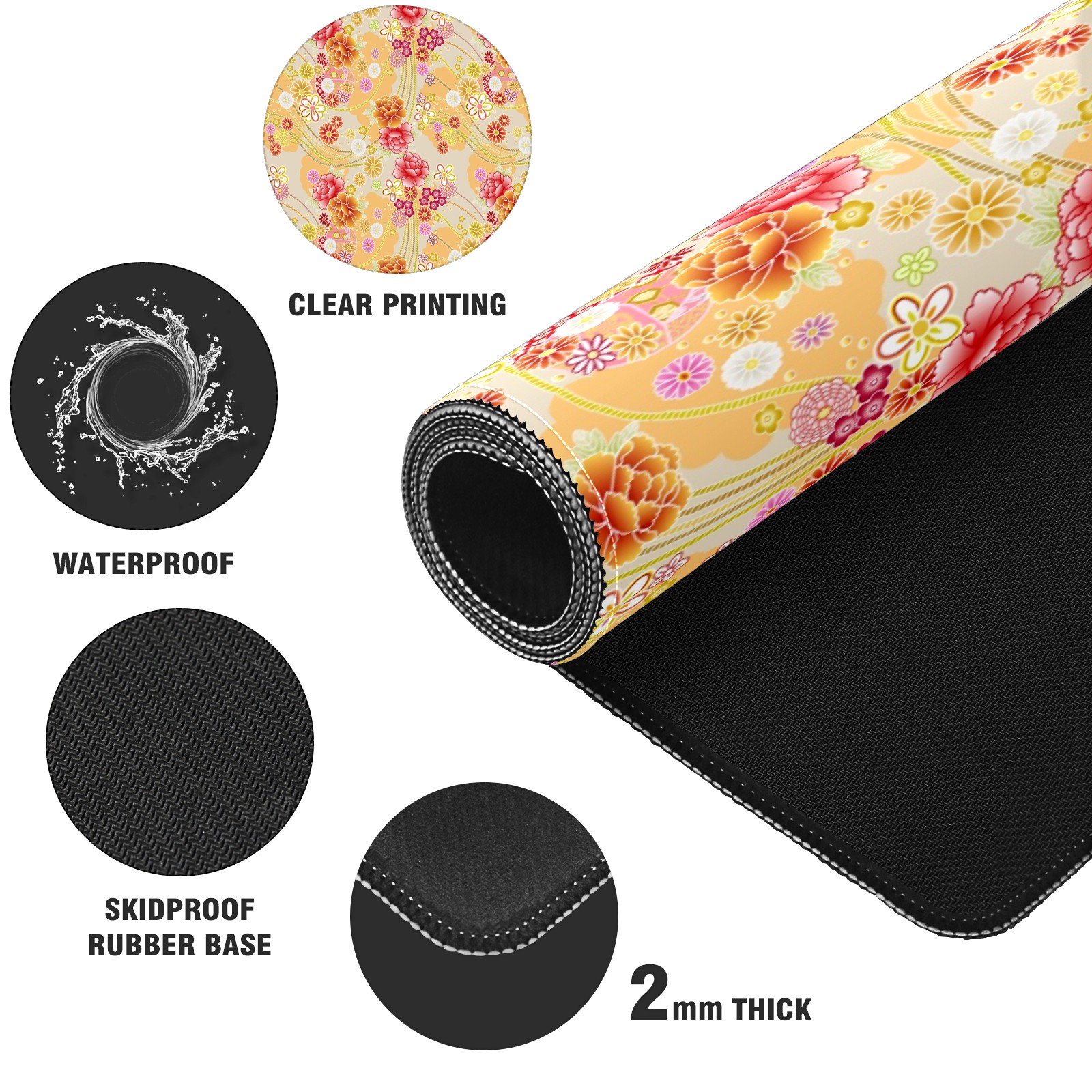 Large Mouse Pad for Desktop, Cute Desk Mat Pad Protector for Work & Gaming, Aesthetic Pretty Anti-Slip Laptop Blotter Cover for Office School Home Supplies, Flower Seamless Colorful , 35.4inx15.7in