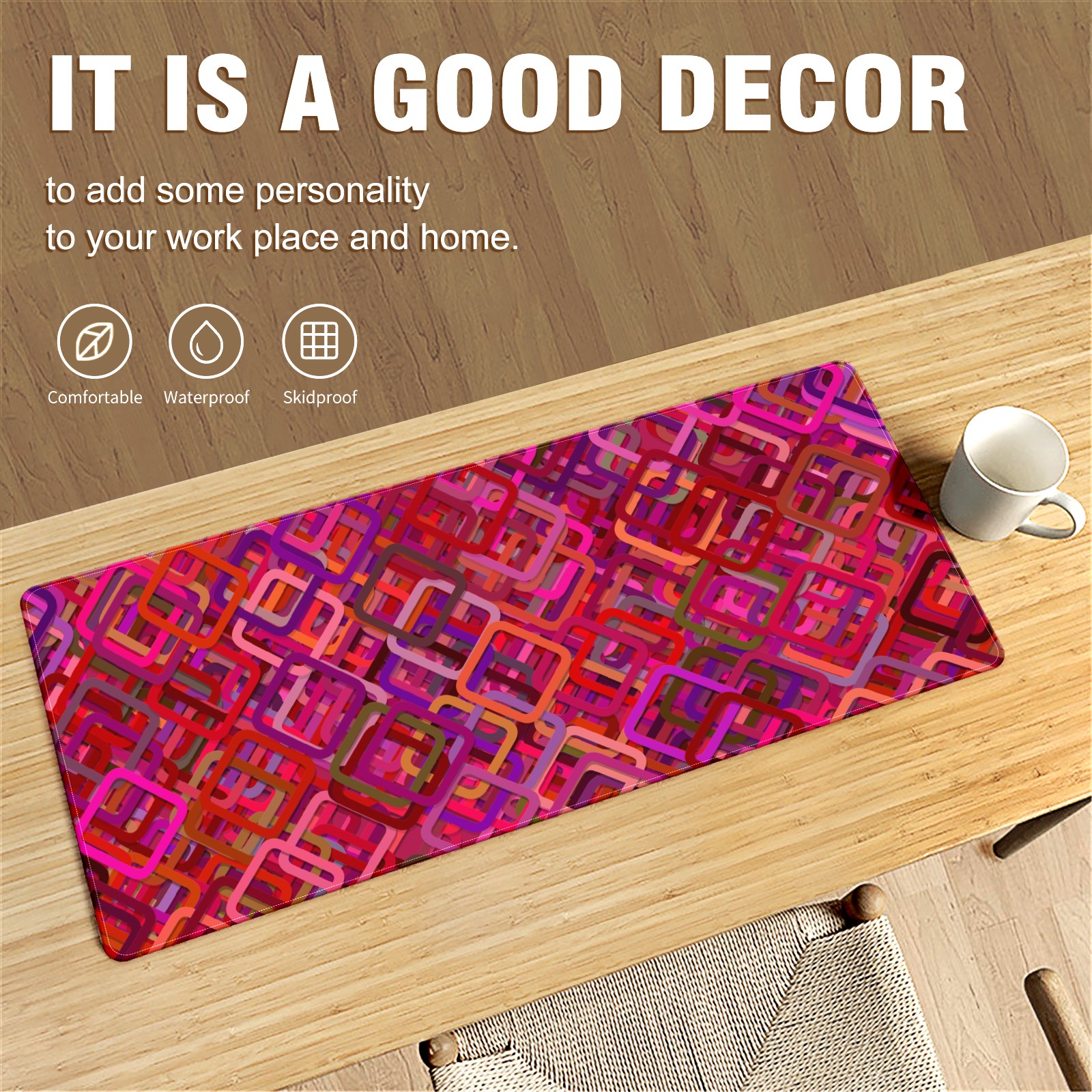• <p>This 35.4” × 15.7” extended desk mat offers ample space for your keyboard, mouse and essentials, working as a smooth work/writing pad while protecting your desktop from scratches.</p><p>With stylish artistic patterns, it adds personality to your home office, study or gaming setup. The high-density woven surface ensures precise, smooth mouse tracking for work and gaming.</p><p>Featuring an anti-slip natural rubber base for firm grip and stability, the mat is soft, elastic and odorless. Reinforced stitched edges prevent fraying and curling for long-lasting durability.</p>