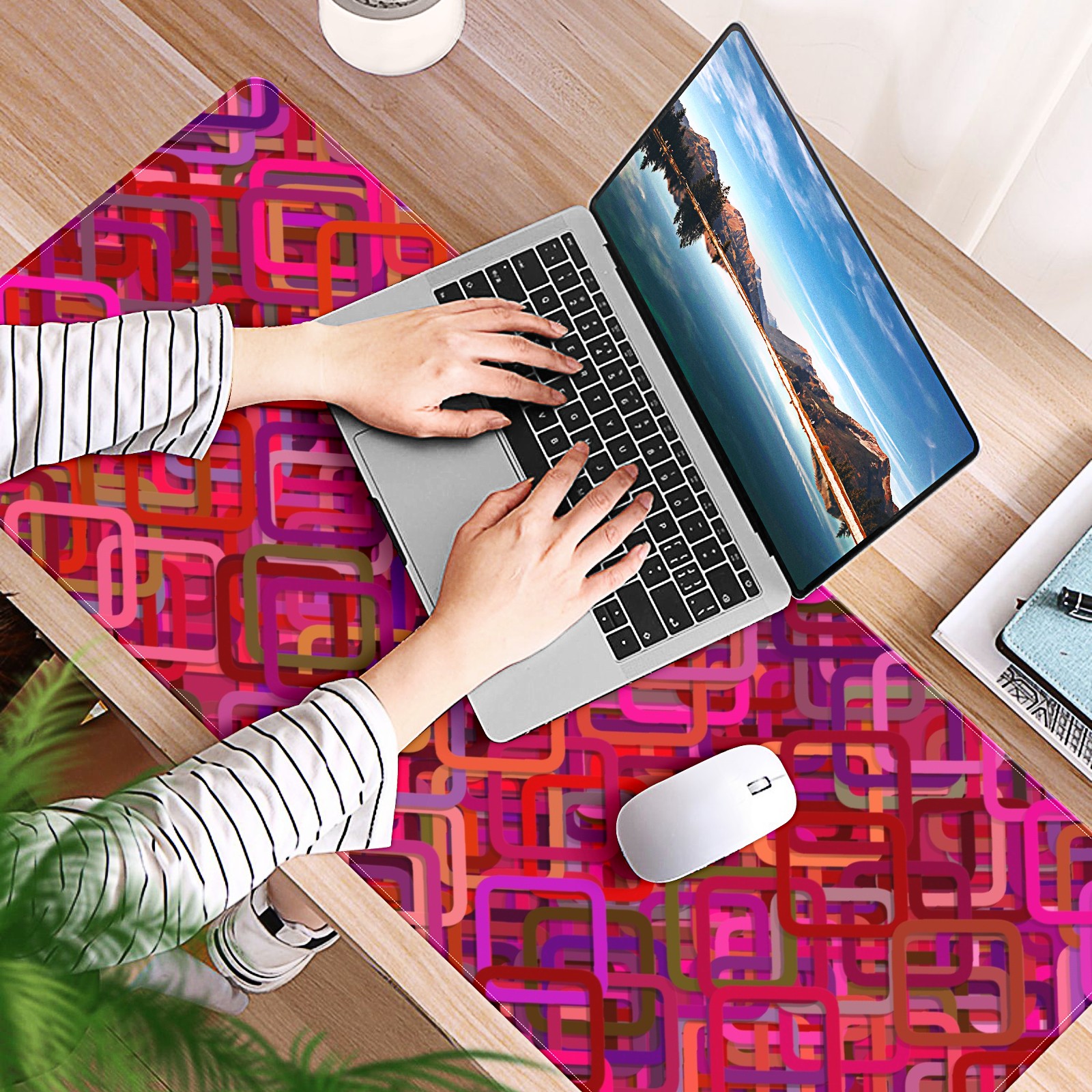 Large Mouse Pad for Desktop, Cute Desk Mat Pad Protector for Work & Gaming, Aesthetic Pretty Anti-Slip Laptop Blotter Cover for Office School Home Supplies, Square Seamless Colorful , 35.4inx15.7in