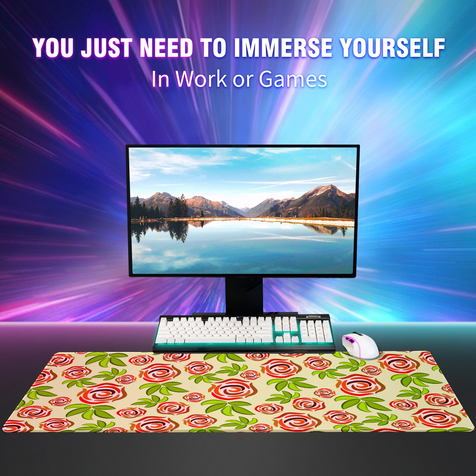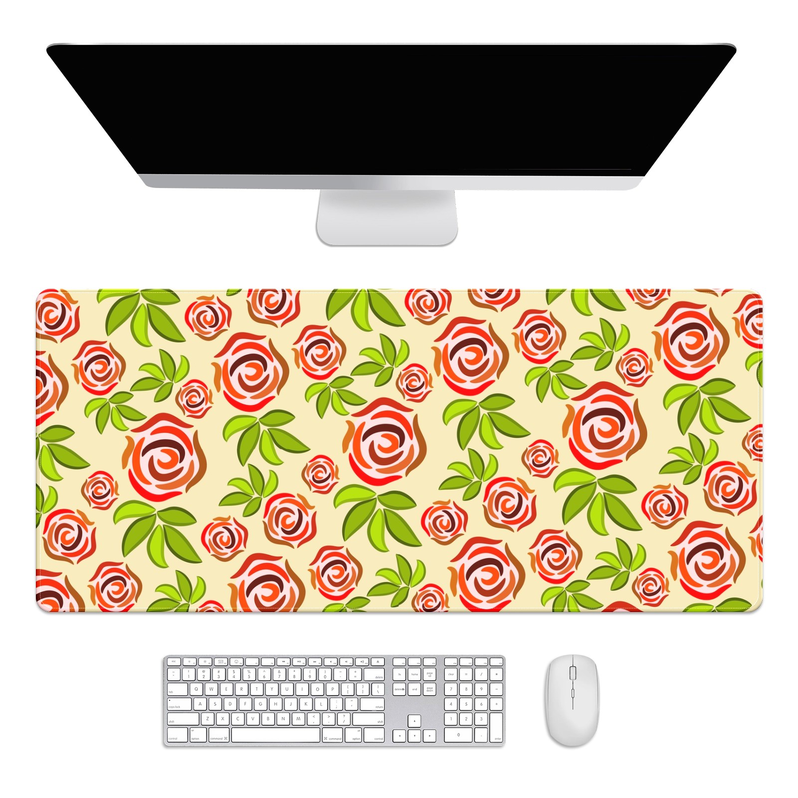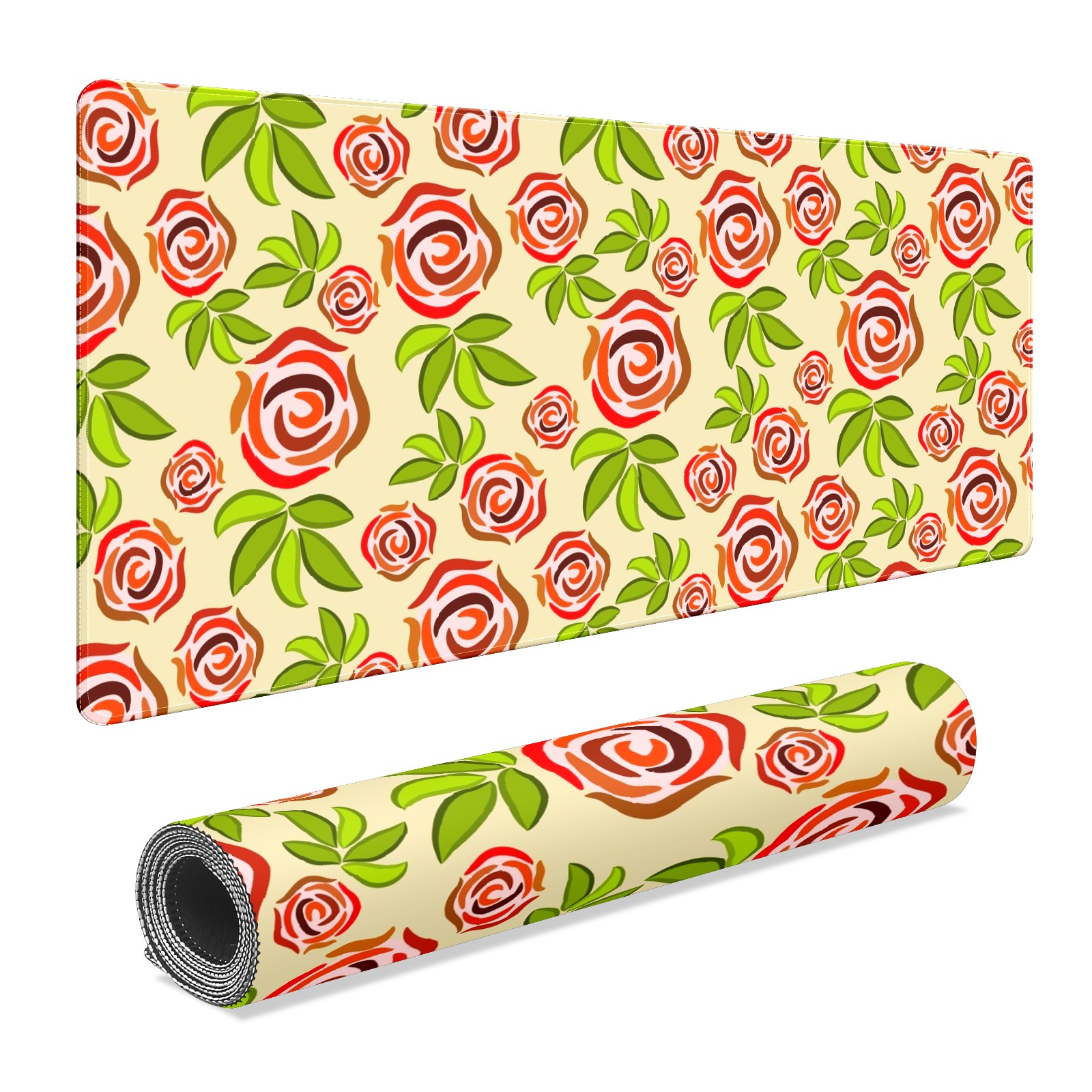 Large Mouse Pad for Desktop, Cute Desk Mat Pad Protector for Work & Gaming, Aesthetic Pretty Anti-Slip Laptop Blotter Cover for Office School Home Supplies, Rose Flower Seamless , 35.4inx15.7in