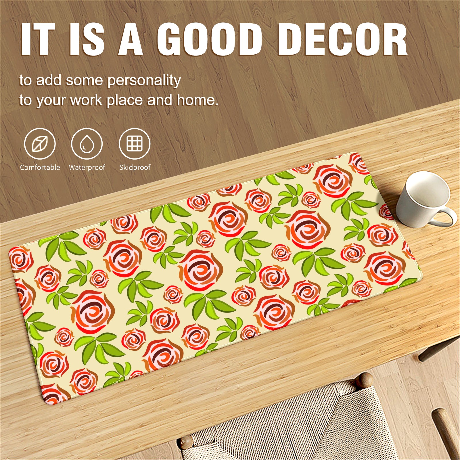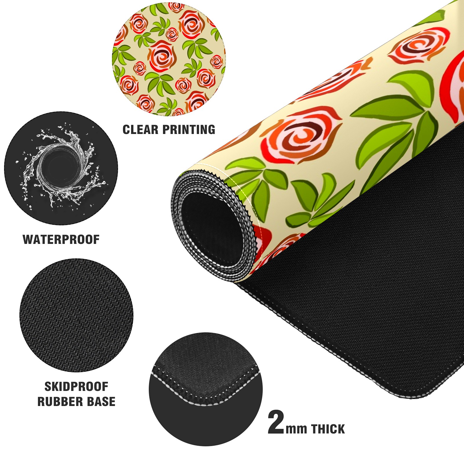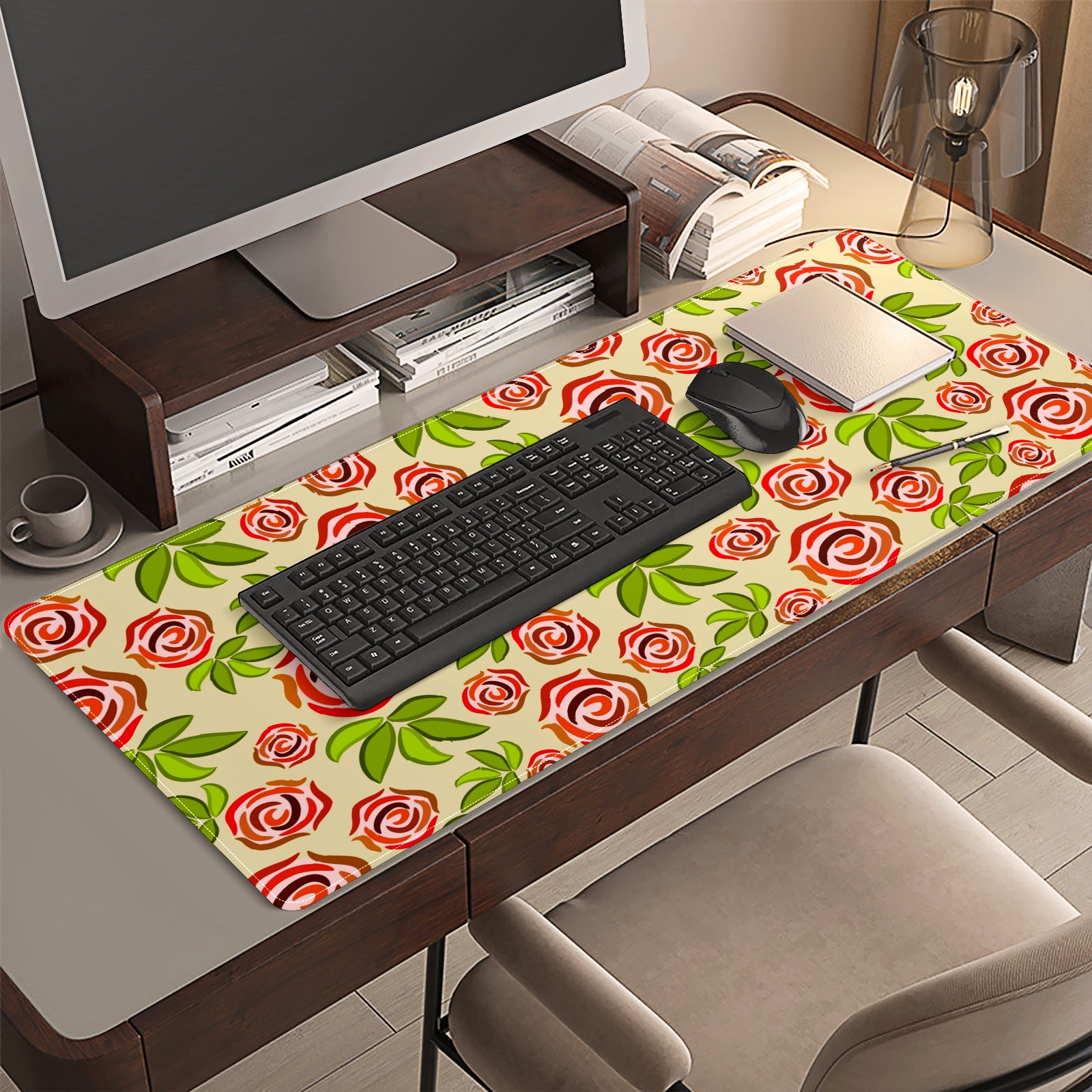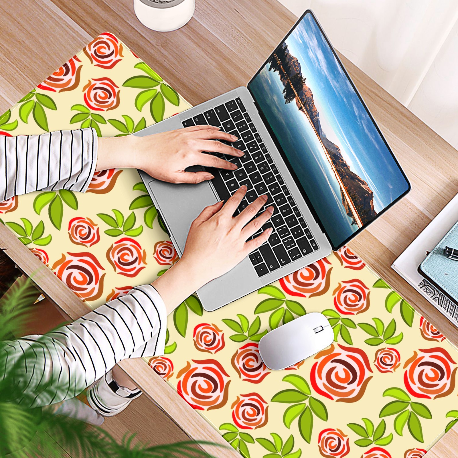 Large Mouse Pad for Desktop, Cute Desk Mat Pad Protector for Work & Gaming, Aesthetic Pretty Anti-Slip Laptop Blotter Cover for Office School Home Supplies, Rose Flower Seamless , 35.4inx15.7in