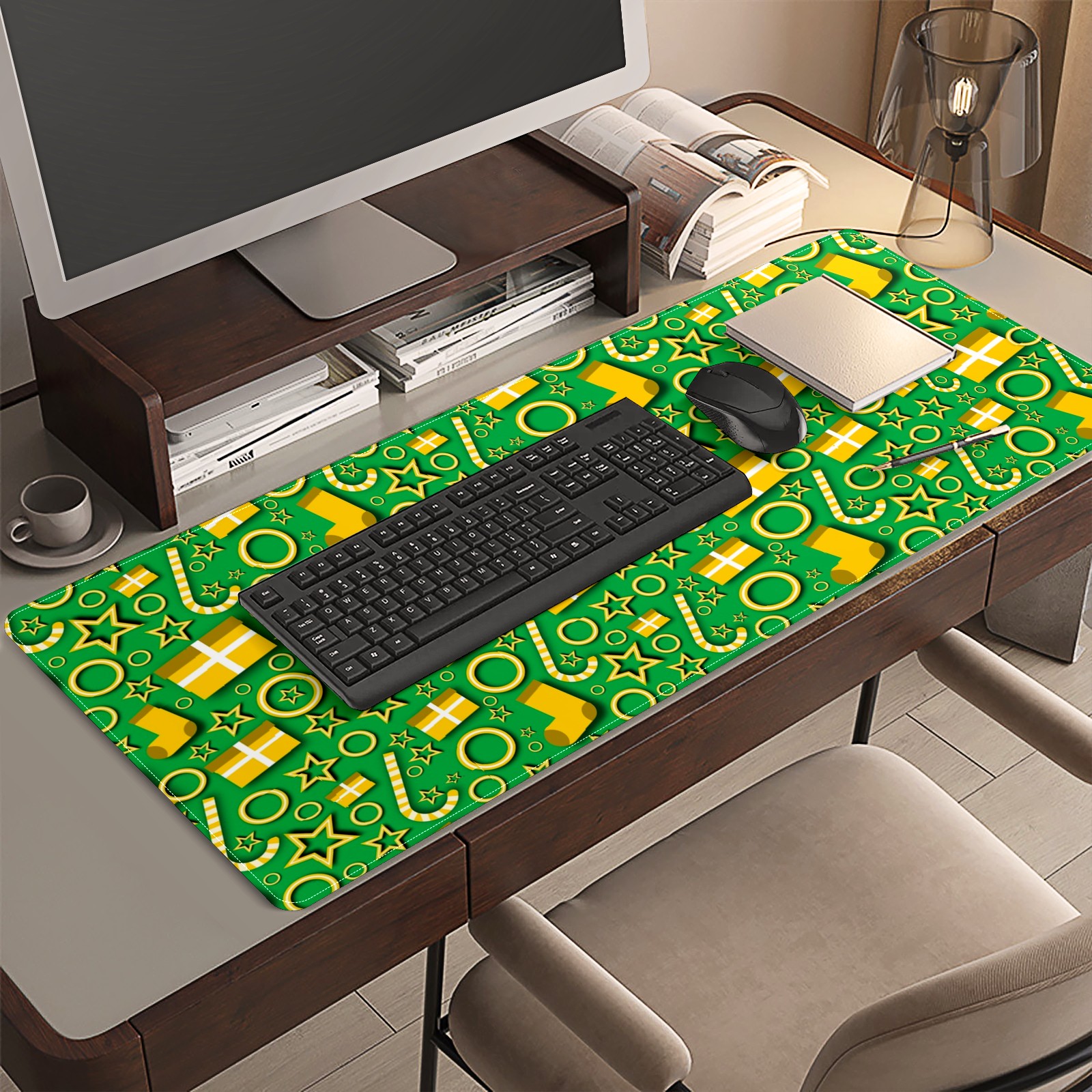<p>This 35.4” × 15.7” extended desk mat offers ample space for your keyboard, mouse and essentials, working as a smooth work/writing pad while protecting your desktop from scratches.</p><p>With stylish artistic patterns, it adds personality to your home office, study or gaming setup. The high-density woven surface ensures precise, smooth mouse tracking for work and gaming.</p><p>Featuring an anti-slip natural rubber base for firm grip and stability, the mat is soft, elastic and odorless. Reinforced stitched edges prevent fraying and curling for long-lasting durability.</p>