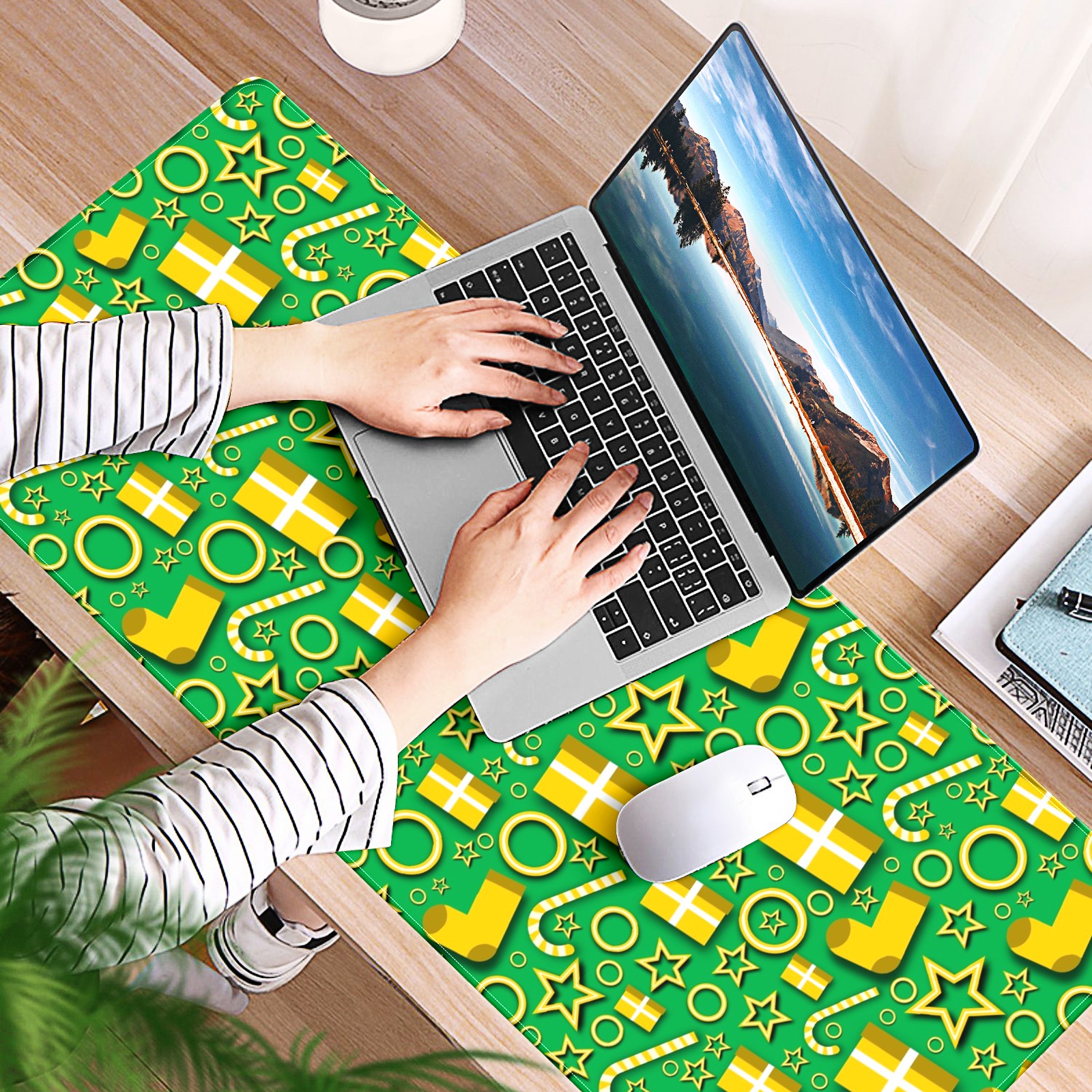 Large Mouse Pad for Desktop, Cute Desk Mat Pad Protector for Work & Gaming, Aesthetic Pretty Anti-Slip Laptop Blotter Cover for Office School Home Supplies, Christmas Style Seamless , 35.4inx15.7in