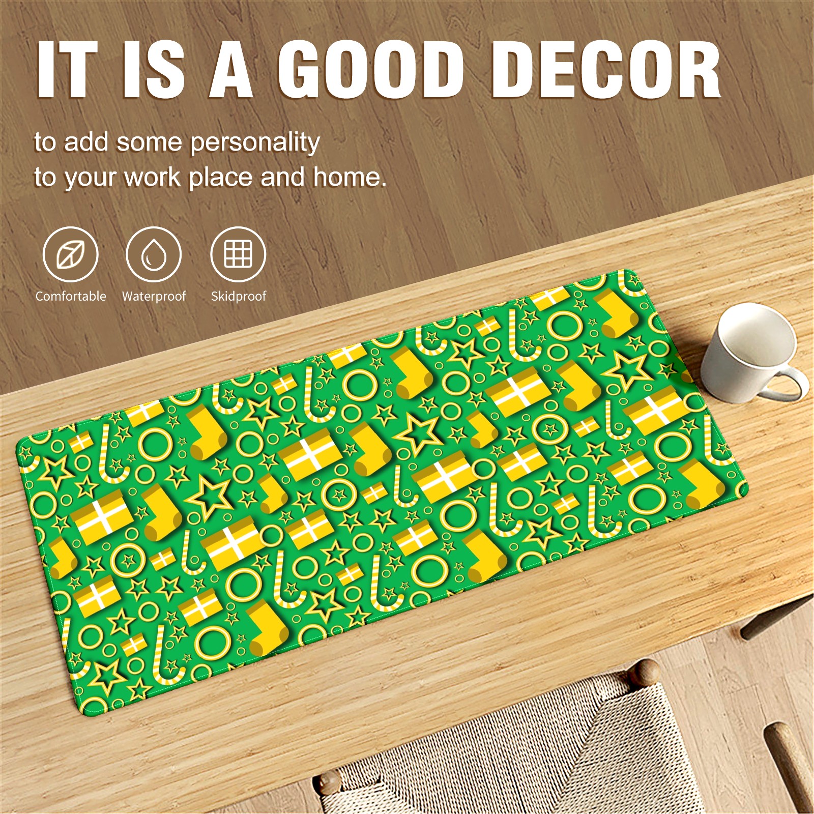 • <p>This 35.4” × 15.7” extended desk mat offers ample space for your keyboard, mouse and essentials, working as a smooth work/writing pad while protecting your desktop from scratches.</p><p>With stylish artistic patterns, it adds personality to your home office, study or gaming setup. The high-density woven surface ensures precise, smooth mouse tracking for work and gaming.</p><p>Featuring an anti-slip natural rubber base for firm grip and stability, the mat is soft, elastic and odorless. Reinforced stitched edges prevent fraying and curling for long-lasting durability.</p>