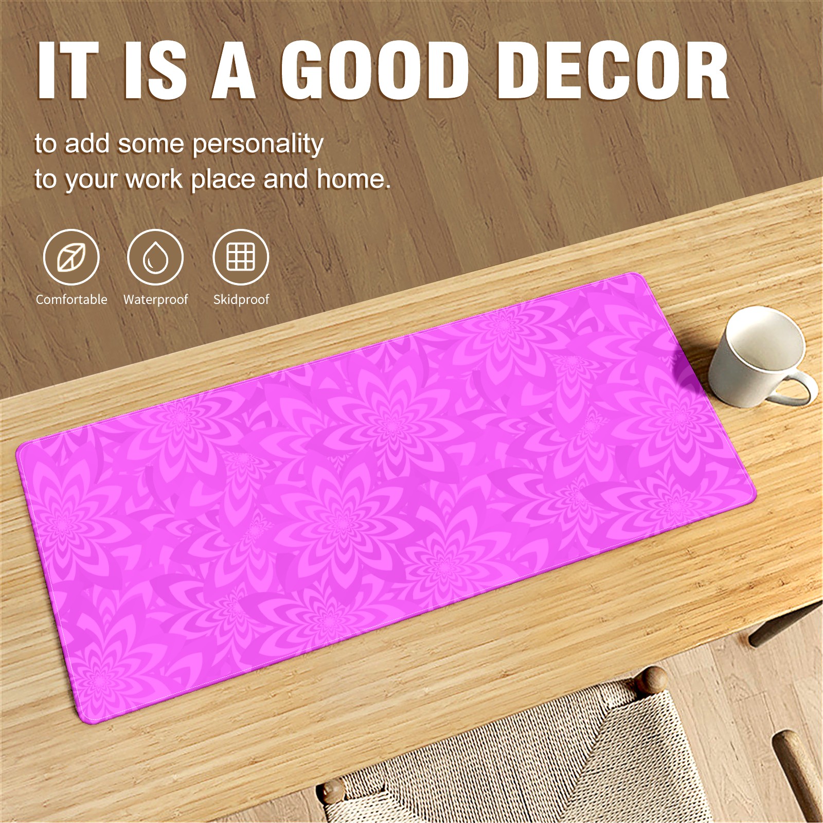 • <p>This 35.4” × 15.7” extended desk mat offers ample space for your keyboard, mouse and essentials, working as a smooth work/writing pad while protecting your desktop from scratches.</p><p>With stylish artistic patterns, it adds personality to your home office, study or gaming setup. The high-density woven surface ensures precise, smooth mouse tracking for work and gaming.</p><p>Featuring an anti-slip natural rubber base for firm grip and stability, the mat is soft, elastic and odorless. Reinforced stitched edges prevent fraying and curling for long-lasting durability.</p>