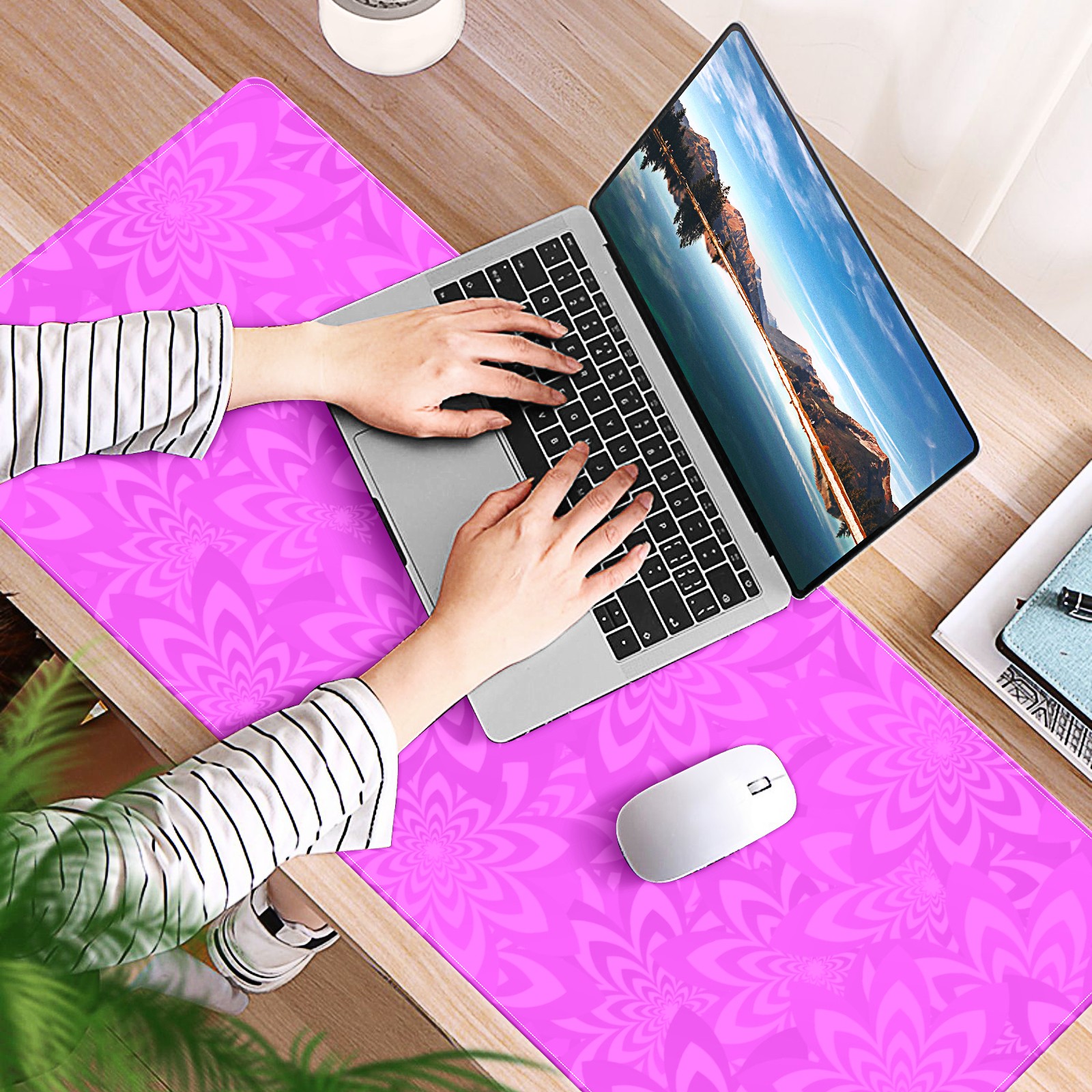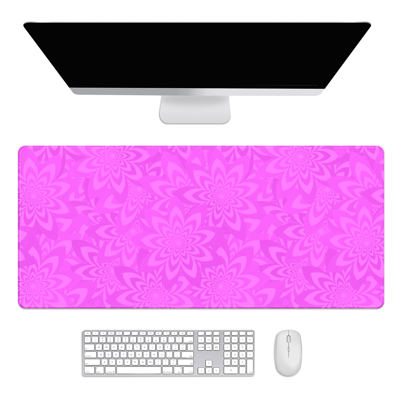 Large Mouse Pad for Desktop, Cute Desk Mat Pad Protector for Work & Gaming, Aesthetic Pretty Anti-Slip Laptop Blotter Cover for Office School Home Supplies, Flower Seamless Pink , 35.4inx15.7in