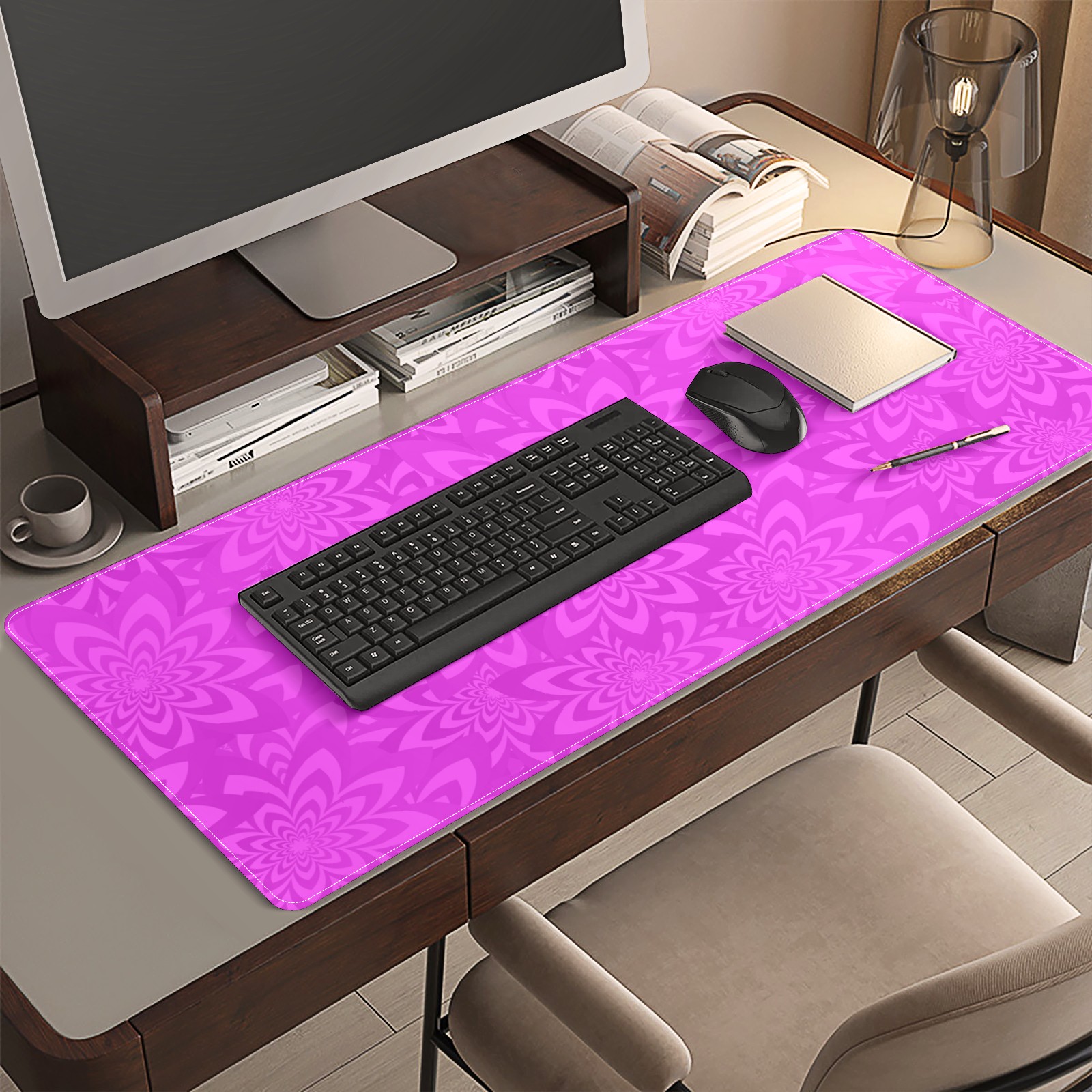 <p>This 35.4” × 15.7” extended desk mat offers ample space for your keyboard, mouse and essentials, working as a smooth work/writing pad while protecting your desktop from scratches.</p><p>With stylish artistic patterns, it adds personality to your home office, study or gaming setup. The high-density woven surface ensures precise, smooth mouse tracking for work and gaming.</p><p>Featuring an anti-slip natural rubber base for firm grip and stability, the mat is soft, elastic and odorless. Reinforced stitched edges prevent fraying and curling for long-lasting durability.</p>