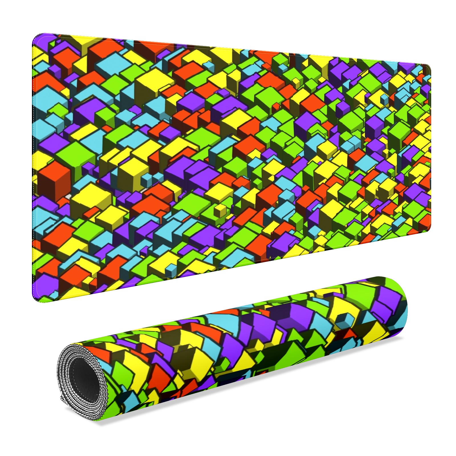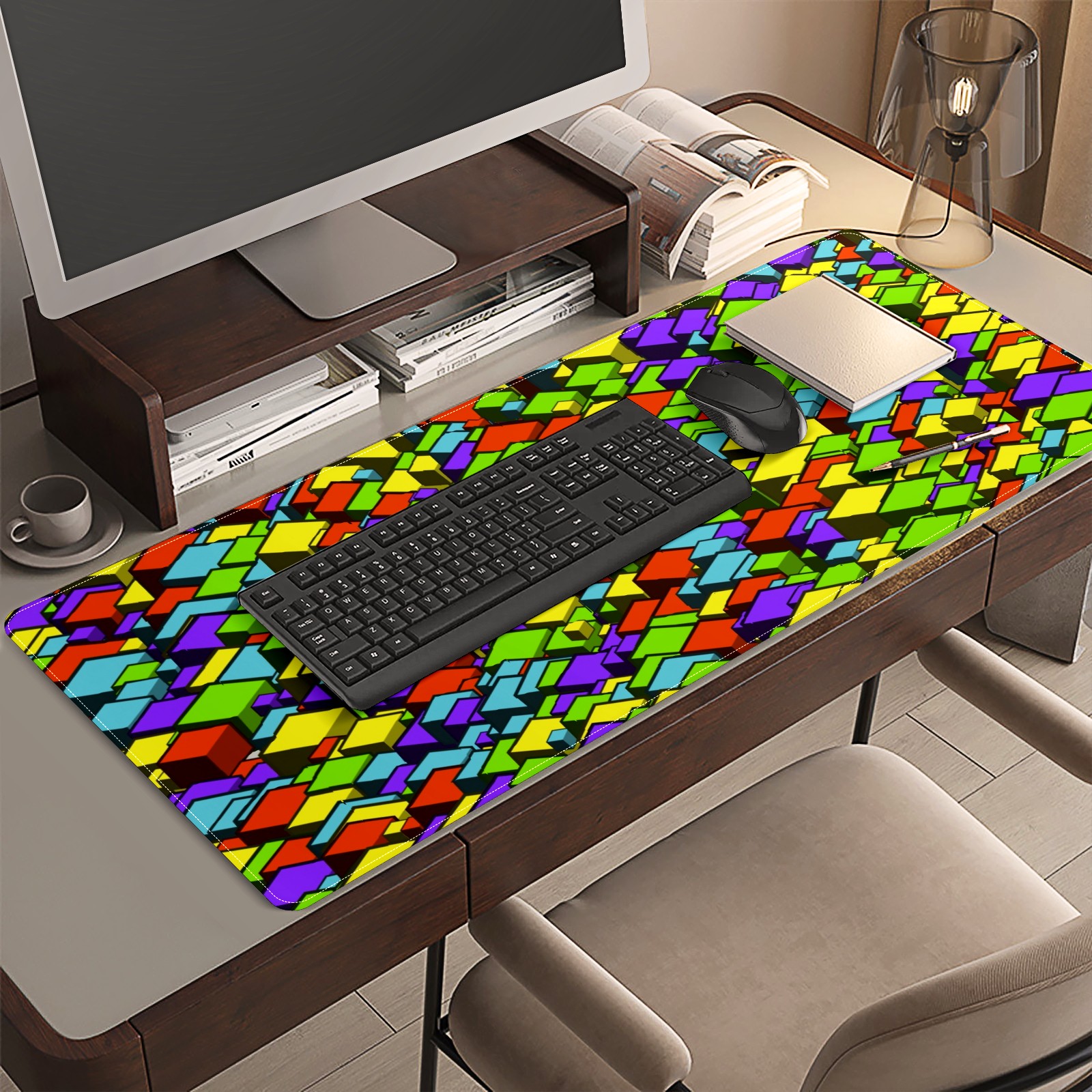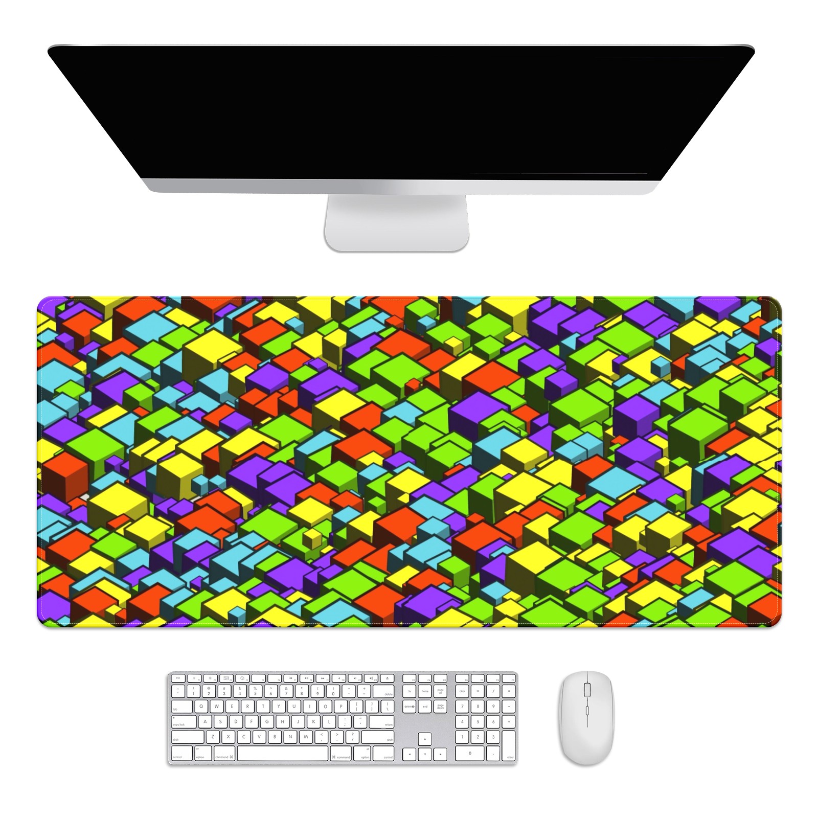 Large Mouse Pad for Desktop, Cute Desk Mat Pad Protector for Work & Gaming, Aesthetic Pretty Anti-Slip Laptop Blotter Cover for Office School Home Supplies, Cube Seamless Colorful , 35.4inx15.7in