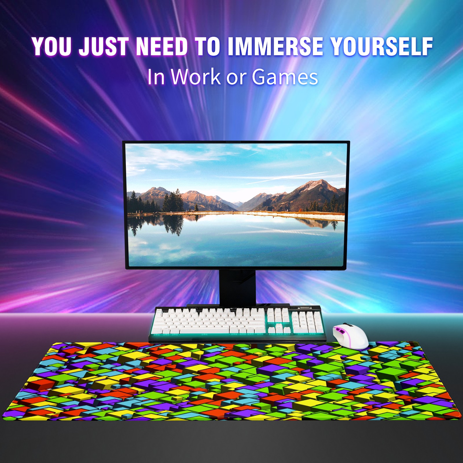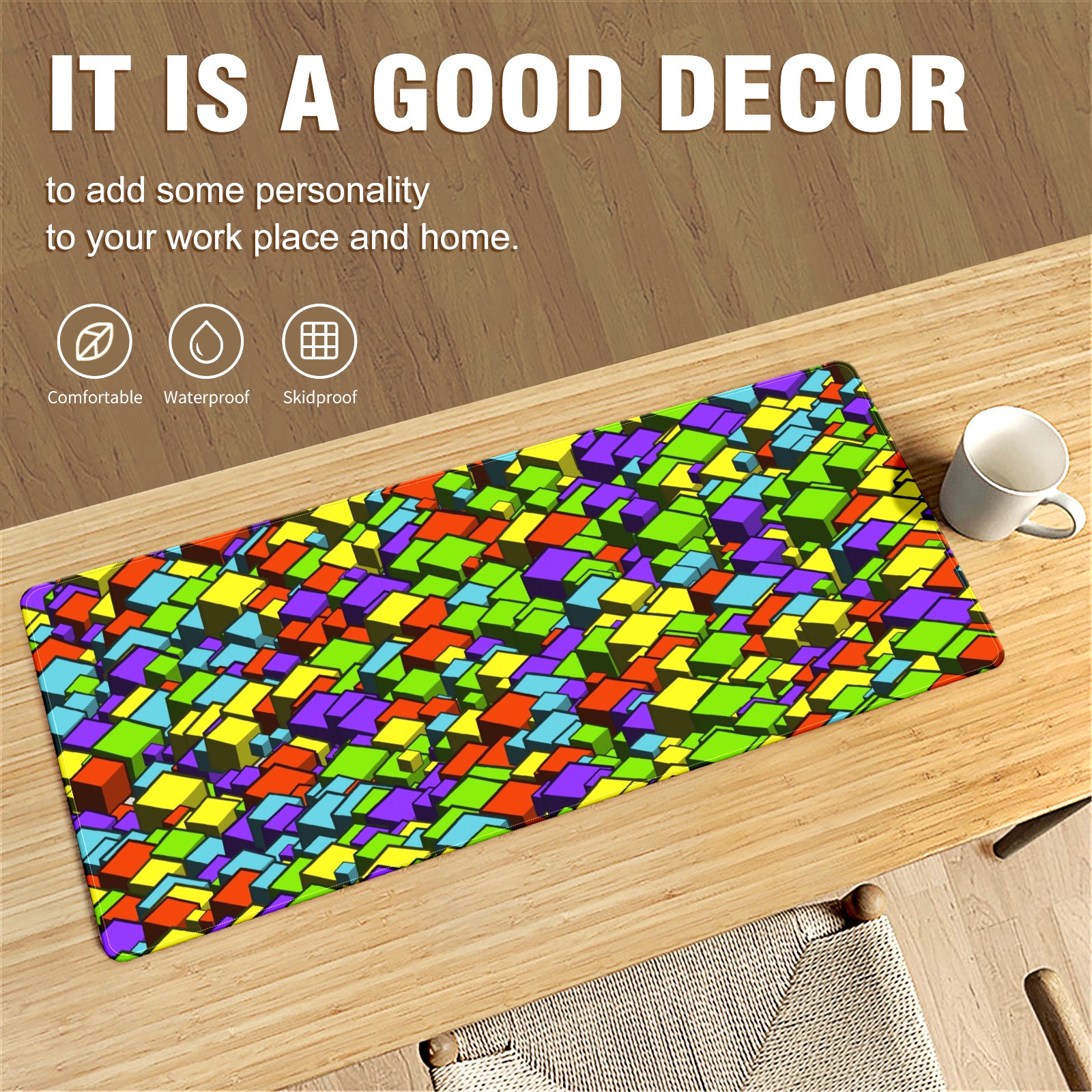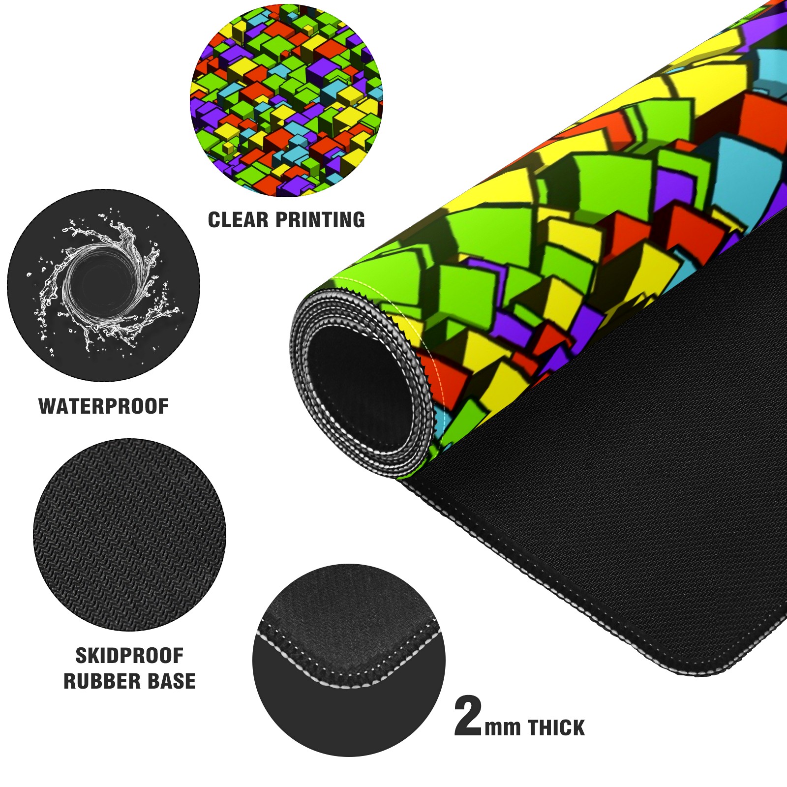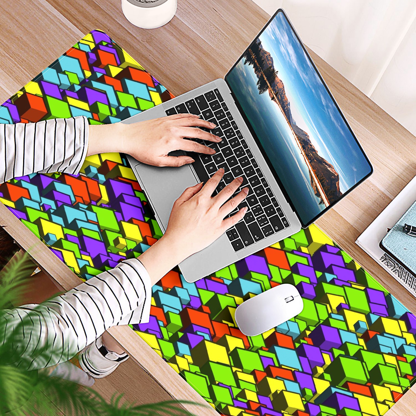 Large Mouse Pad for Desktop, Cute Desk Mat Pad Protector for Work & Gaming, Aesthetic Pretty Anti-Slip Laptop Blotter Cover for Office School Home Supplies, Cube Seamless Colorful , 35.4inx15.7in