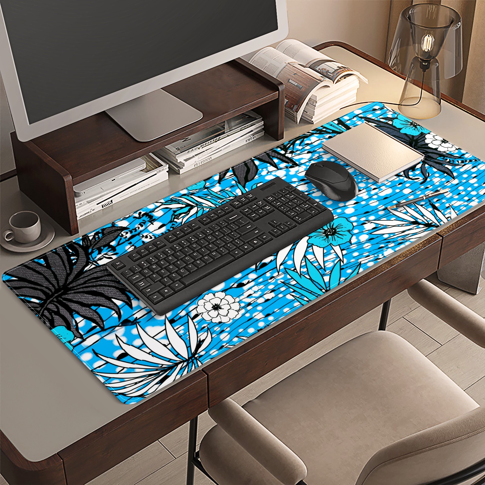 <p>This 35.4” × 15.7” extended desk mat offers ample space for your keyboard, mouse and essentials, working as a smooth work/writing pad while protecting your desktop from scratches.</p><p>With stylish artistic patterns, it adds personality to your home office, study or gaming setup. The high-density woven surface ensures precise, smooth mouse tracking for work and gaming.</p><p>Featuring an anti-slip natural rubber base for firm grip and stability, the mat is soft, elastic and odorless. Reinforced stitched edges prevent fraying and curling for long-lasting durability.</p>