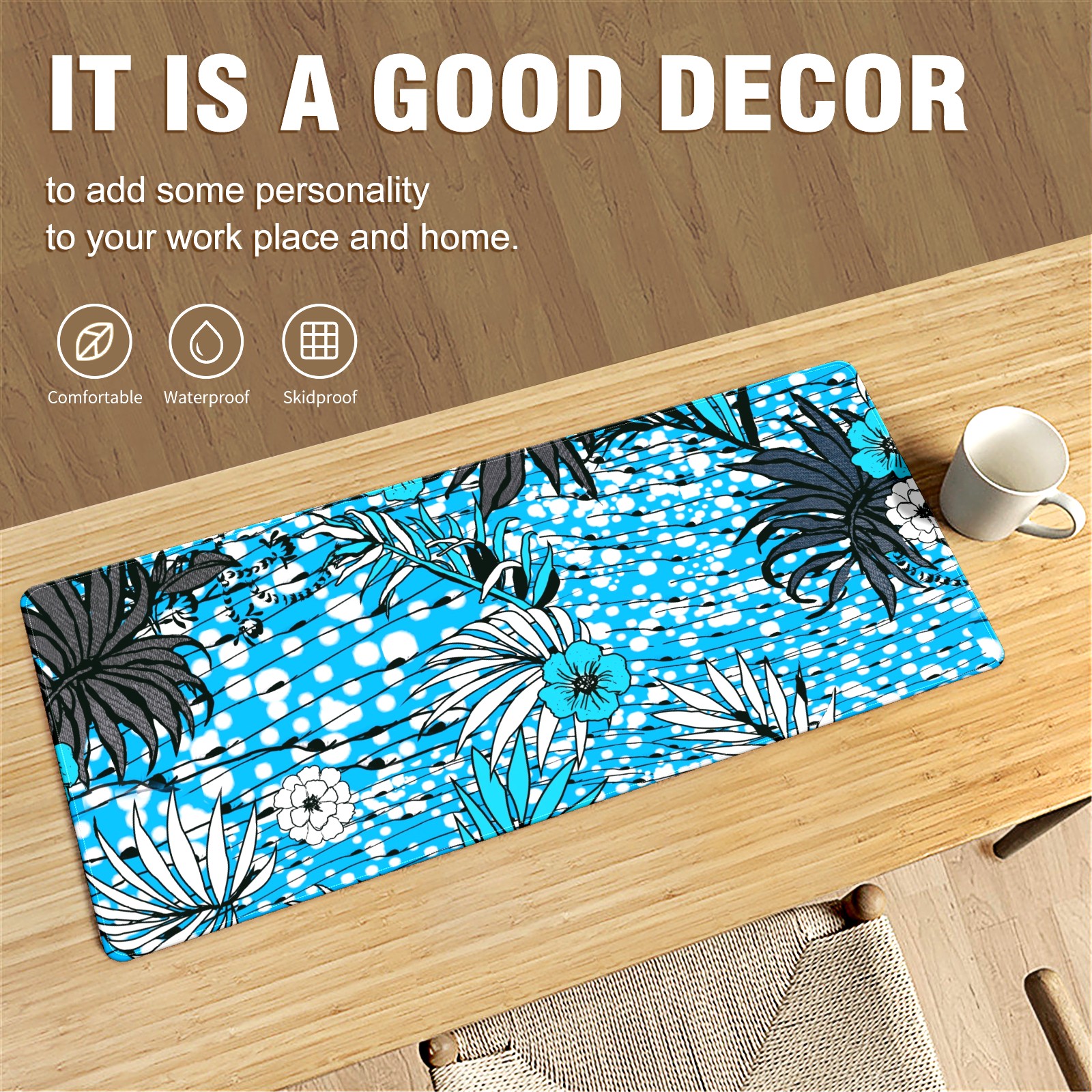 • <p>This 35.4” × 15.7” extended desk mat offers ample space for your keyboard, mouse and essentials, working as a smooth work/writing pad while protecting your desktop from scratches.</p><p>With stylish artistic patterns, it adds personality to your home office, study or gaming setup. The high-density woven surface ensures precise, smooth mouse tracking for work and gaming.</p><p>Featuring an anti-slip natural rubber base for firm grip and stability, the mat is soft, elastic and odorless. Reinforced stitched edges prevent fraying and curling for long-lasting durability.</p>