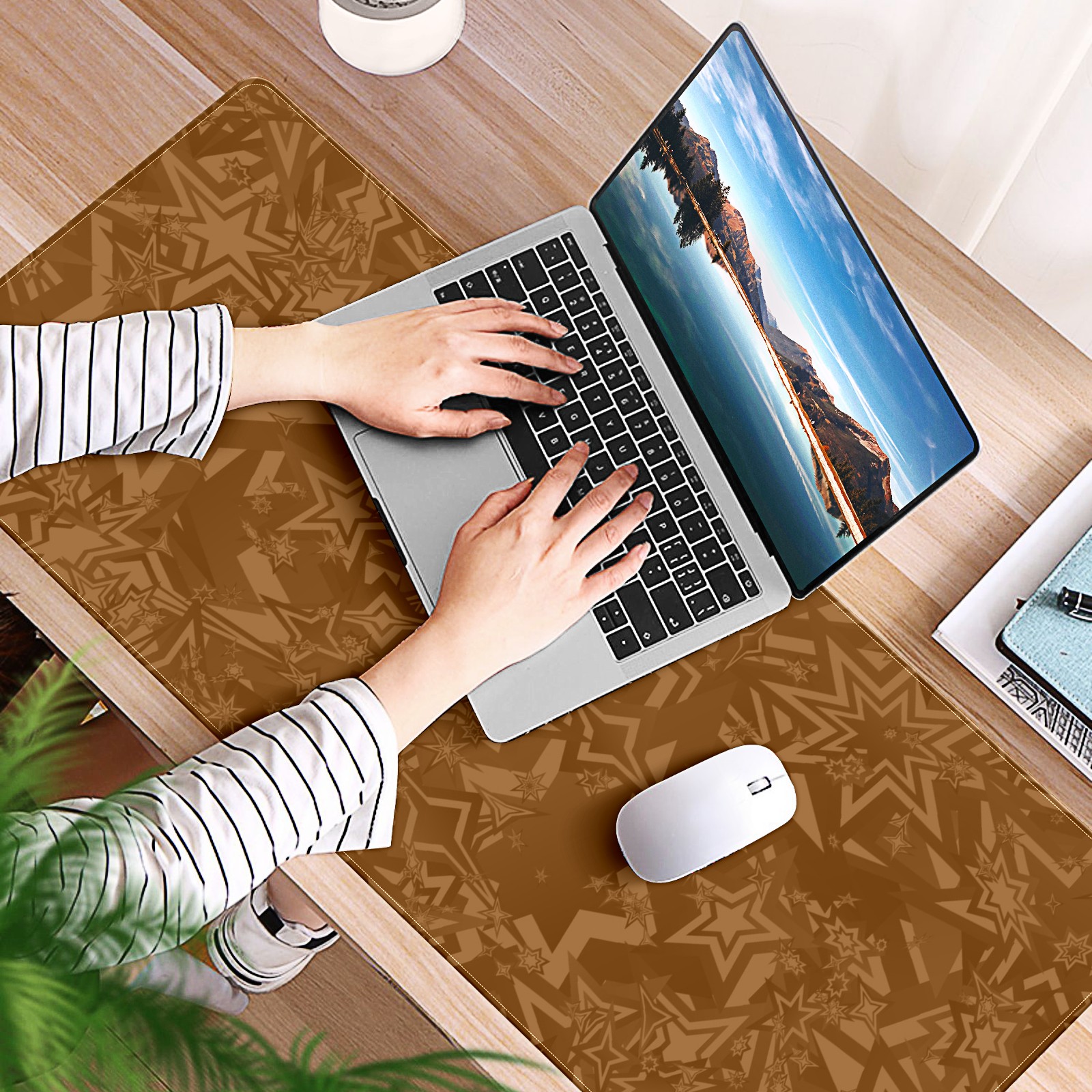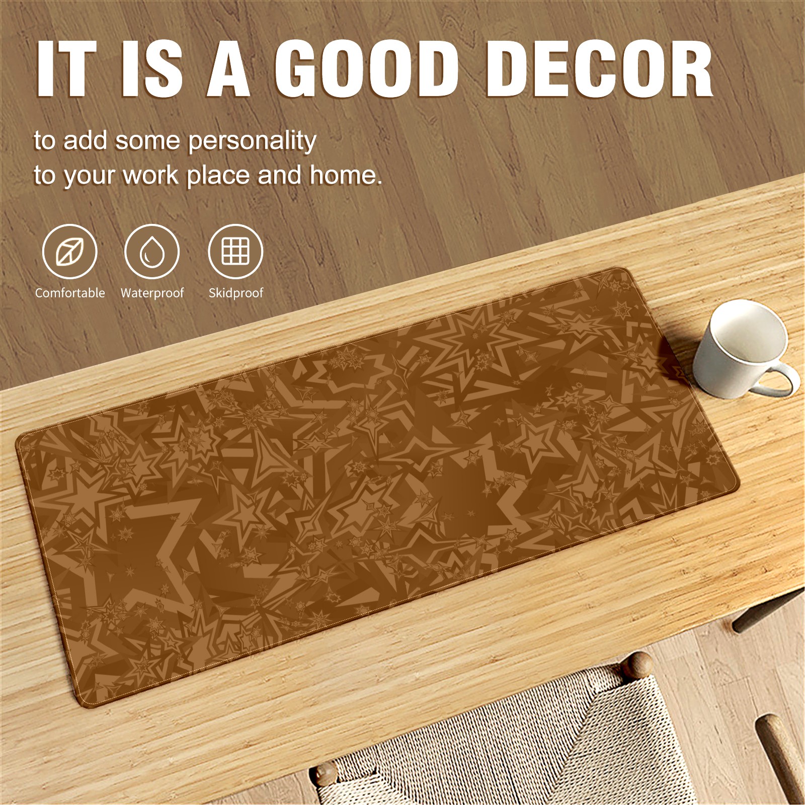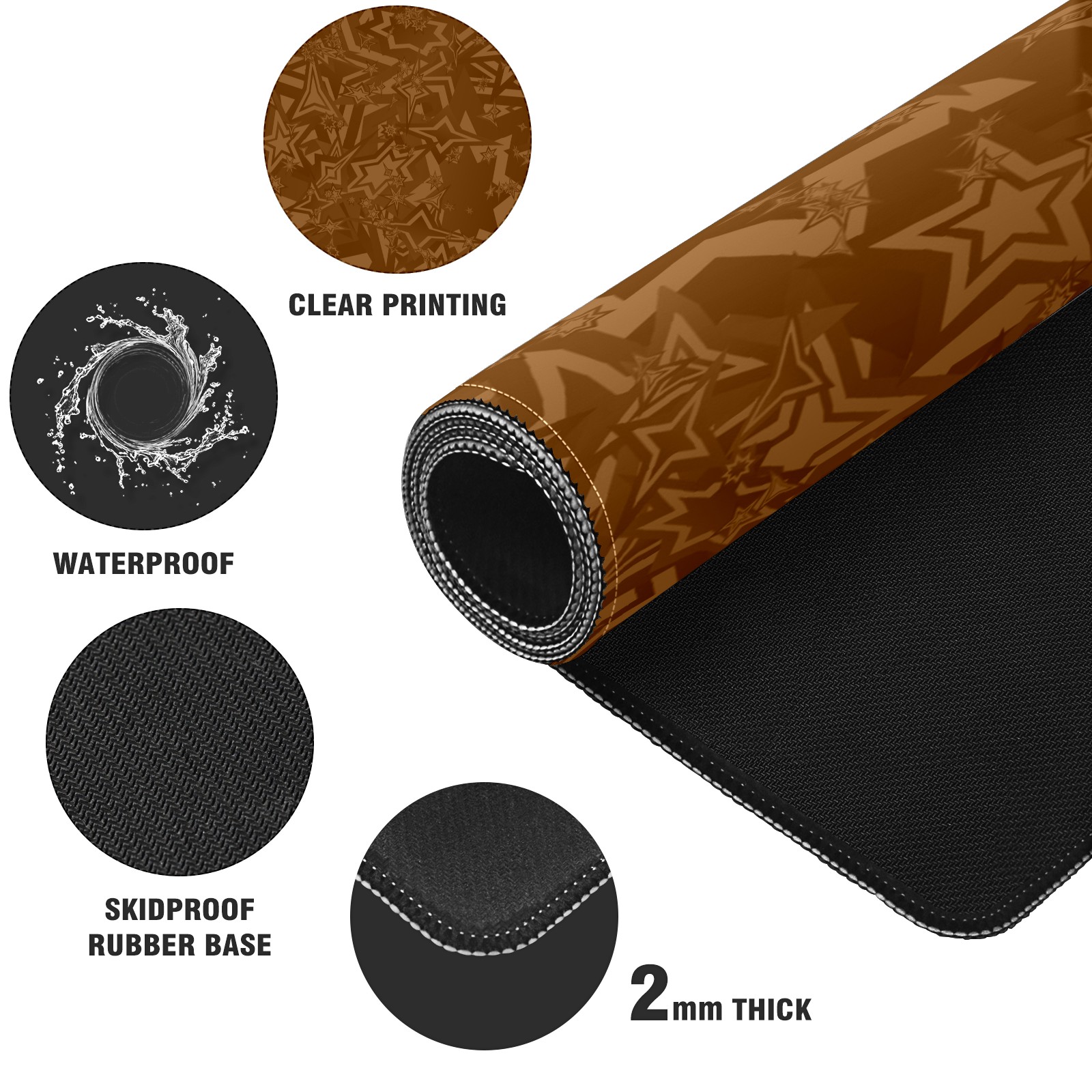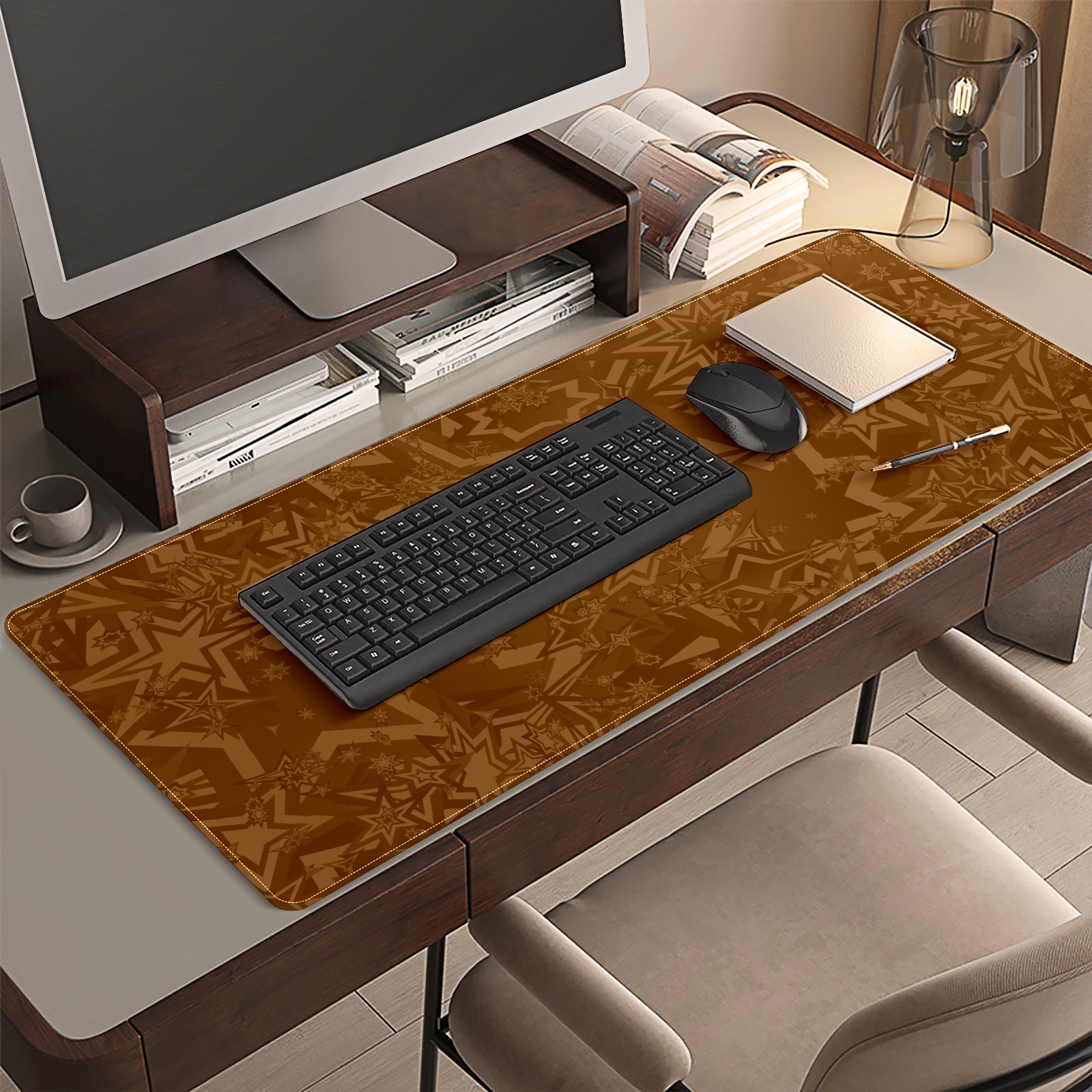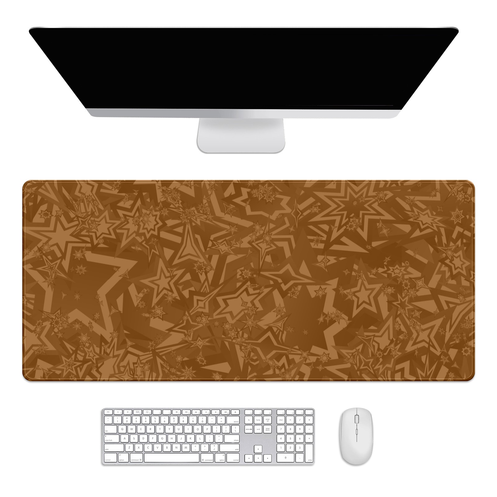 Large Mouse Pad for Desktop, Cute Desk Mat Pad Protector for Work & Gaming, Aesthetic Pretty Anti-Slip Laptop Blotter Cover for Office School Home Supplies, Star Seamless Brown , 35.4inx15.7in