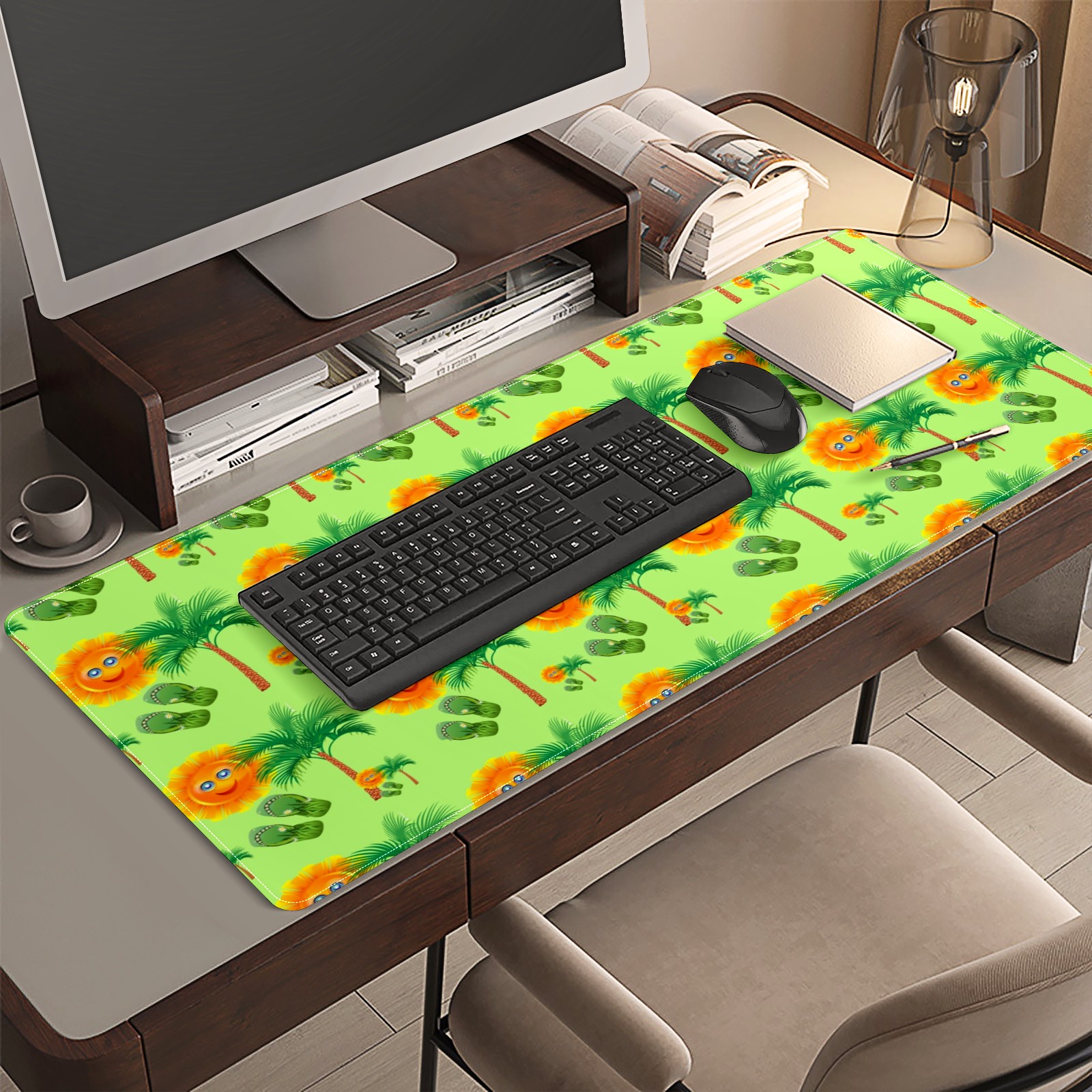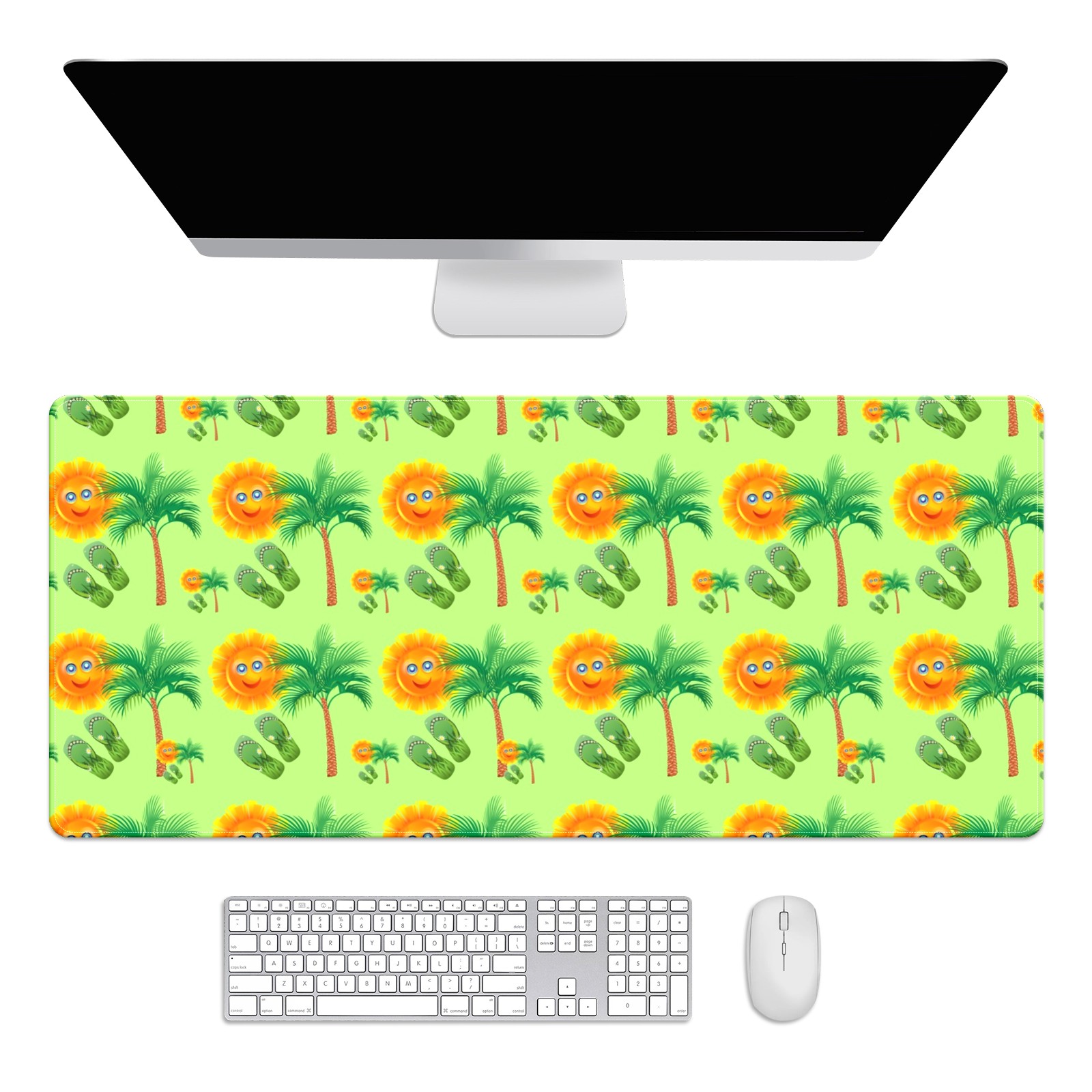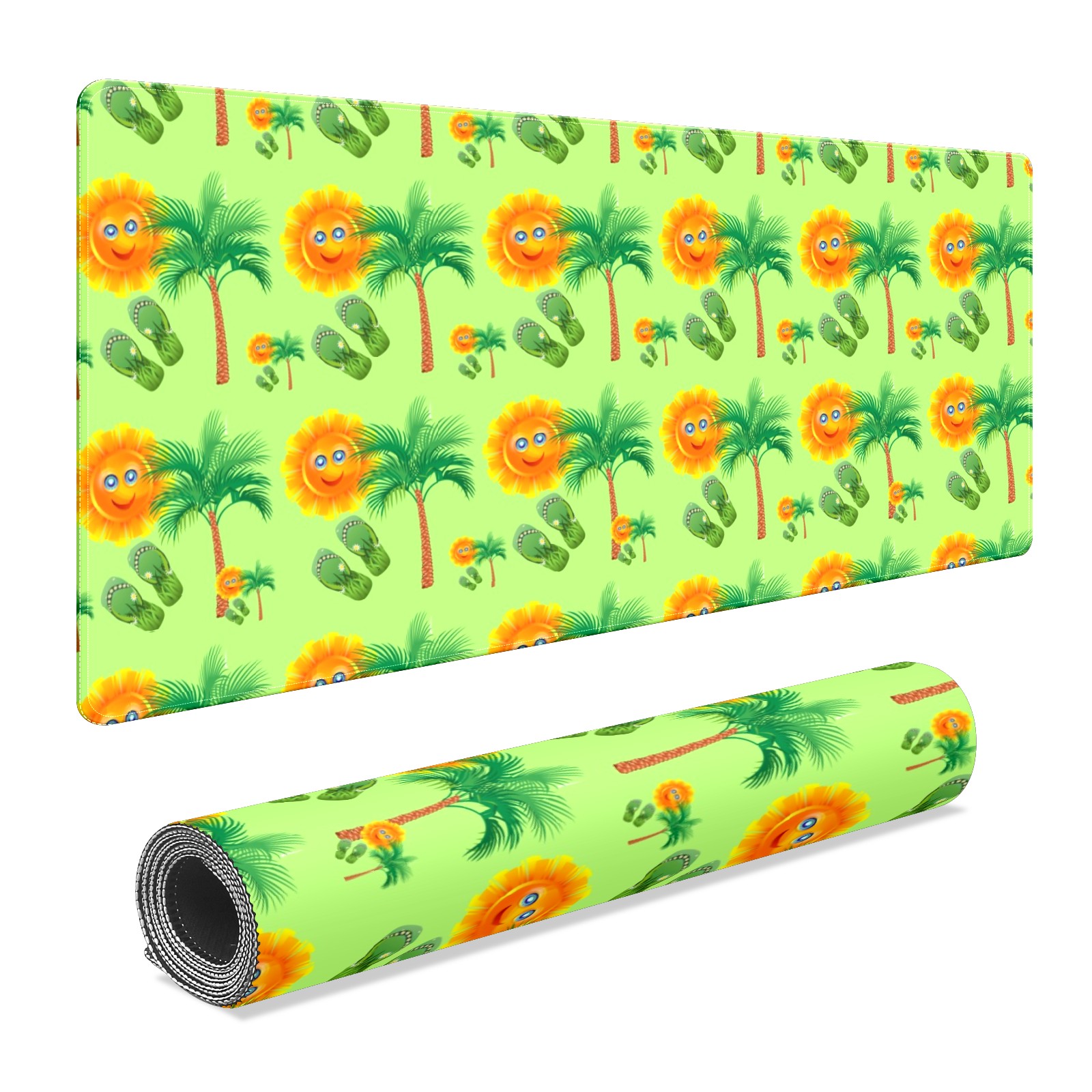 Large Mouse Pad for Desktop, Cute Desk Mat Pad Protector for Work & Gaming, Aesthetic Pretty Anti-Slip Laptop Blotter Cover for Office School Home Supplies, Sun Palm Slippers Seamless , 35.4inx15.7in