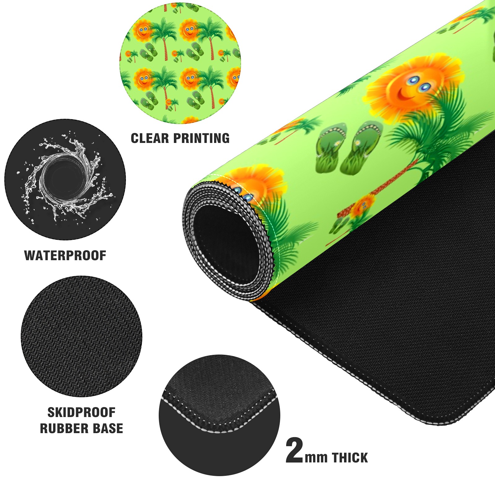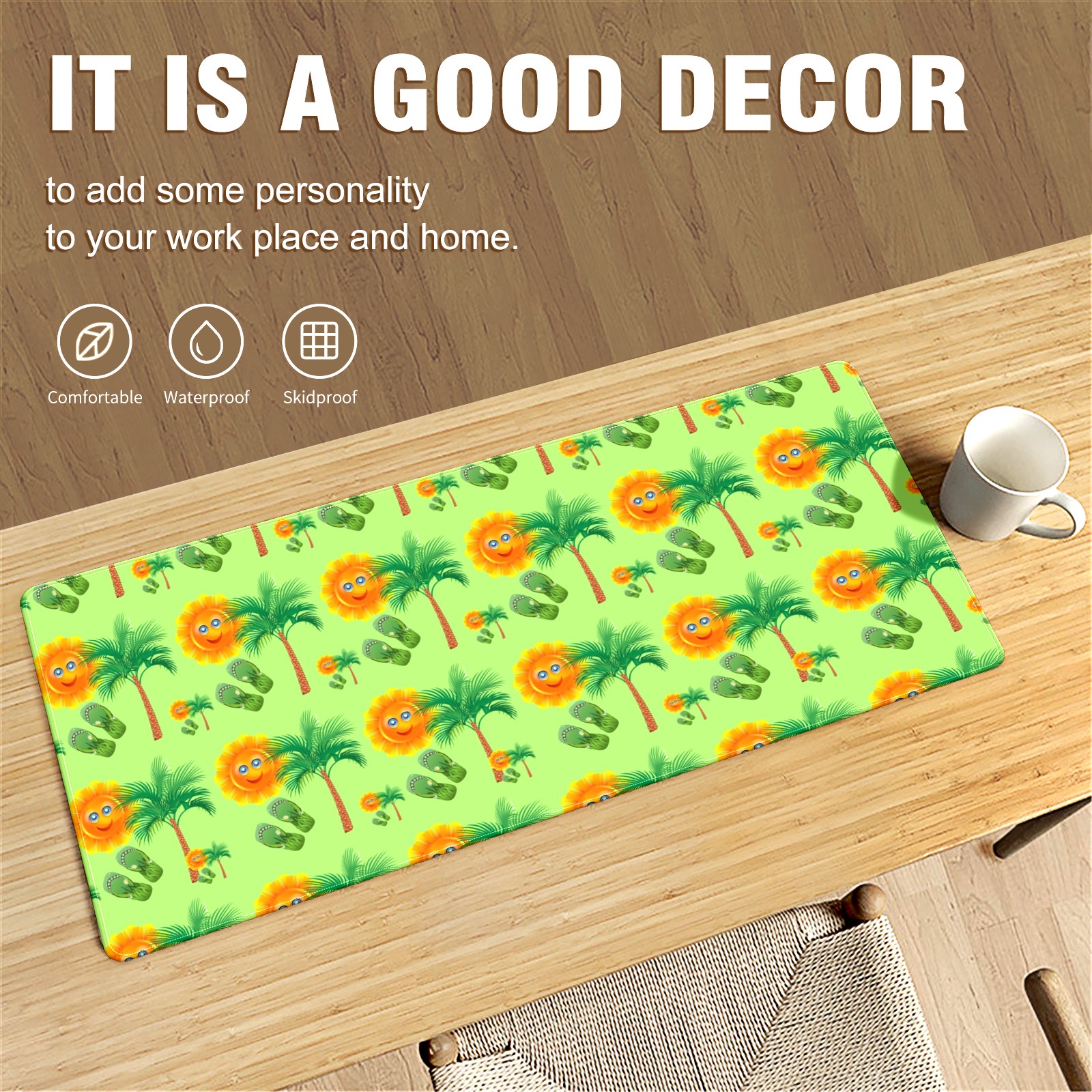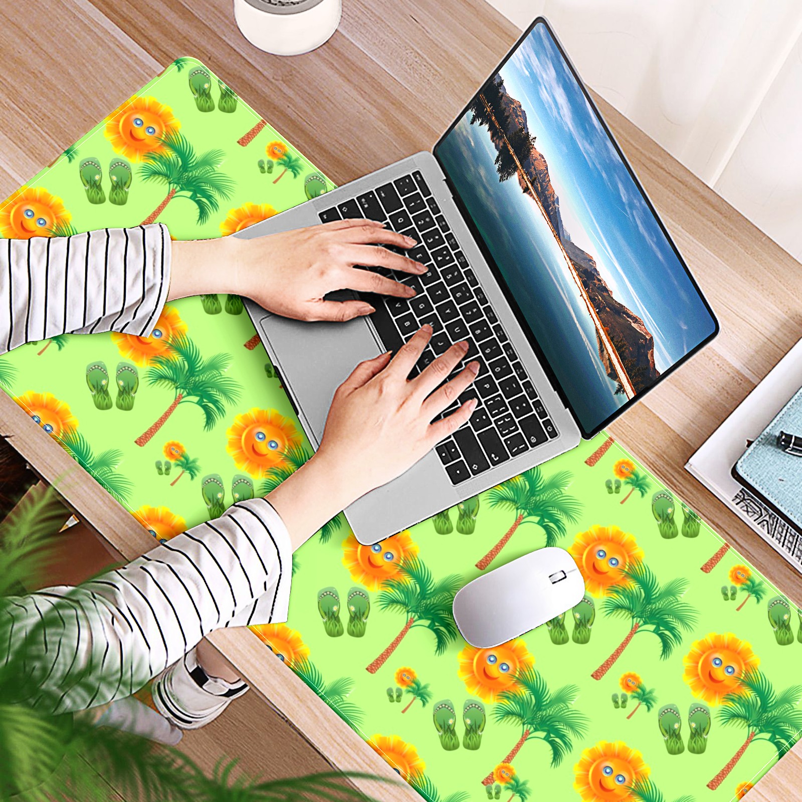 Large Mouse Pad for Desktop, Cute Desk Mat Pad Protector for Work & Gaming, Aesthetic Pretty Anti-Slip Laptop Blotter Cover for Office School Home Supplies, Sun Palm Slippers Seamless , 35.4inx15.7in