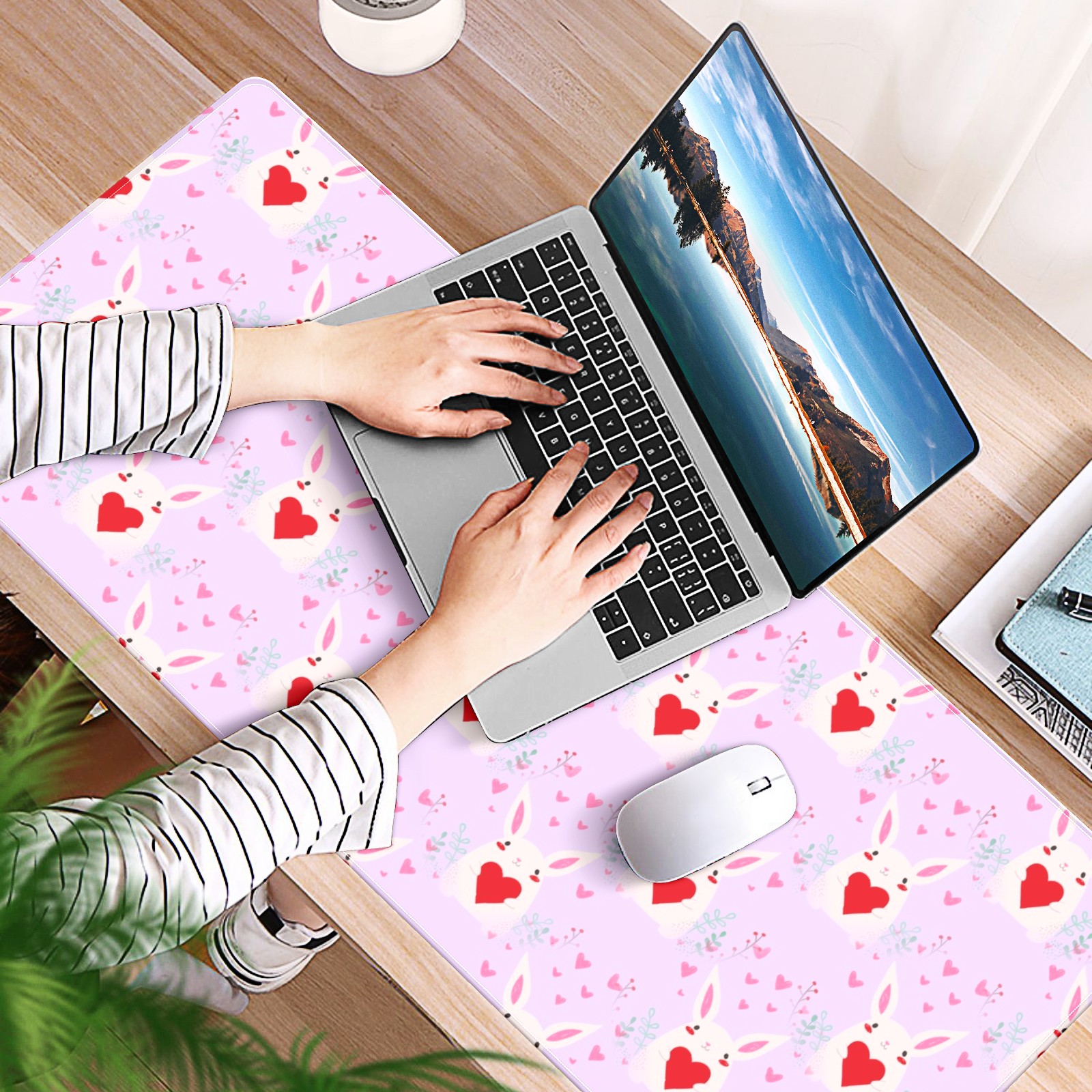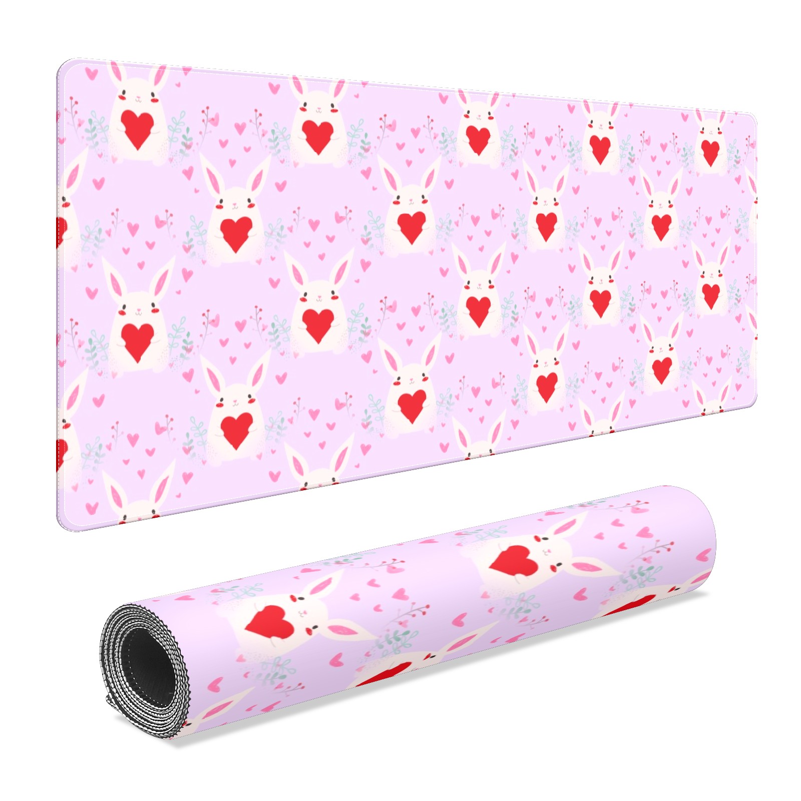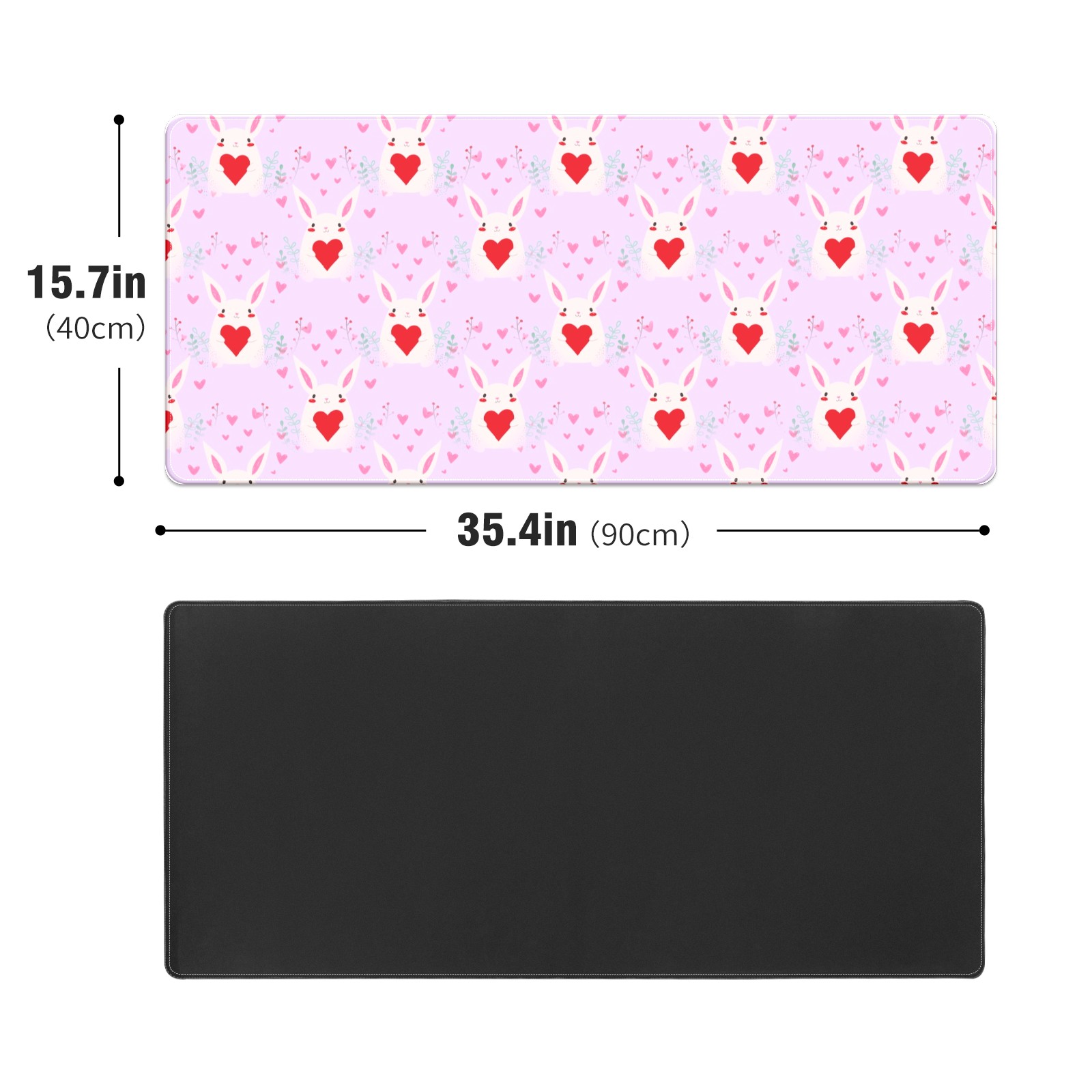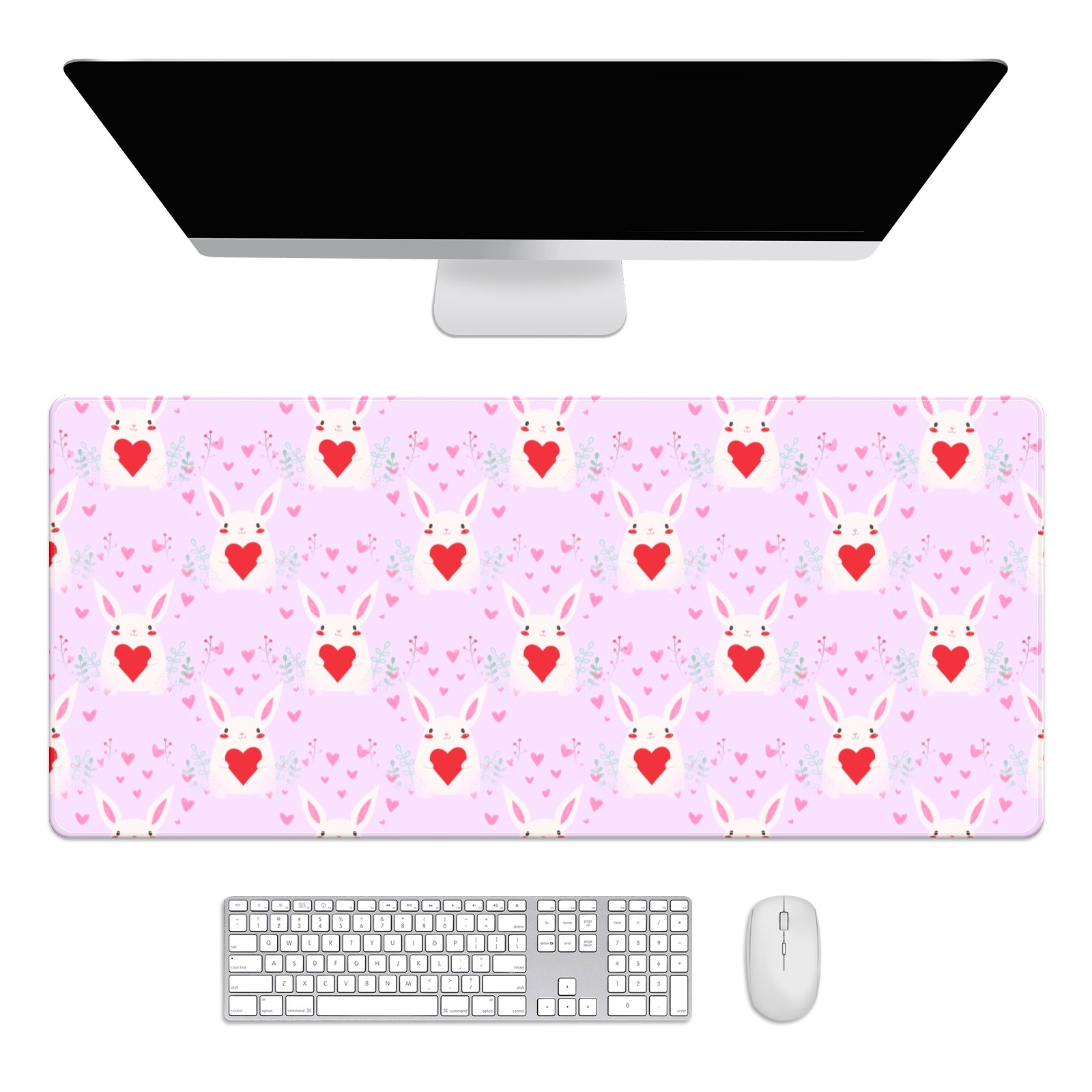 Large Mouse Pad for Desktop, Cute Desk Mat Pad Protector for Work & Gaming, Aesthetic Pretty Anti-Slip Laptop Blotter Cover for Office School Home Supplies, Bunny Heart Seamless , 35.4inx15.7in