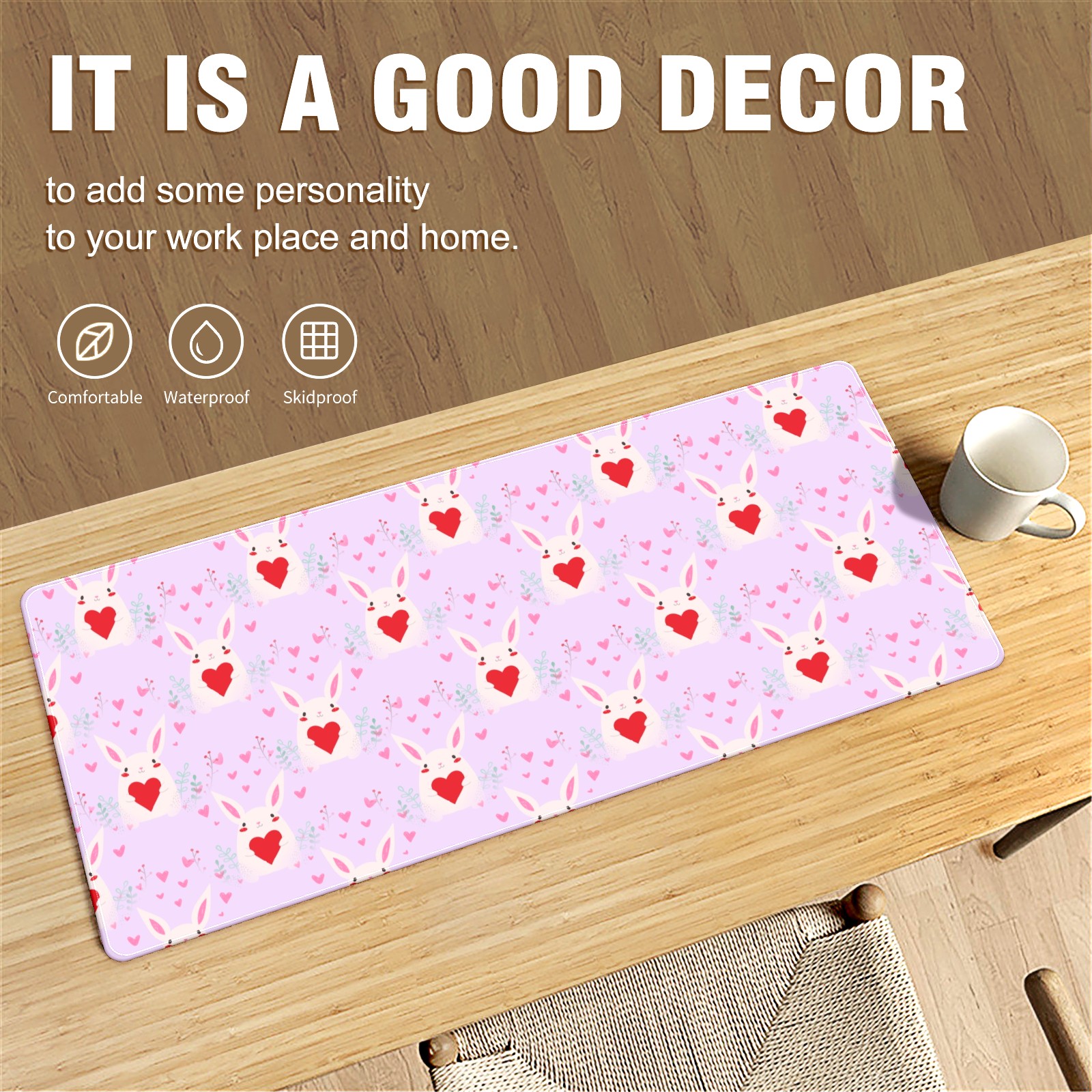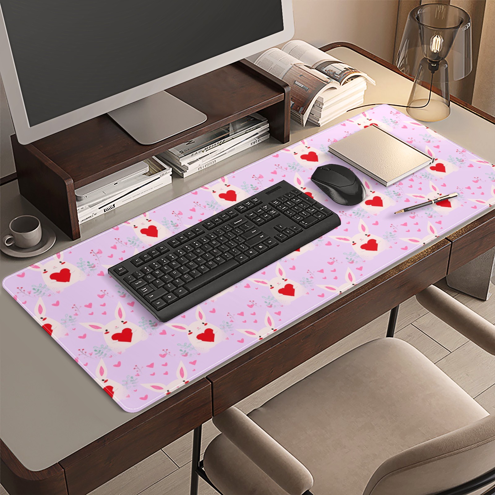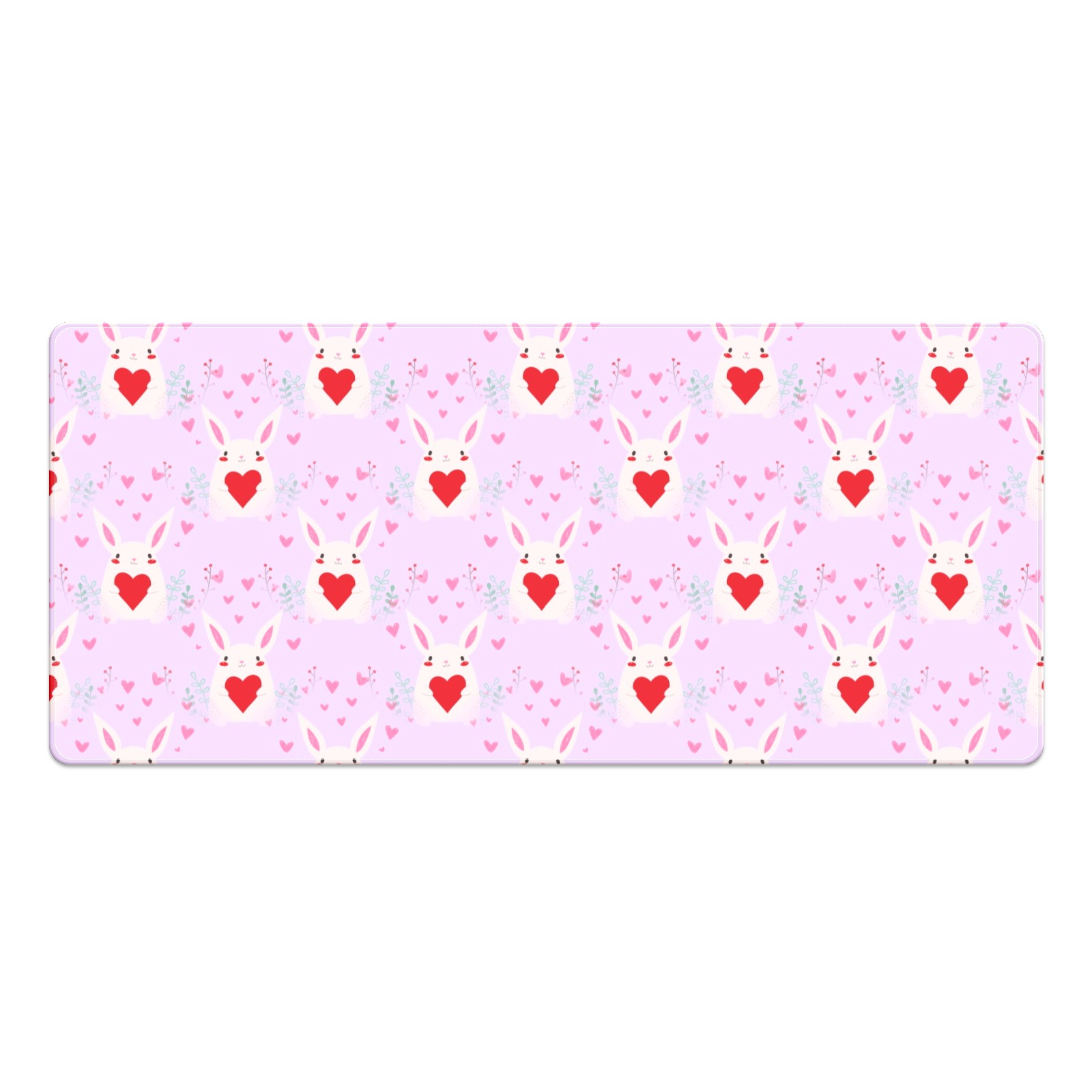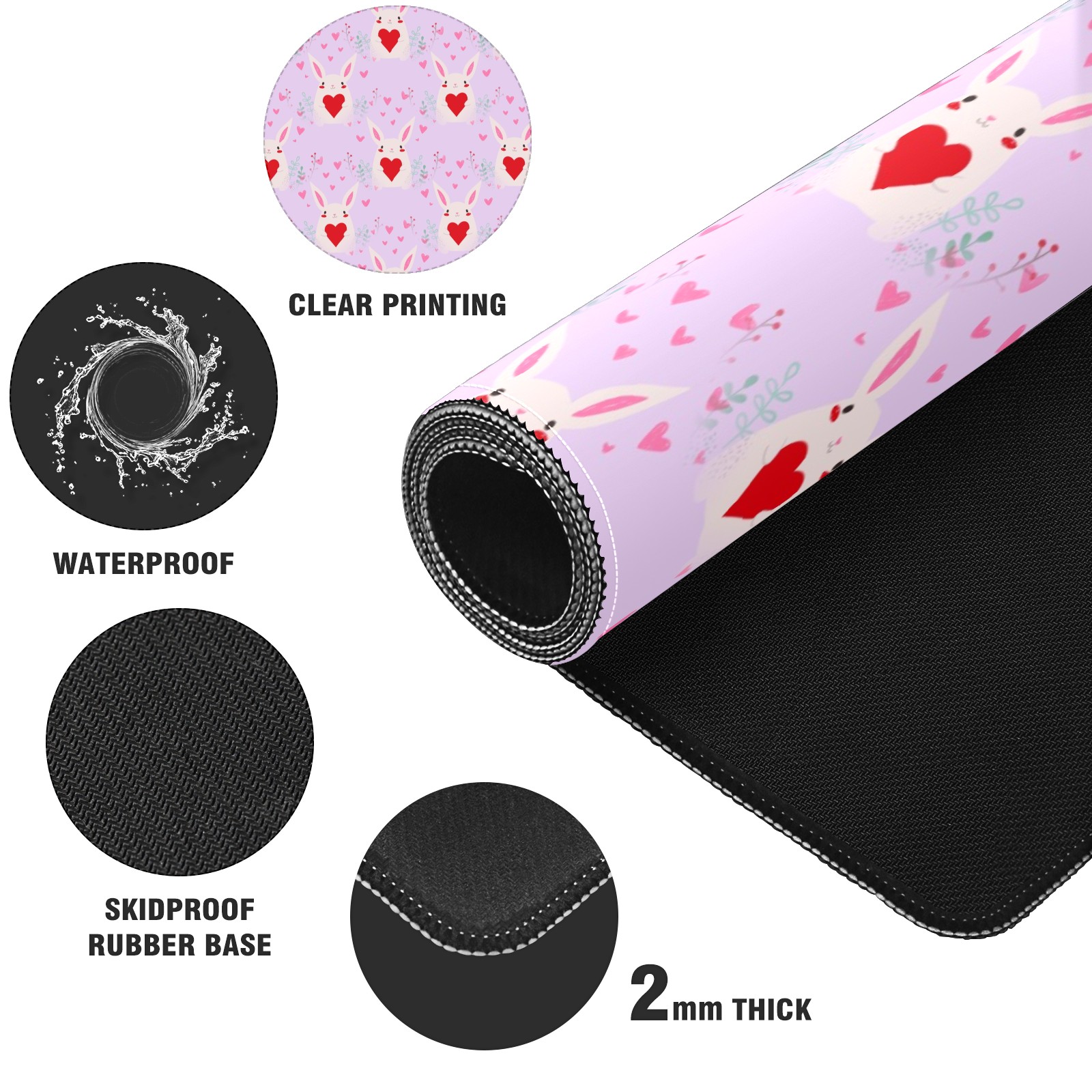 Large Mouse Pad for Desktop, Cute Desk Mat Pad Protector for Work & Gaming, Aesthetic Pretty Anti-Slip Laptop Blotter Cover for Office School Home Supplies, Bunny Heart Seamless , 35.4inx15.7in
