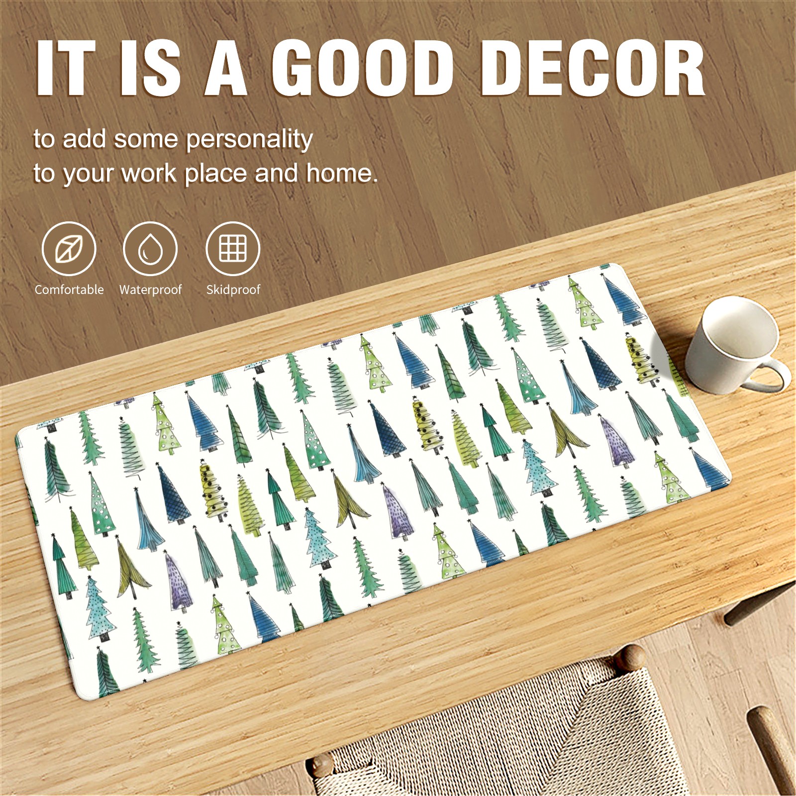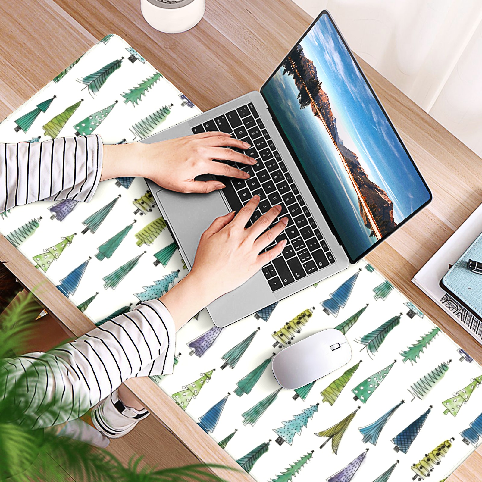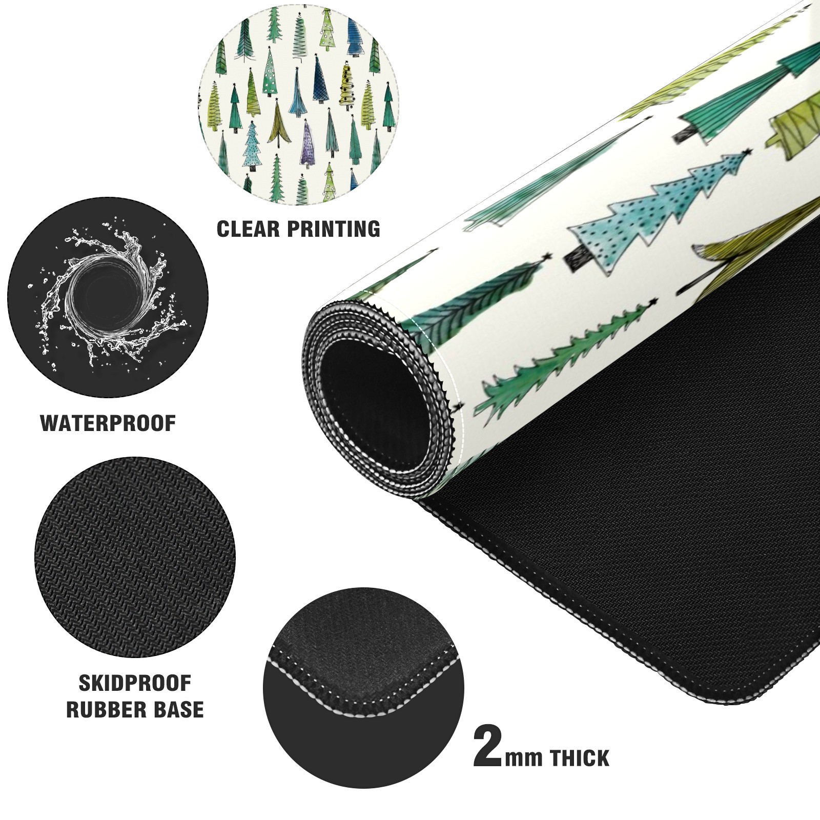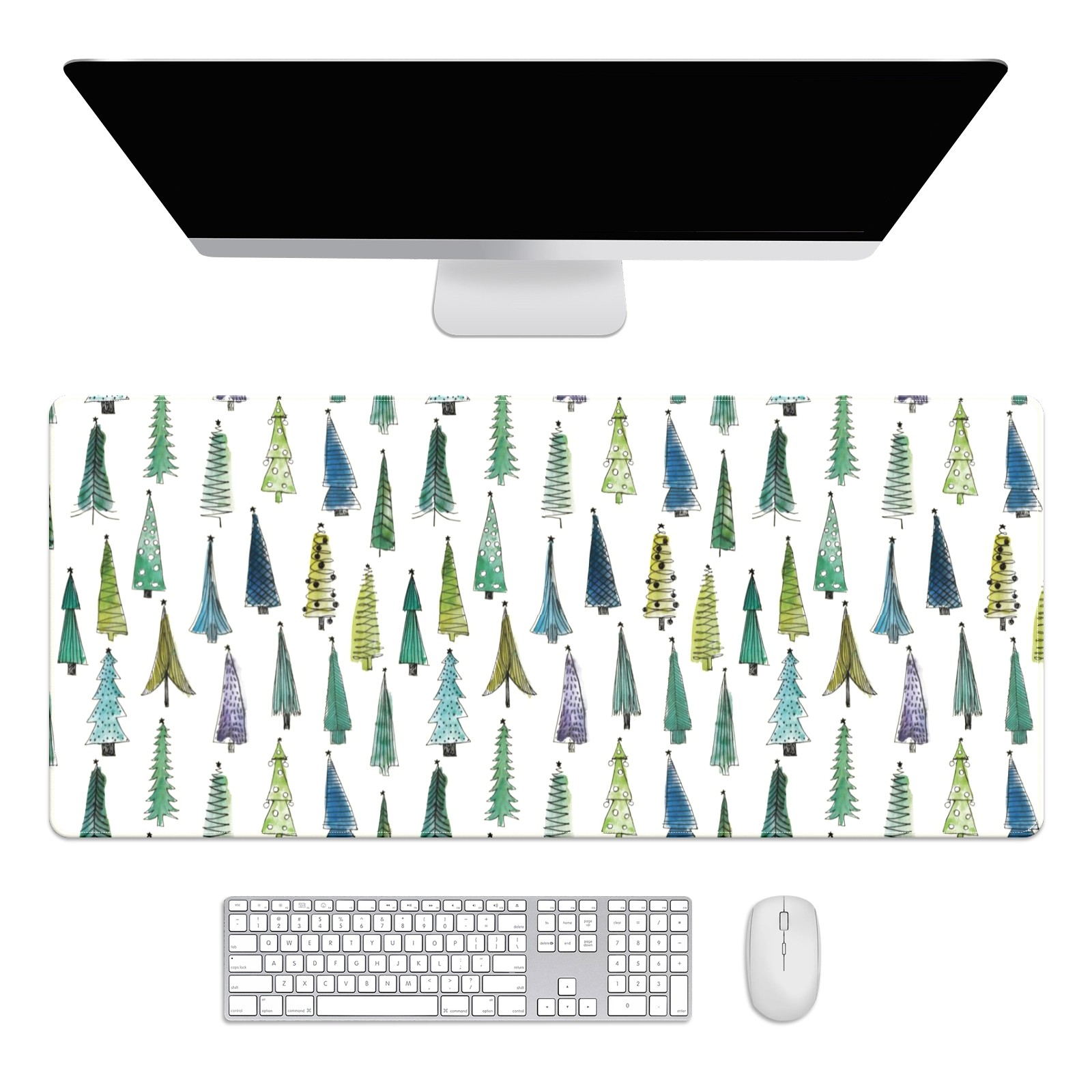 Large Mouse Pad for Desktop, Cute Desk Mat Pad Protector for Work & Gaming, Aesthetic Pretty Anti-Slip Laptop Blotter Cover for Office School Home Supplies, Christmas Tree Seamless , 35.4inx15.7in