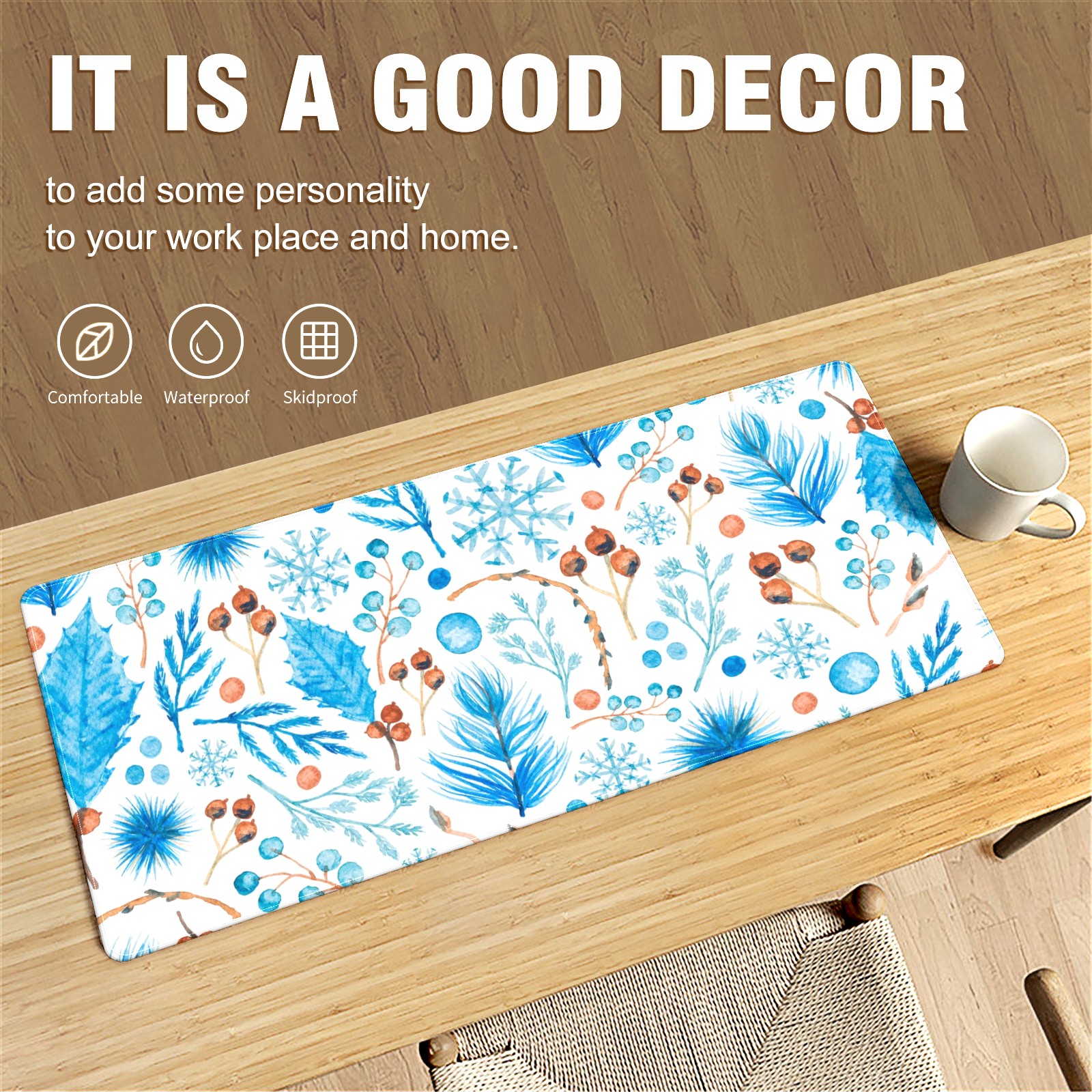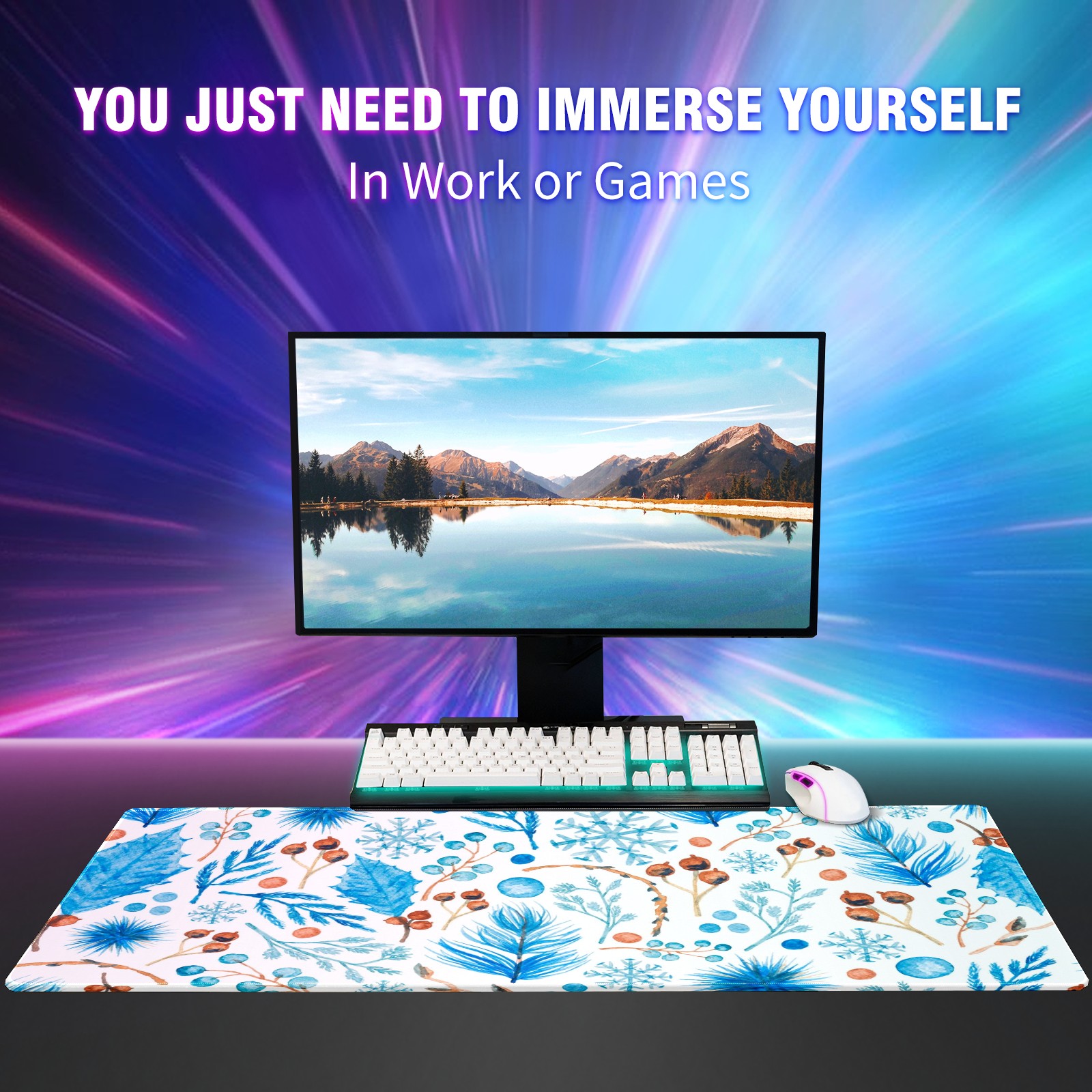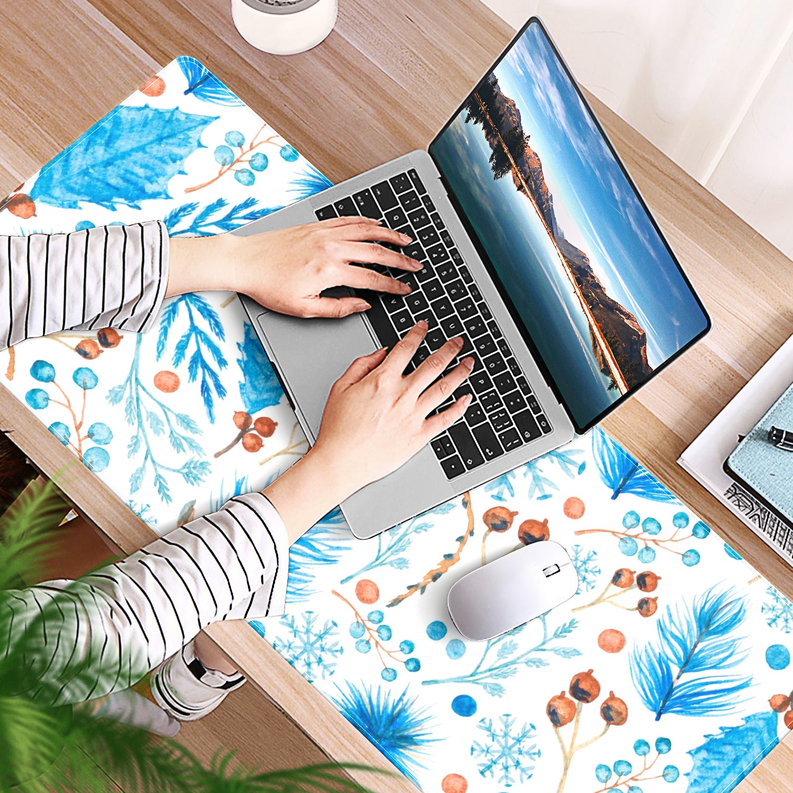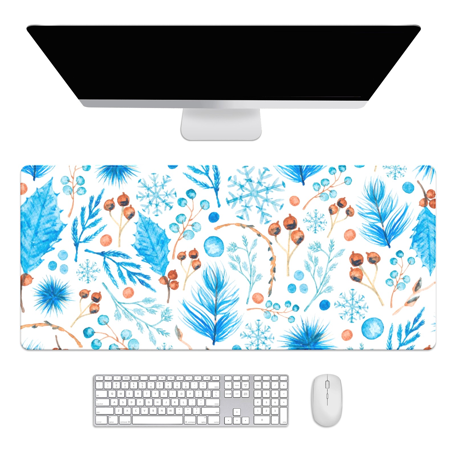 Large Mouse Pad for Desktop, Cute Desk Mat Pad Protector for Work & Gaming, Aesthetic Pretty Anti-Slip Laptop Blotter Cover for Office School Home Supplies, Leaf Snowflake Seamless , 35.4inx15.7in
