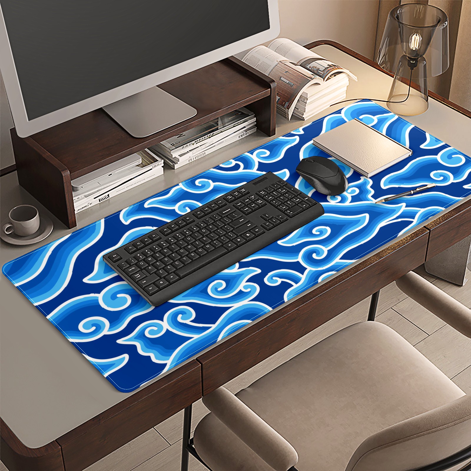 <p>This 35.4” × 15.7” extended desk mat offers ample space for your keyboard, mouse and essentials, working as a smooth work/writing pad while protecting your desktop from scratches.</p><p>With stylish artistic patterns, it adds personality to your home office, study or gaming setup. The high-density woven surface ensures precise, smooth mouse tracking for work and gaming.</p><p>Featuring an anti-slip natural rubber base for firm grip and stability, the mat is soft, elastic and odorless. Reinforced stitched edges prevent fraying and curling for long-lasting durability.</p>