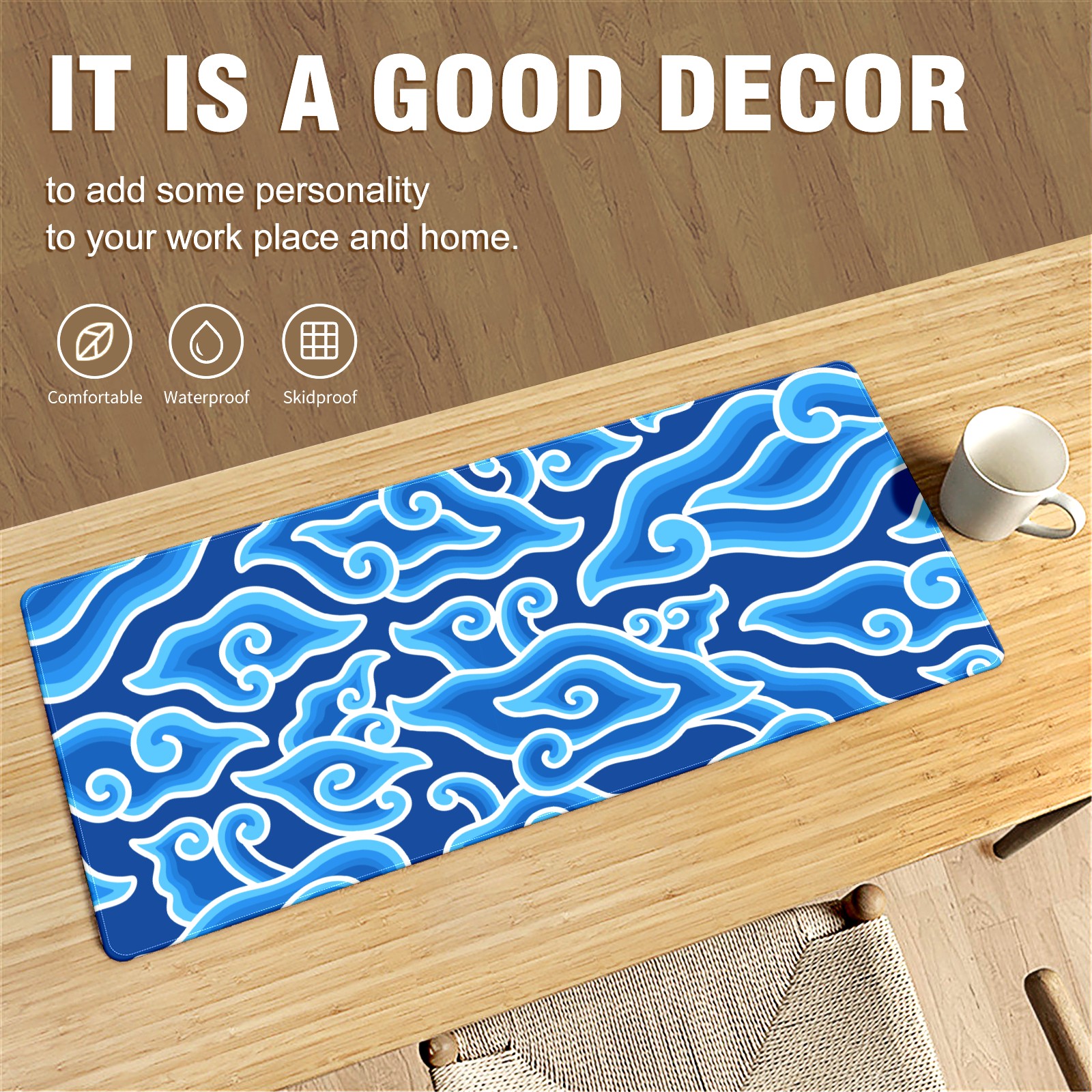 • <p>This 35.4” × 15.7” extended desk mat offers ample space for your keyboard, mouse and essentials, working as a smooth work/writing pad while protecting your desktop from scratches.</p><p>With stylish artistic patterns, it adds personality to your home office, study or gaming setup. The high-density woven surface ensures precise, smooth mouse tracking for work and gaming.</p><p>Featuring an anti-slip natural rubber base for firm grip and stability, the mat is soft, elastic and odorless. Reinforced stitched edges prevent fraying and curling for long-lasting durability.</p>