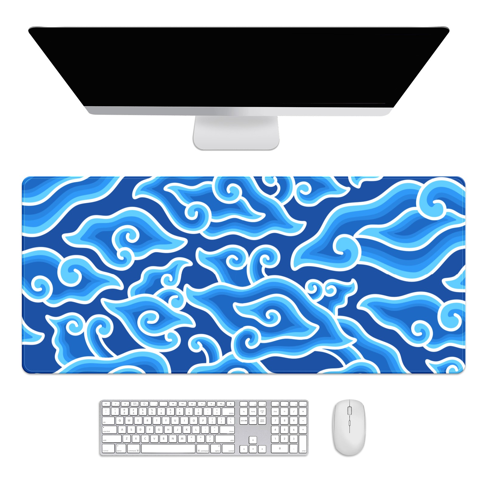 Large Mouse Pad for Desktop, Cute Desk Mat Pad Protector for Work & Gaming, Aesthetic Pretty Anti-Slip Laptop Blotter Cover for Office School Home Supplies, Clouds Blue Seamless , 35.4inx15.7in