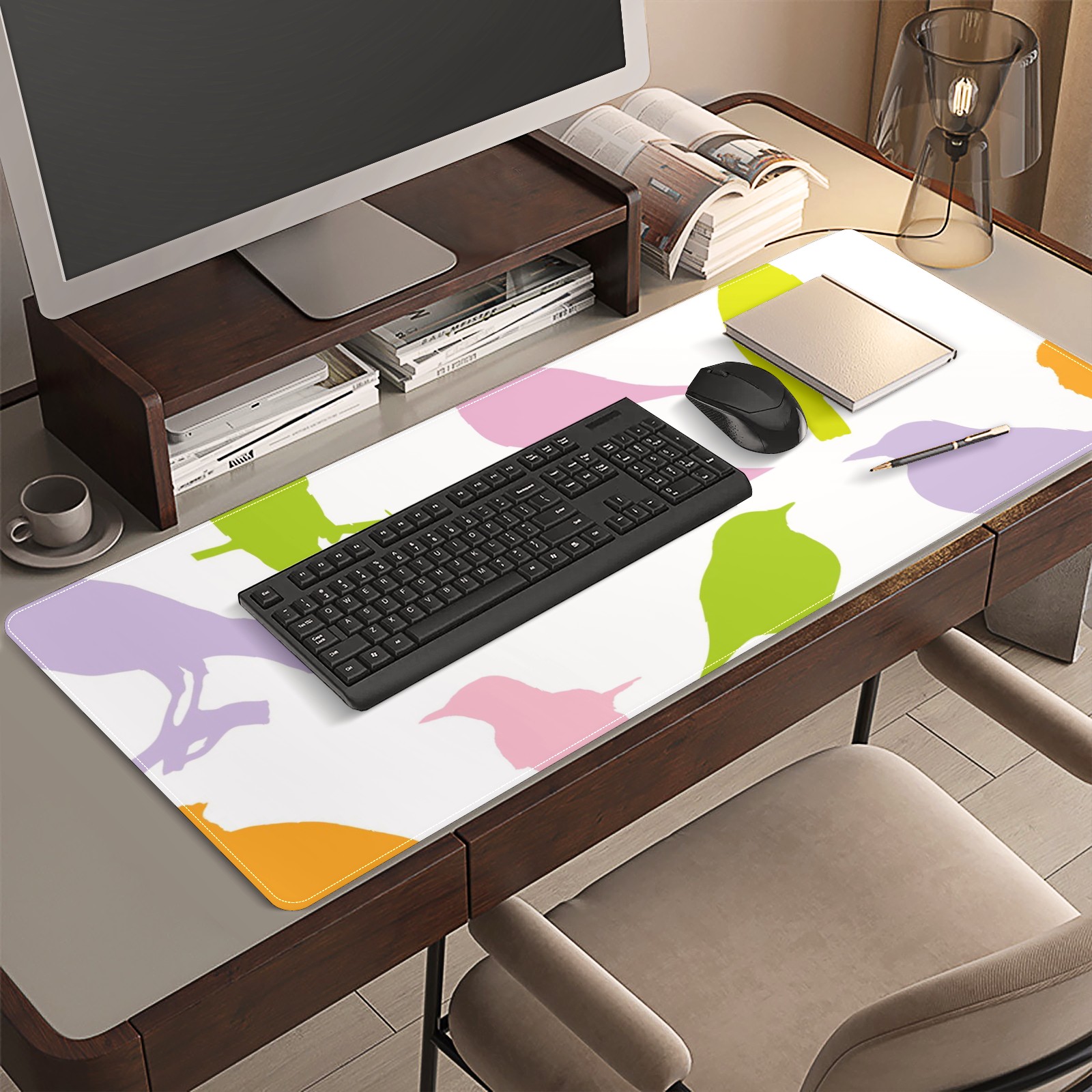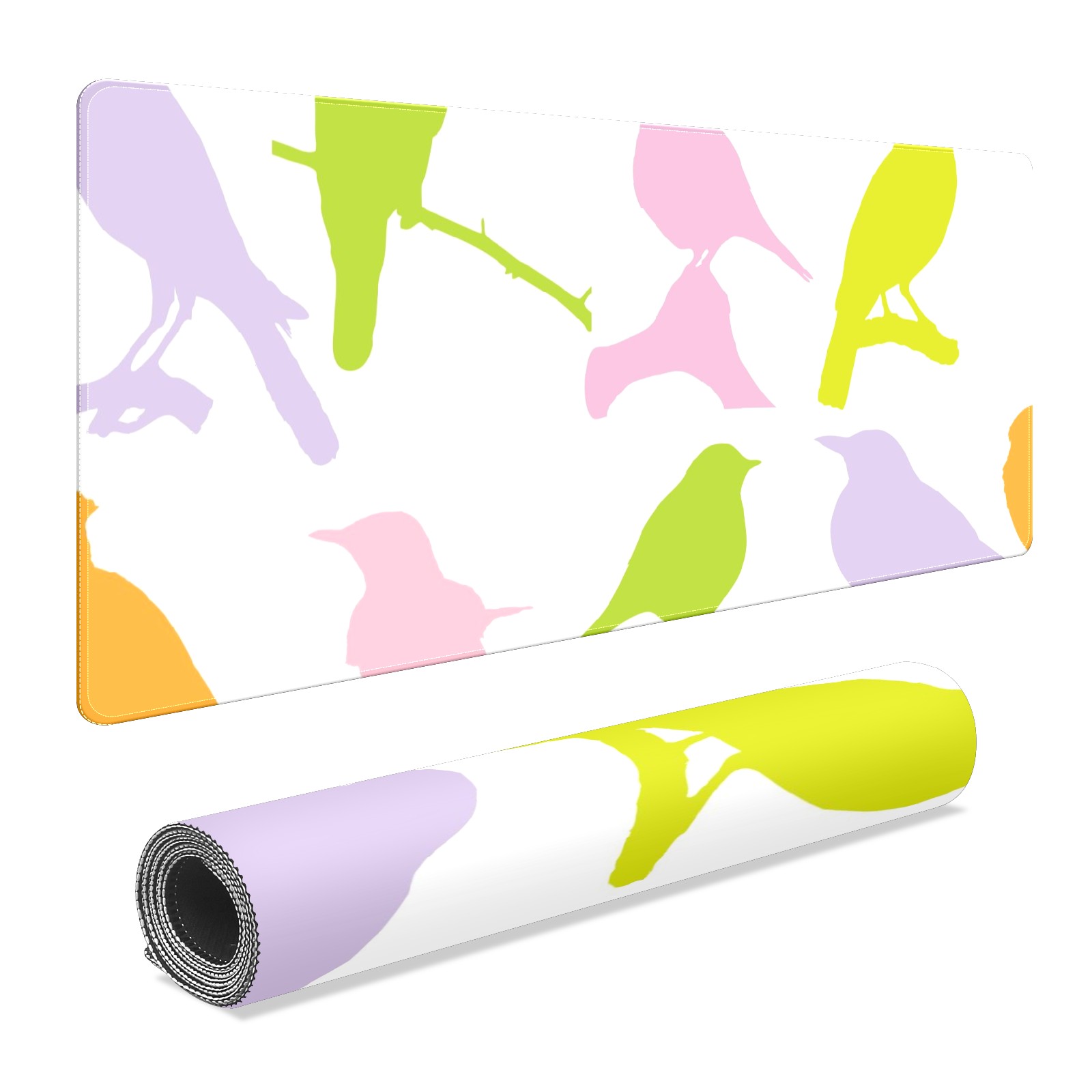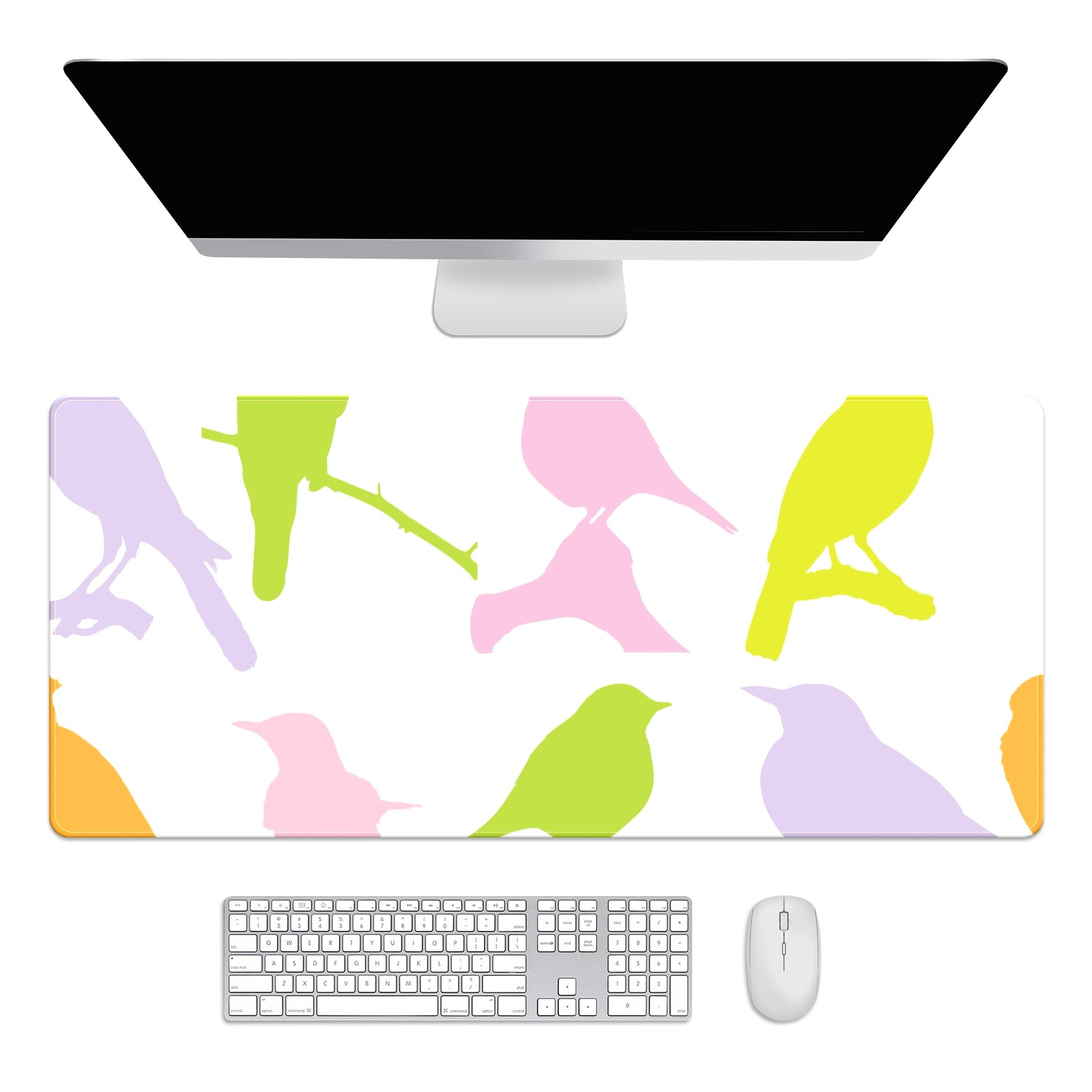 Large Mouse Pad for Desktop, Cute Desk Mat Pad Protector for Work & Gaming, Aesthetic Pretty Anti-Slip Laptop Blotter Cover for Office School Home Supplies, Birds Colourful Seamless , 35.4inx15.7in