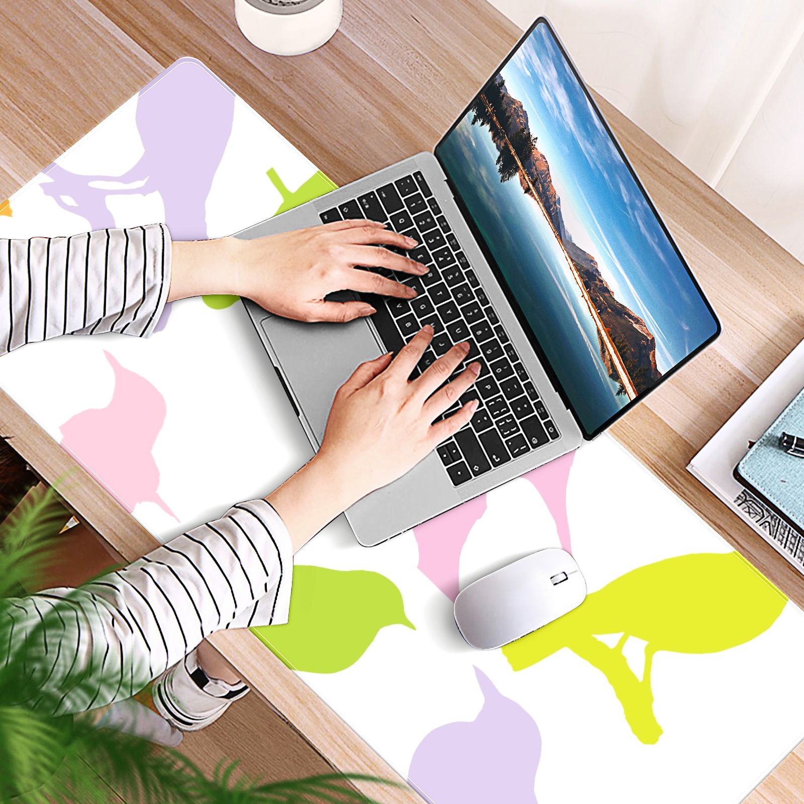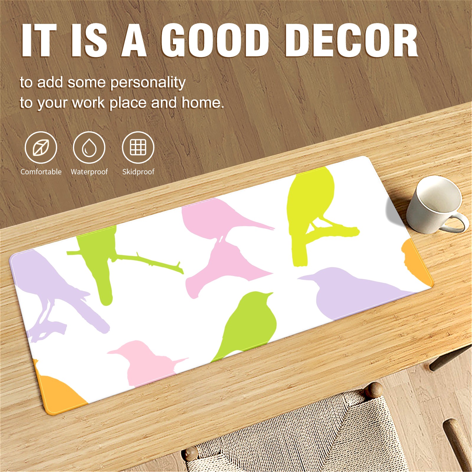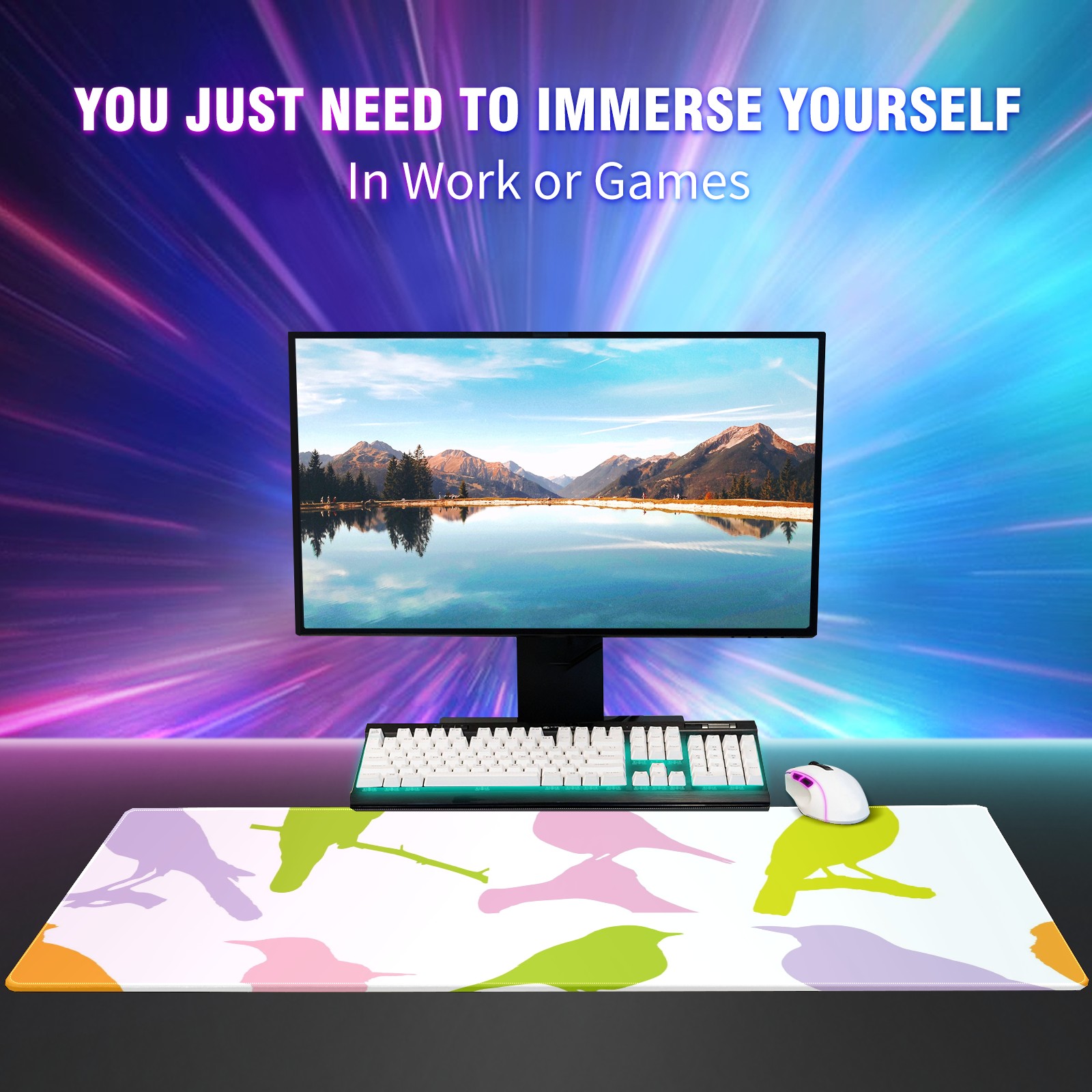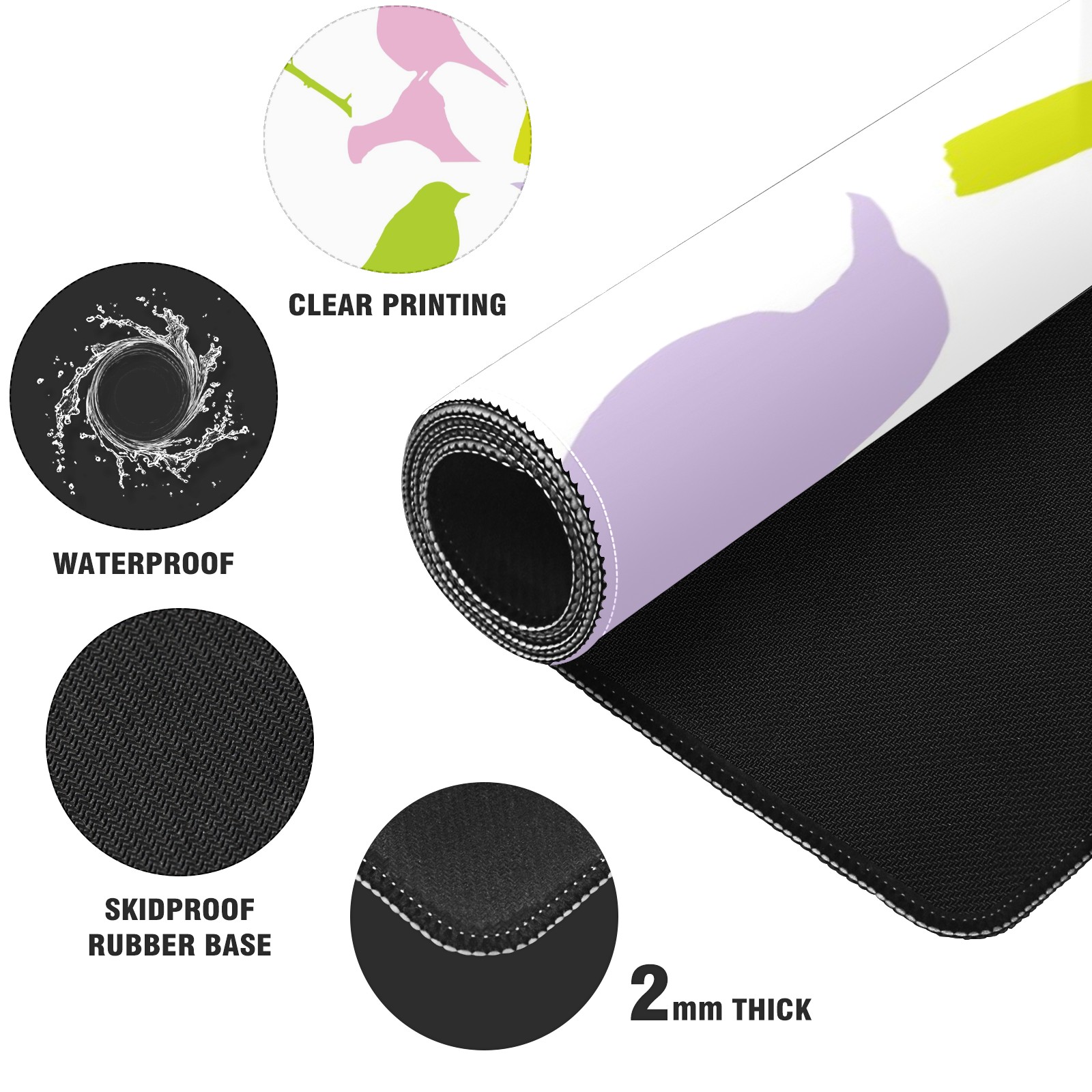 Large Mouse Pad for Desktop, Cute Desk Mat Pad Protector for Work & Gaming, Aesthetic Pretty Anti-Slip Laptop Blotter Cover for Office School Home Supplies, Birds Colourful Seamless , 35.4inx15.7in