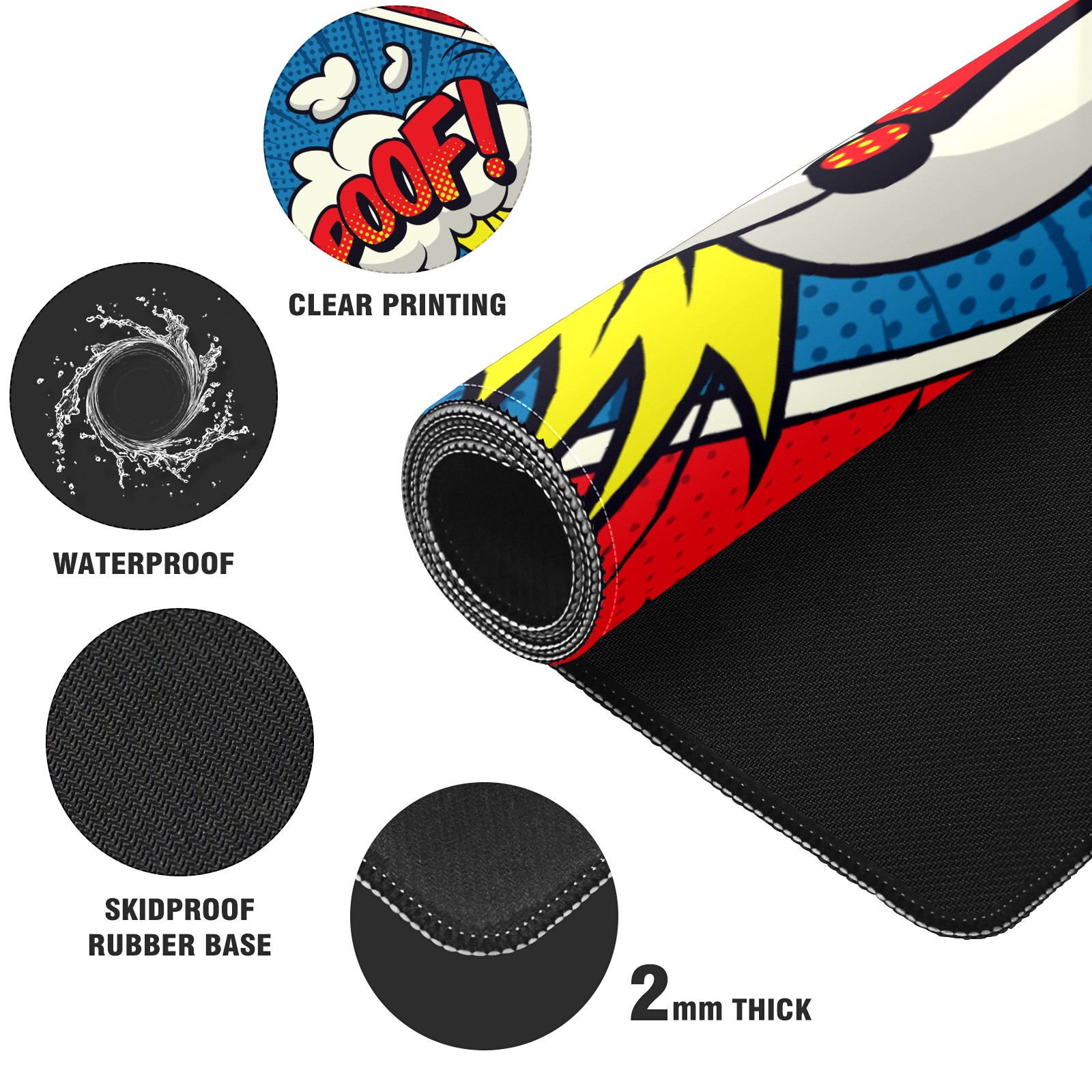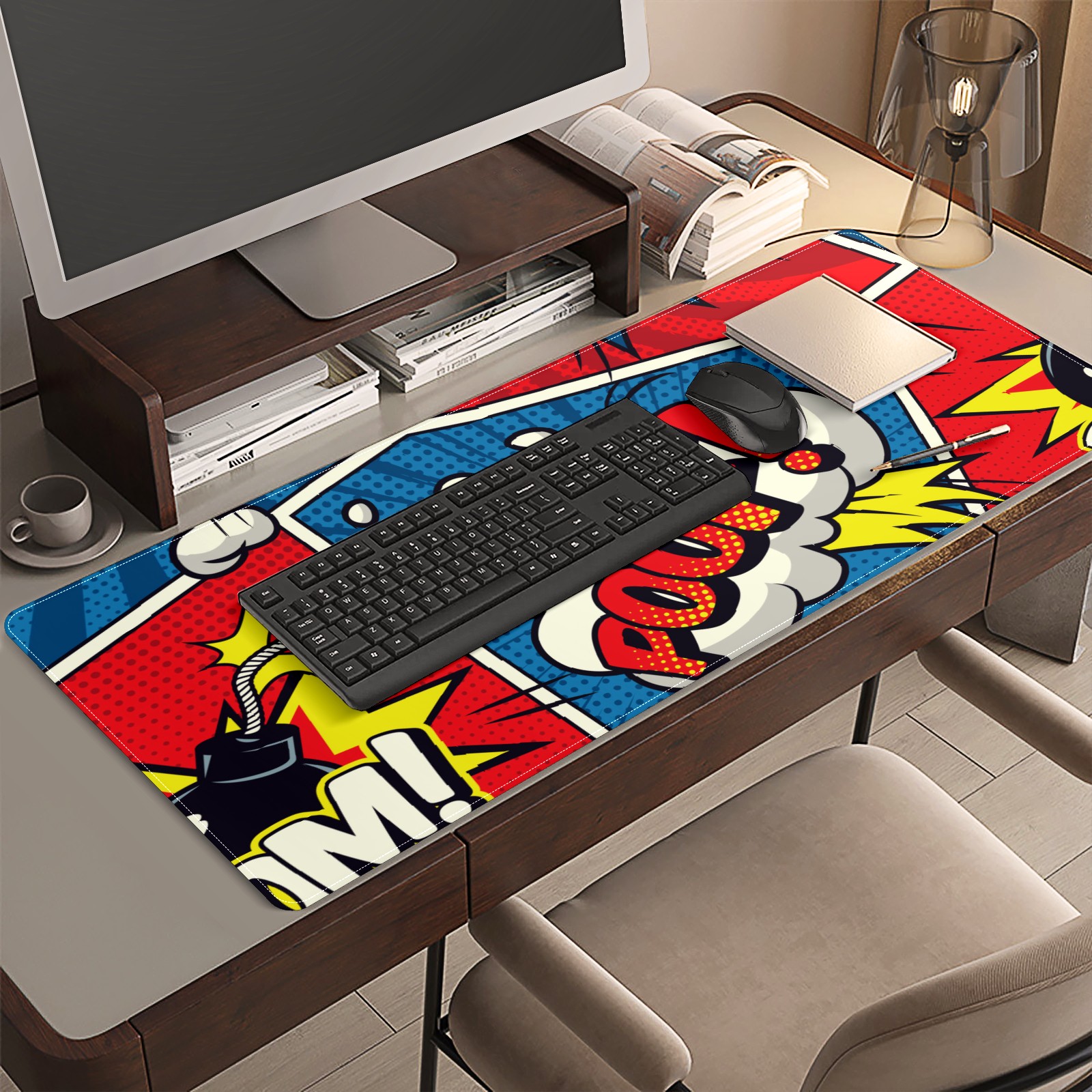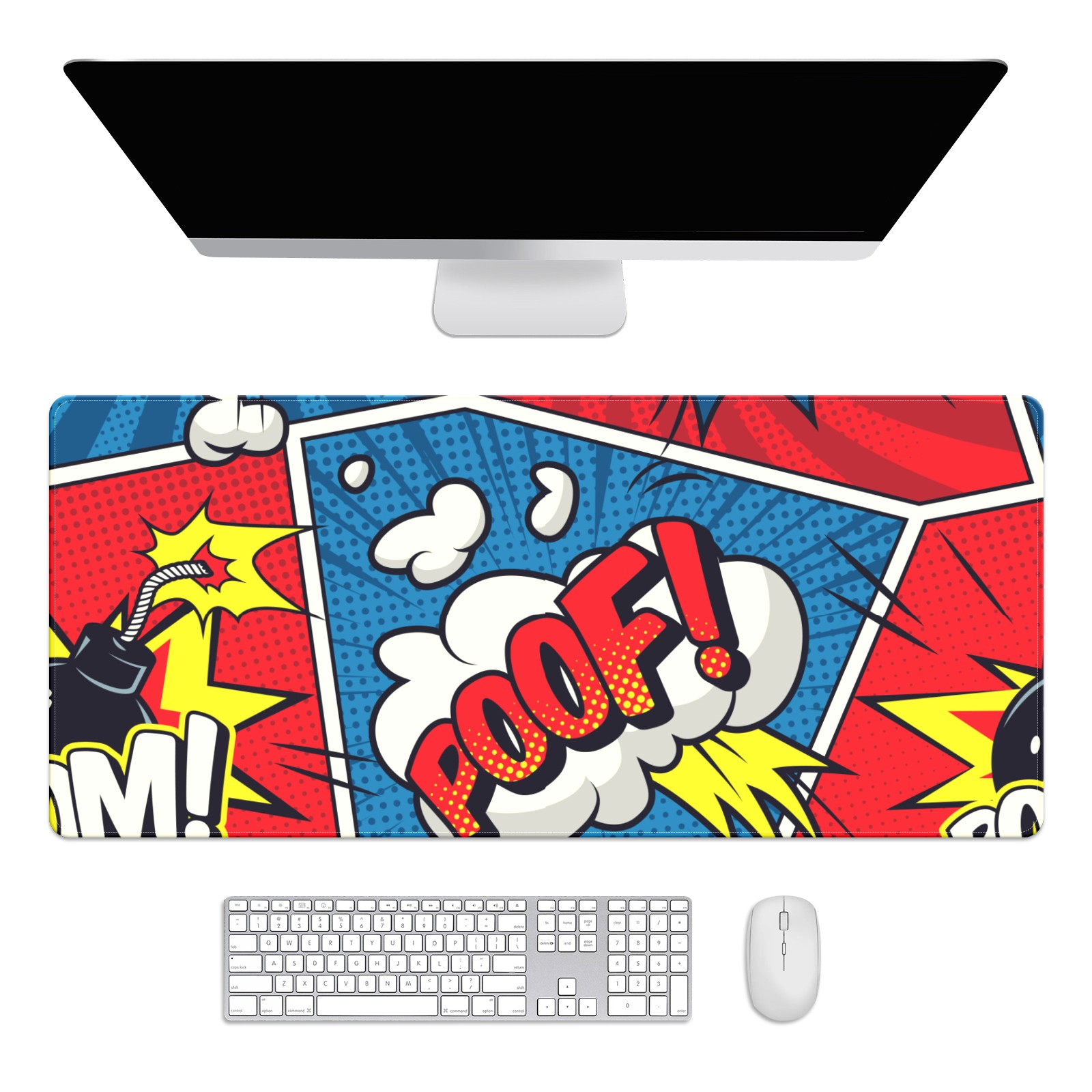 Large Mouse Pad for Desktop, Cute Desk Mat Pad Protector for Work & Gaming, Aesthetic Pretty Anti-Slip Laptop Blotter Cover for Office School Home Supplies, Comics Colorful Seamless , 35.4inx15.7in