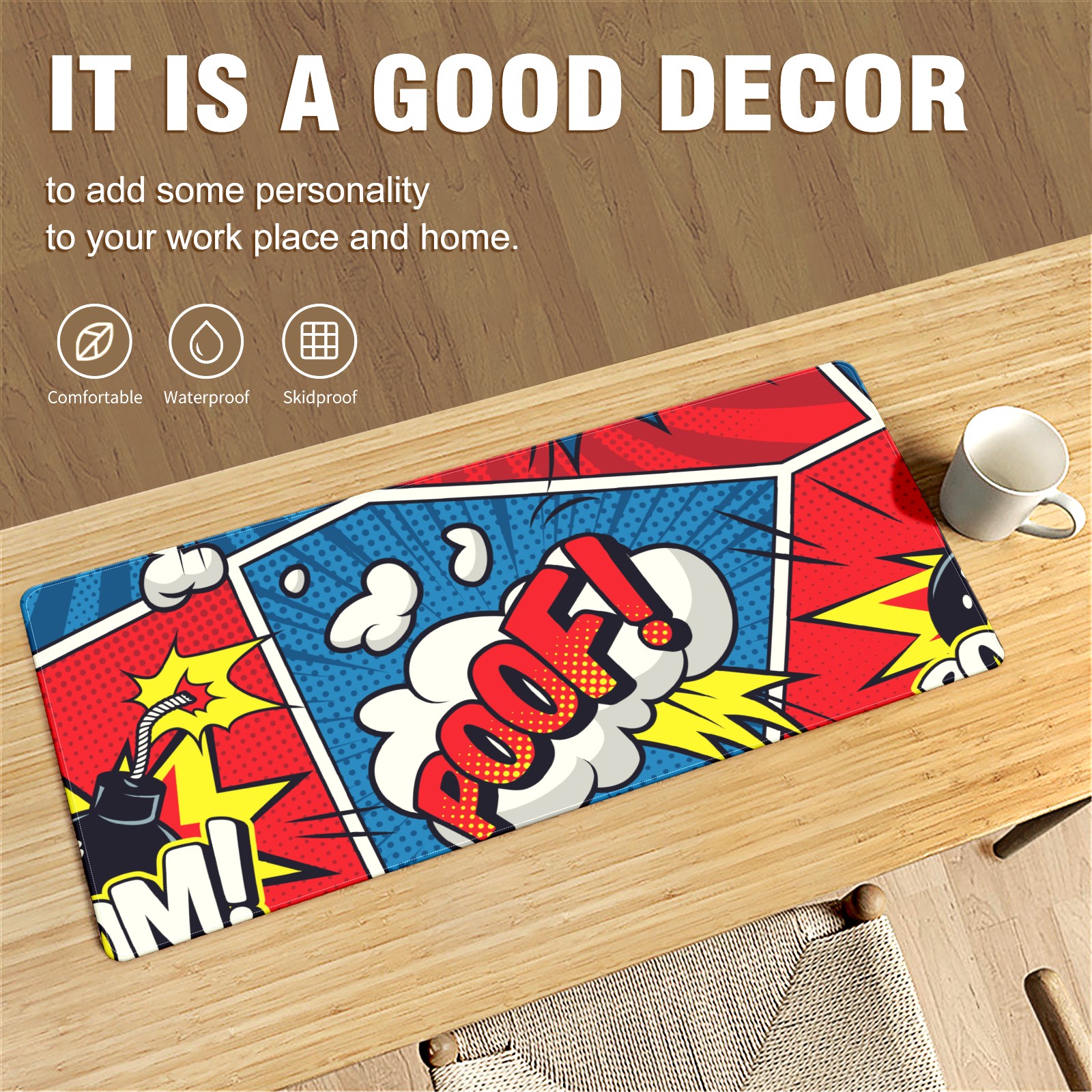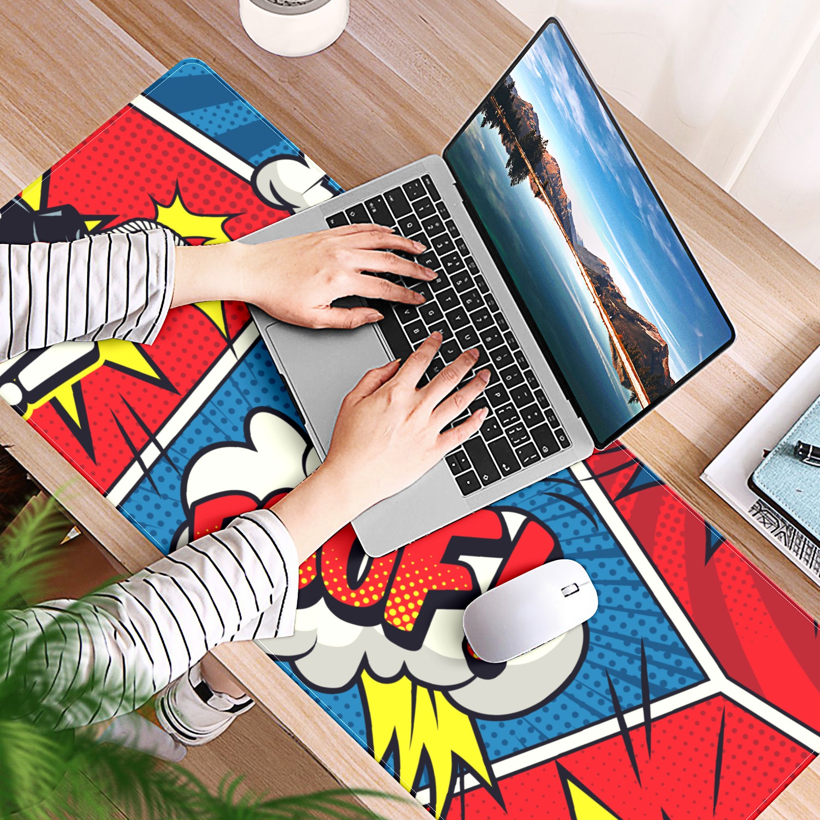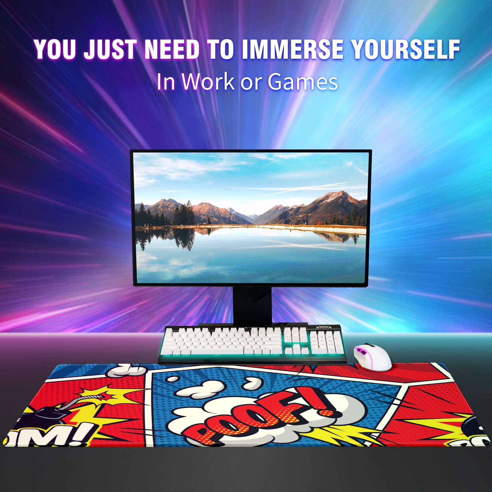 Large Mouse Pad for Desktop, Cute Desk Mat Pad Protector for Work & Gaming, Aesthetic Pretty Anti-Slip Laptop Blotter Cover for Office School Home Supplies, Comics Colorful Seamless , 35.4inx15.7in