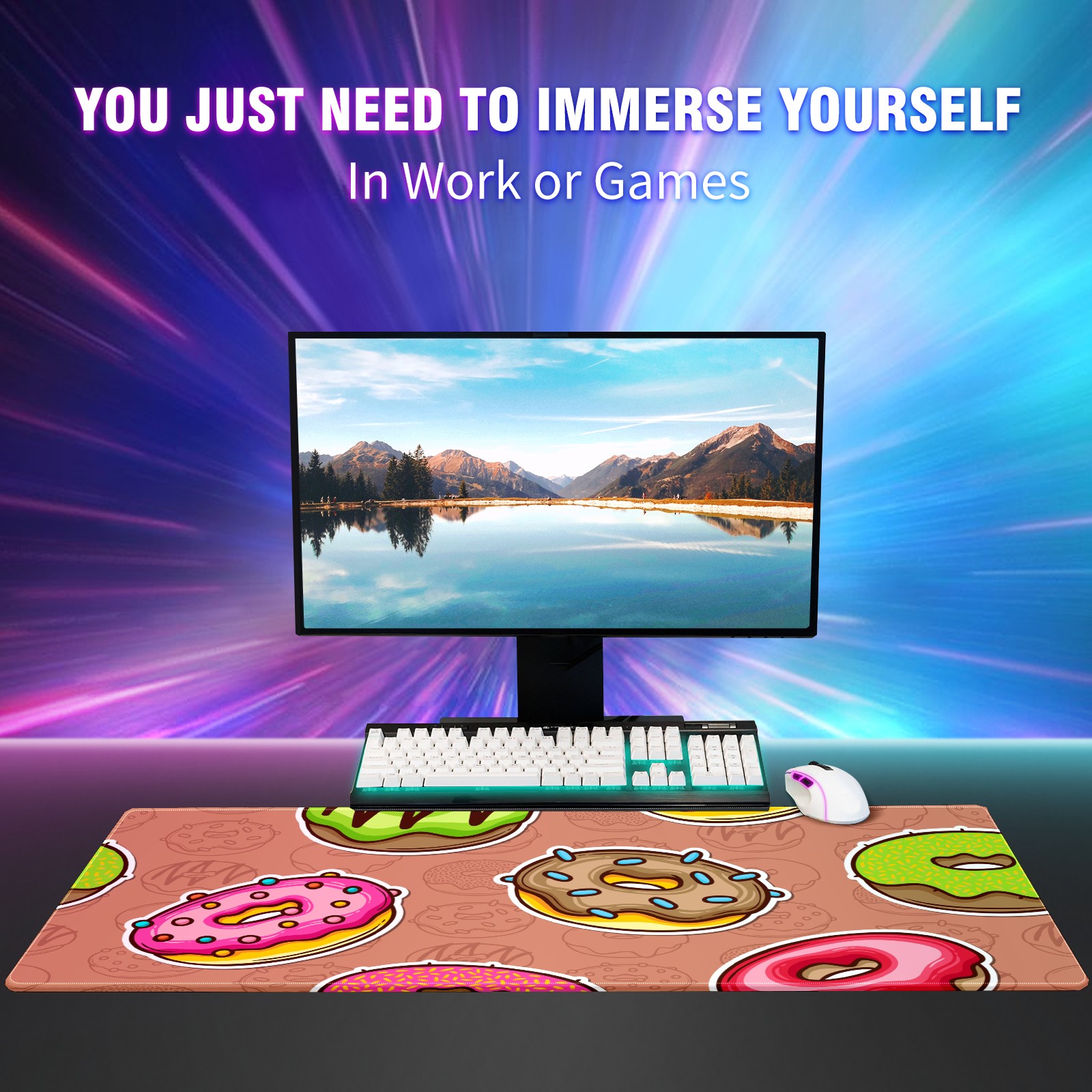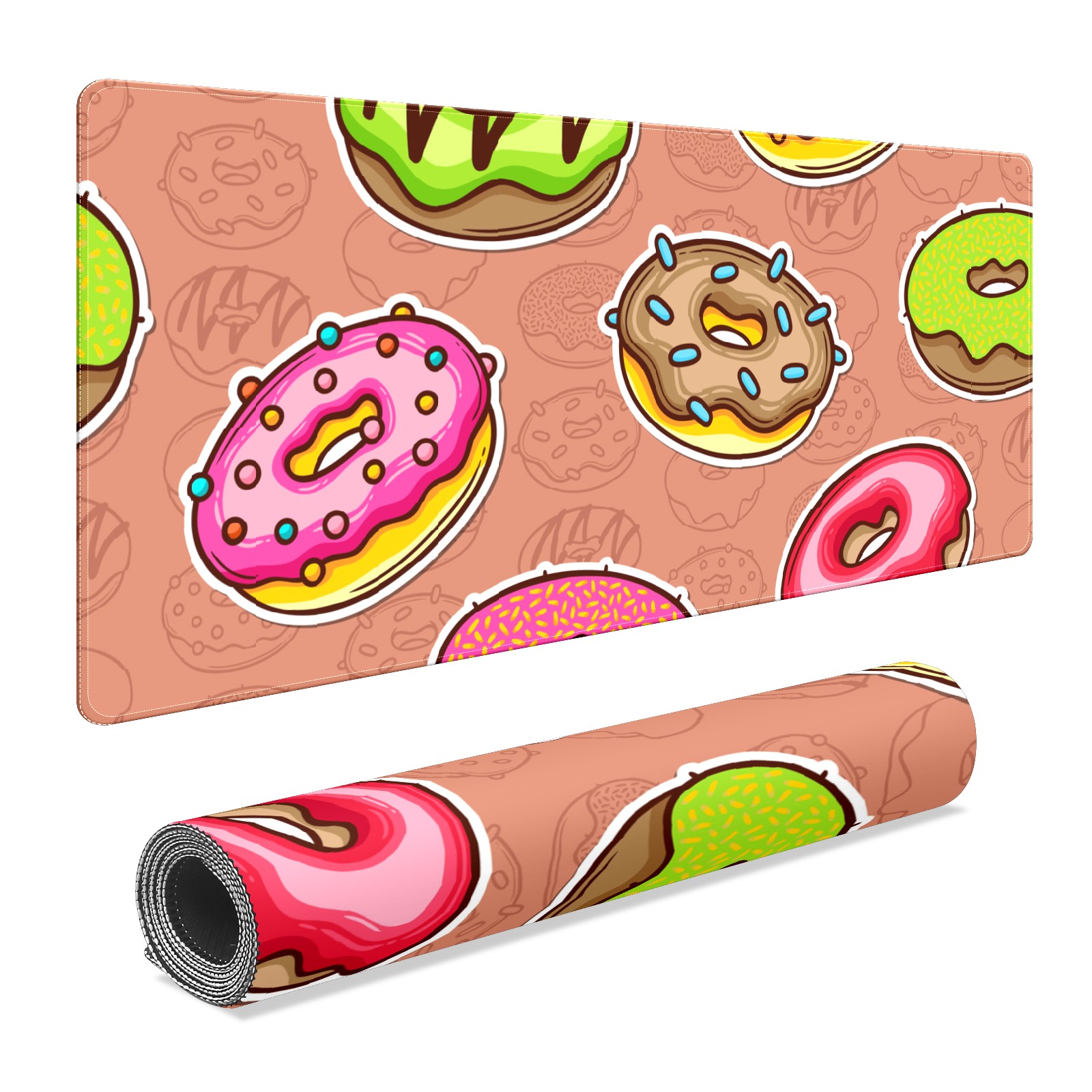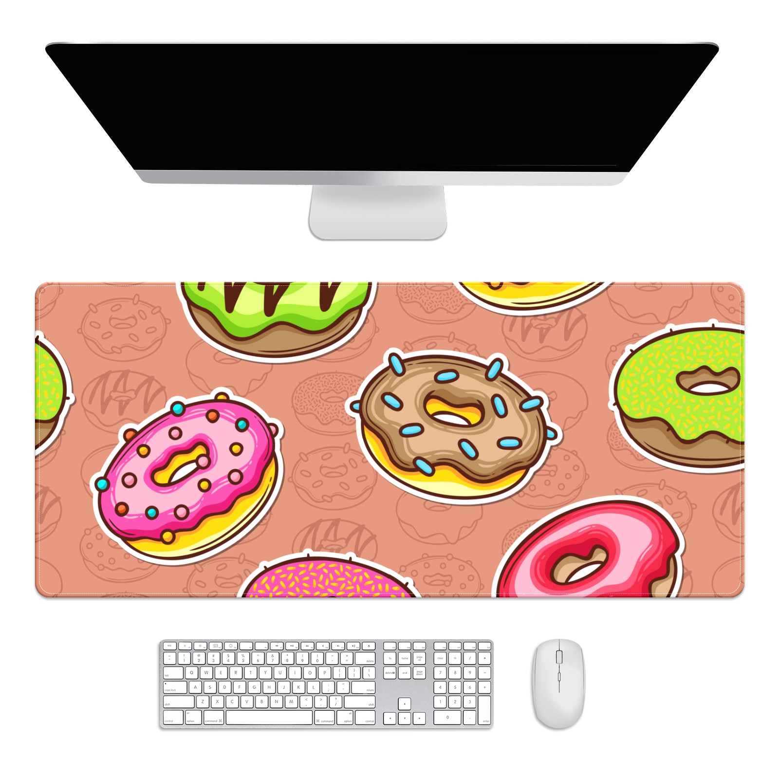 Large Mouse Pad for Desktop, Cute Desk Mat Pad Protector for Work & Gaming, Aesthetic Pretty Anti-Slip Laptop Blotter Cover for Office School Home Supplies, Doughnut Colorful Seamless , 35.4inx15.7in